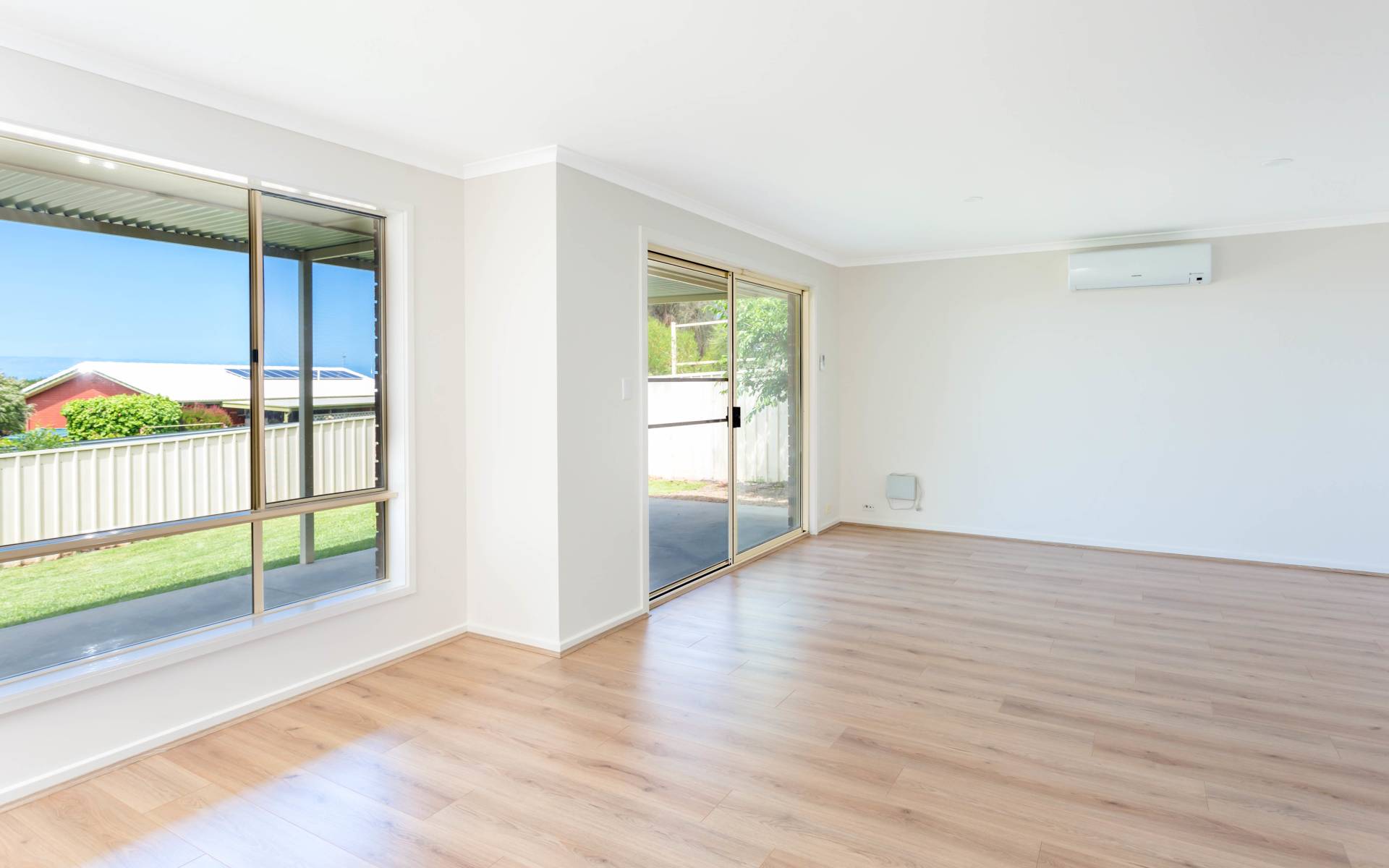 Greeted by floating floors from the entry throughout the living areas, a master bedroom and 2-way bathroom on the right, and the direct entry from the garage on the left. Bedrooms 2 and 3 also share and are adjacent the 2 way bathroom, a little further down the hall on the right is the laundry with full length glass window and sliding door access to the clothes line directly outside. We then enter the open plan kitchen , dining and living area you will also be blown away with the spectacular views out to sea and Wright Island and a fabulous sized garden with undercover entertaining area and small shed.