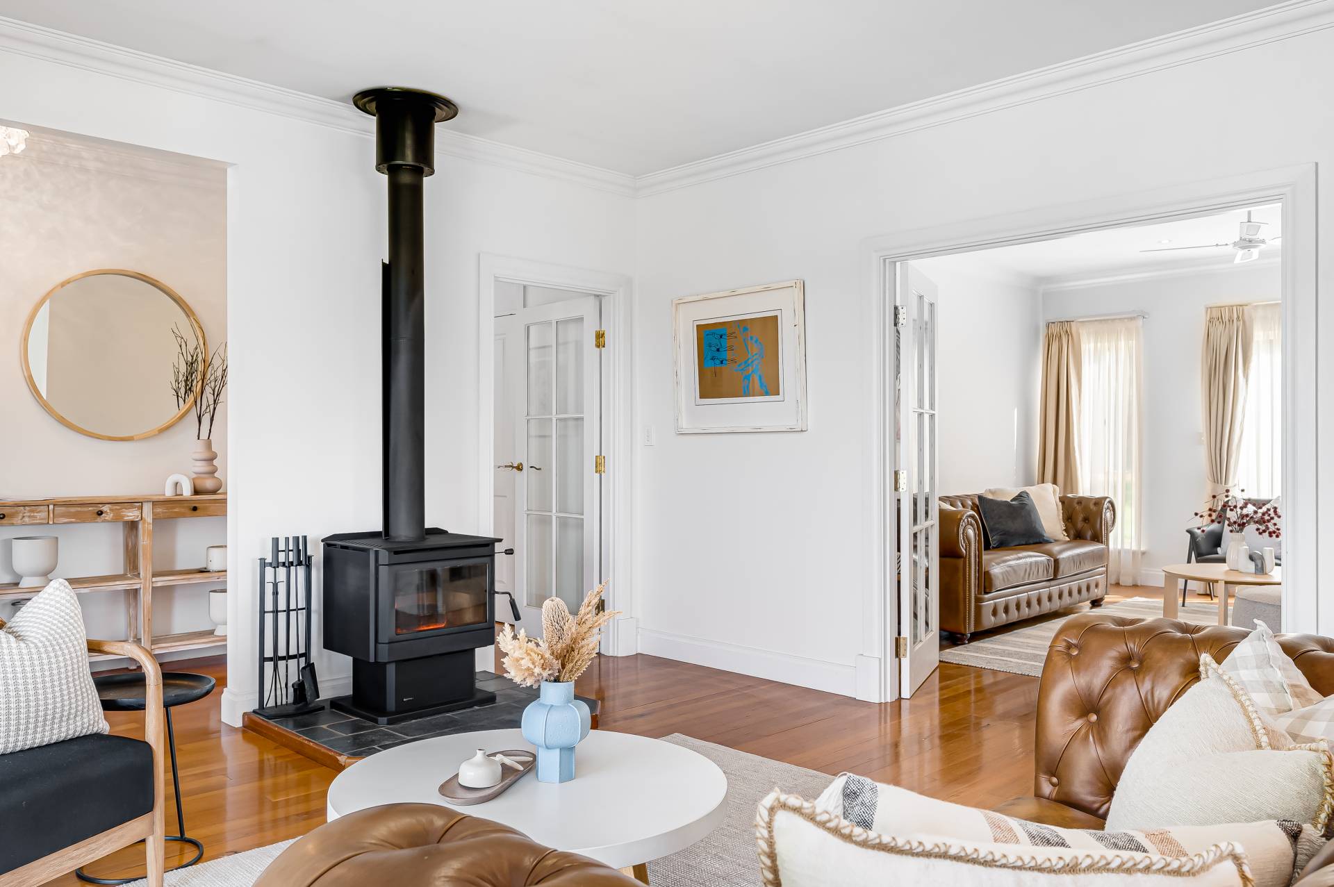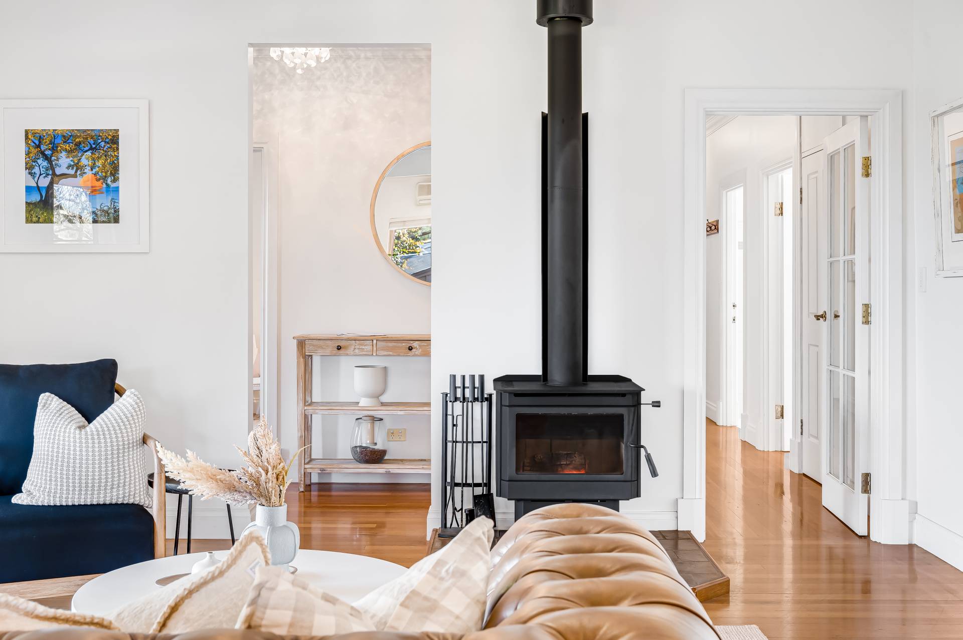 − Gorgeous polished timber floors and ambient LED downlighting throughout main living areas, split-system AC in dining and cosy combustion heater in lounge