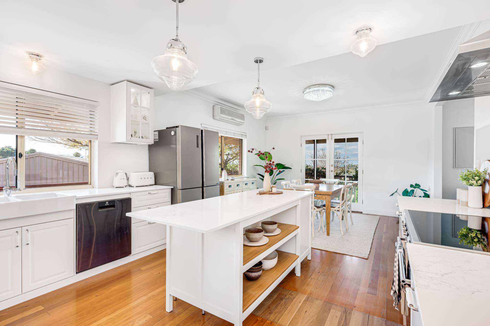 Light-filled and airy throughout, there’s a welcome warmth that gently guides you from the spacious lounge at entry through to the chic colonial kitchen and French door framed dining that all combines for an elegant hub of easy entertaining whether it’s cozy movie marathons with the kids in front of a crackling combustion fire or fun-filled open-house get-togethers with family and friends. Stunning indoor-outdoor living is part-and-parcel of everyday life here too where a return verandah lets you take-in the sheer beauty of this coveted spot as you nurse morning coffees in absolute bliss, enjoy long sunny lunches as well as star-dappled evenings with vino in hand.