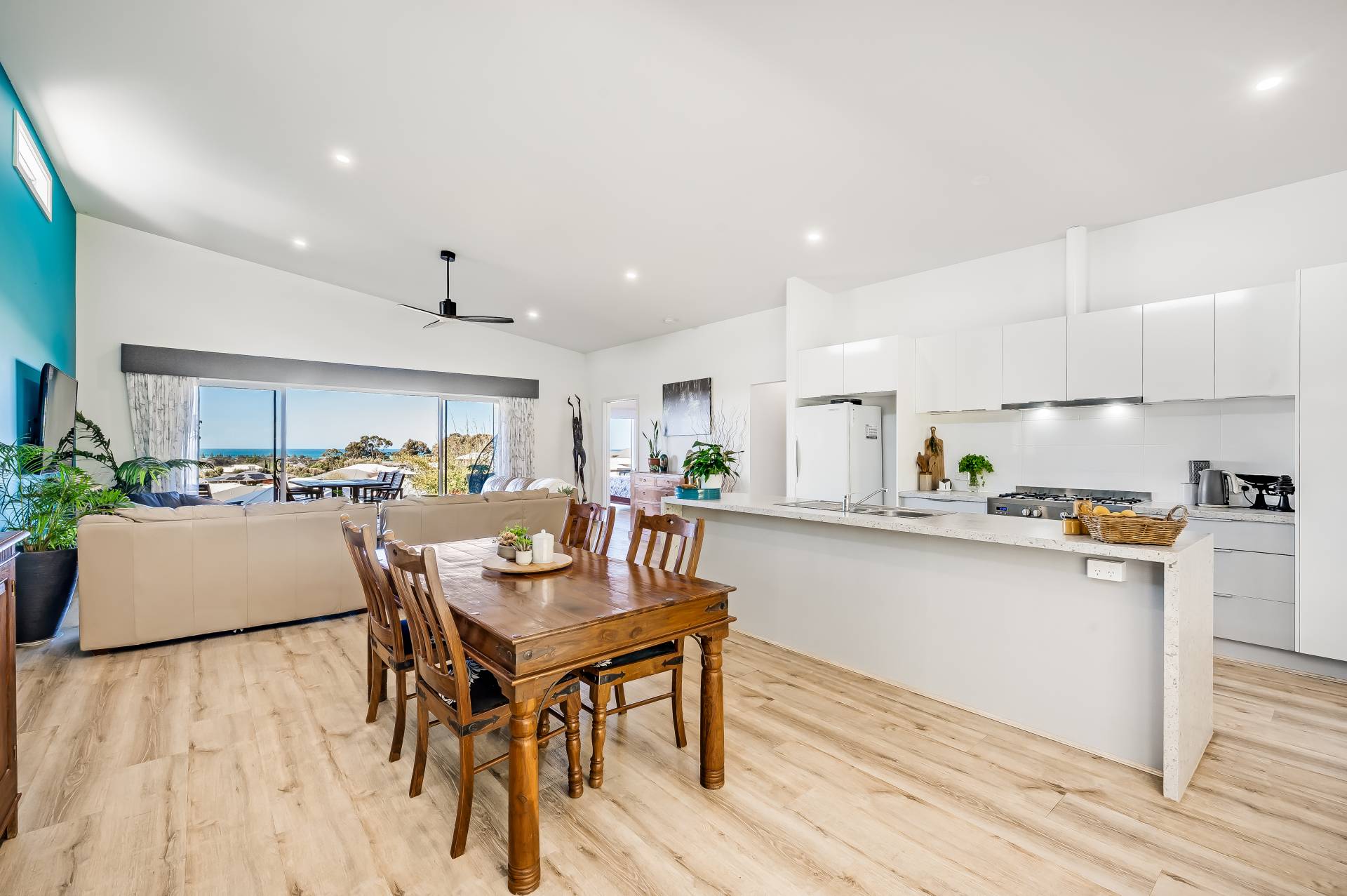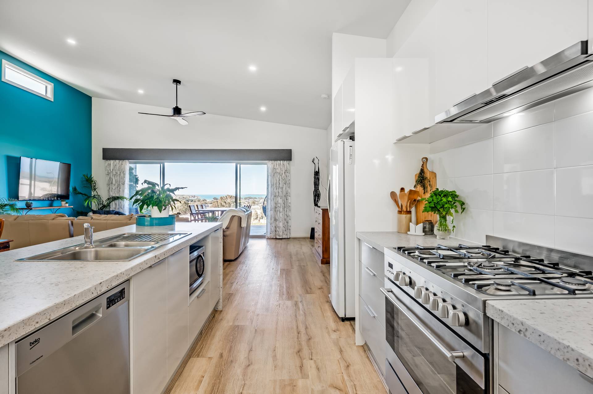 Showcasing a well-conceived footprint that puts the light-spilling open-plan entertaining front and centre, prepare to sick back and soak up this idyllic locale whether you’ve got your heart set on the quintessential holiday home or you’re ready for blissful retirement. With an elegant hub headlined by a gourmet designer kitchen flush with speckled stone waterfall bench tops ready to socialize and scan, and connect as you cook – the lifestyle emphasis here is nothing short of a slice of seaside heaven.