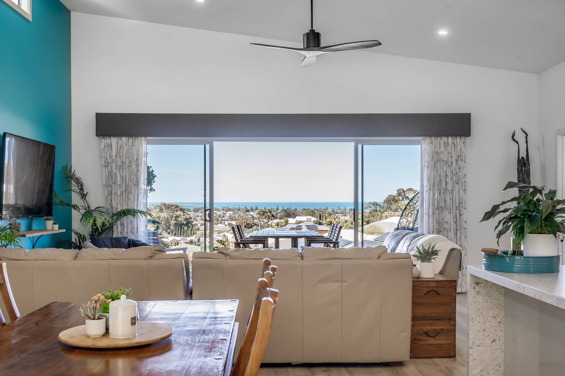 - Stunning open-plan kitchen, dining and living seamlessly extending to a picture-perfect all-weather alfresco overlooking Encounter Bay, Granite Island and the sparkling water of the South Coast