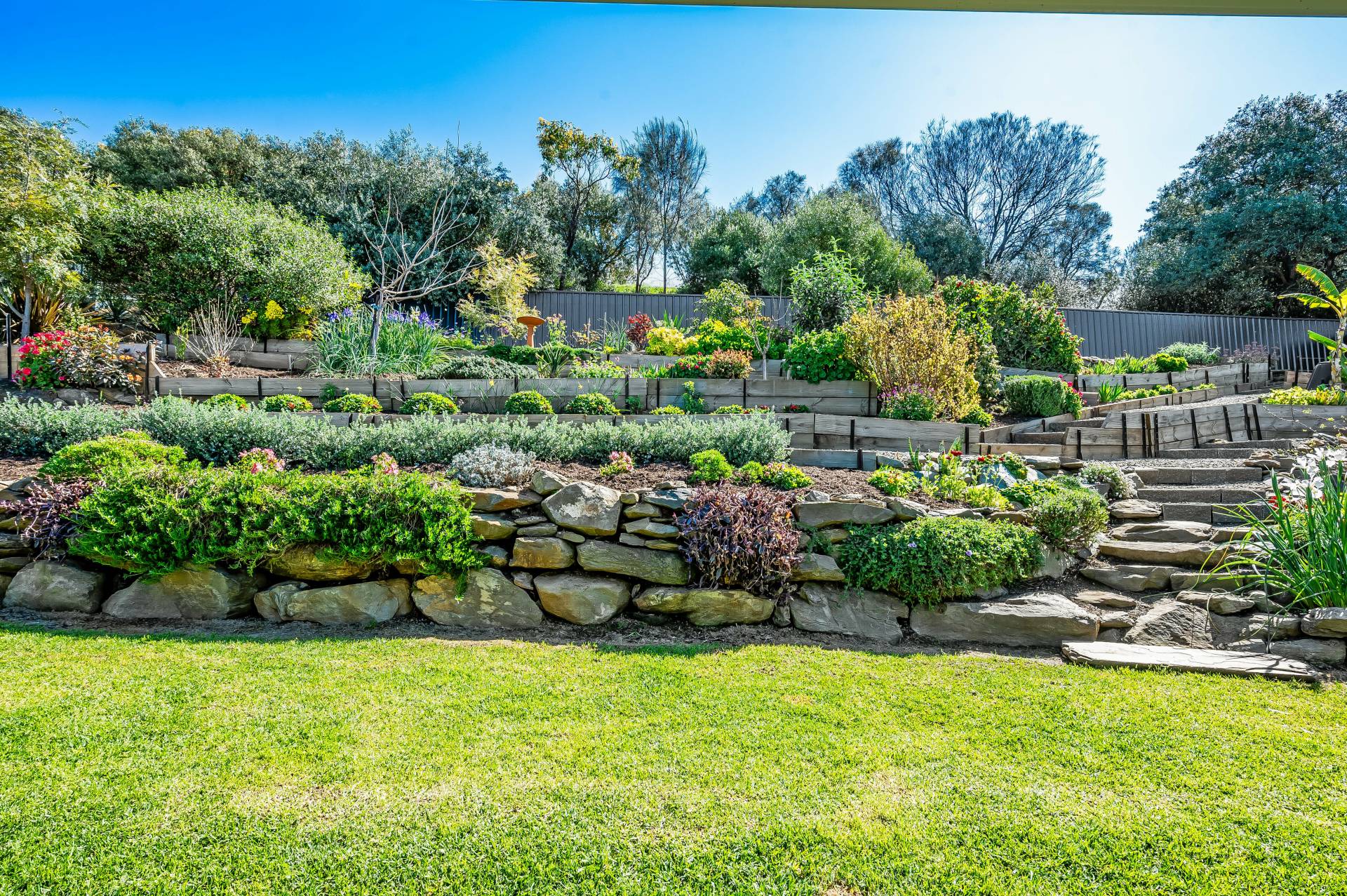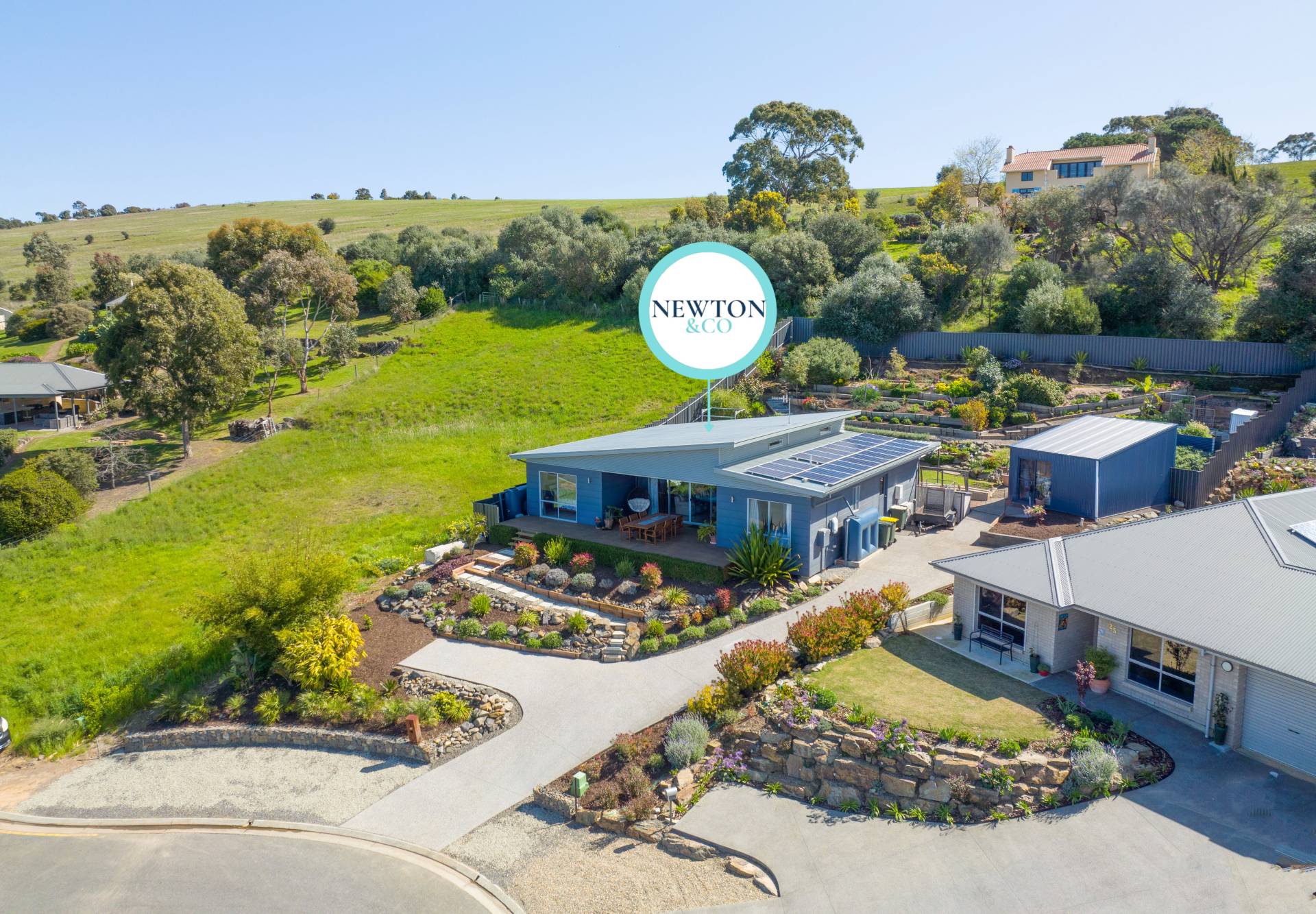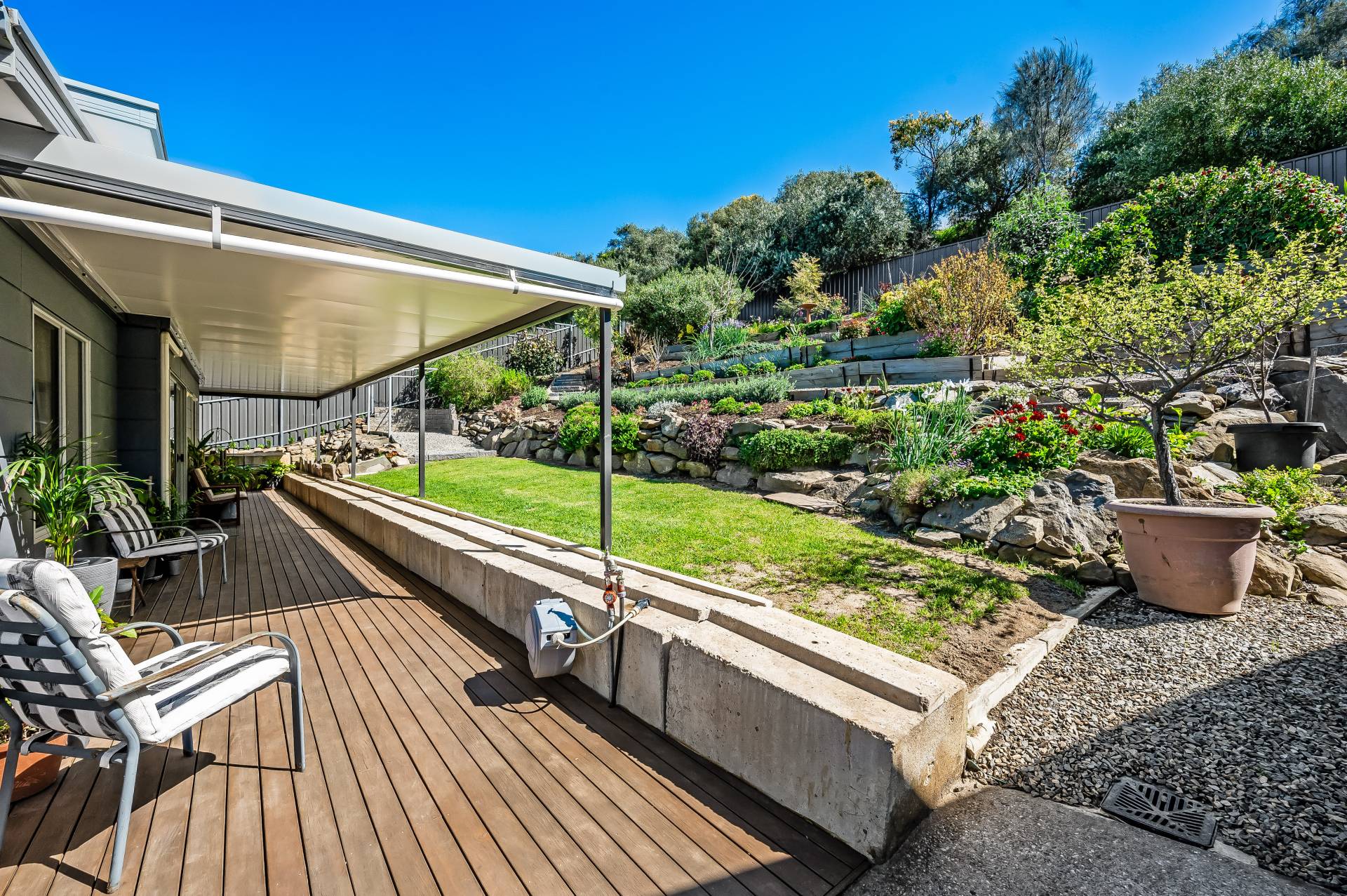 - Beautiful front and rear gardens, cascading with established easy-care native gardens
