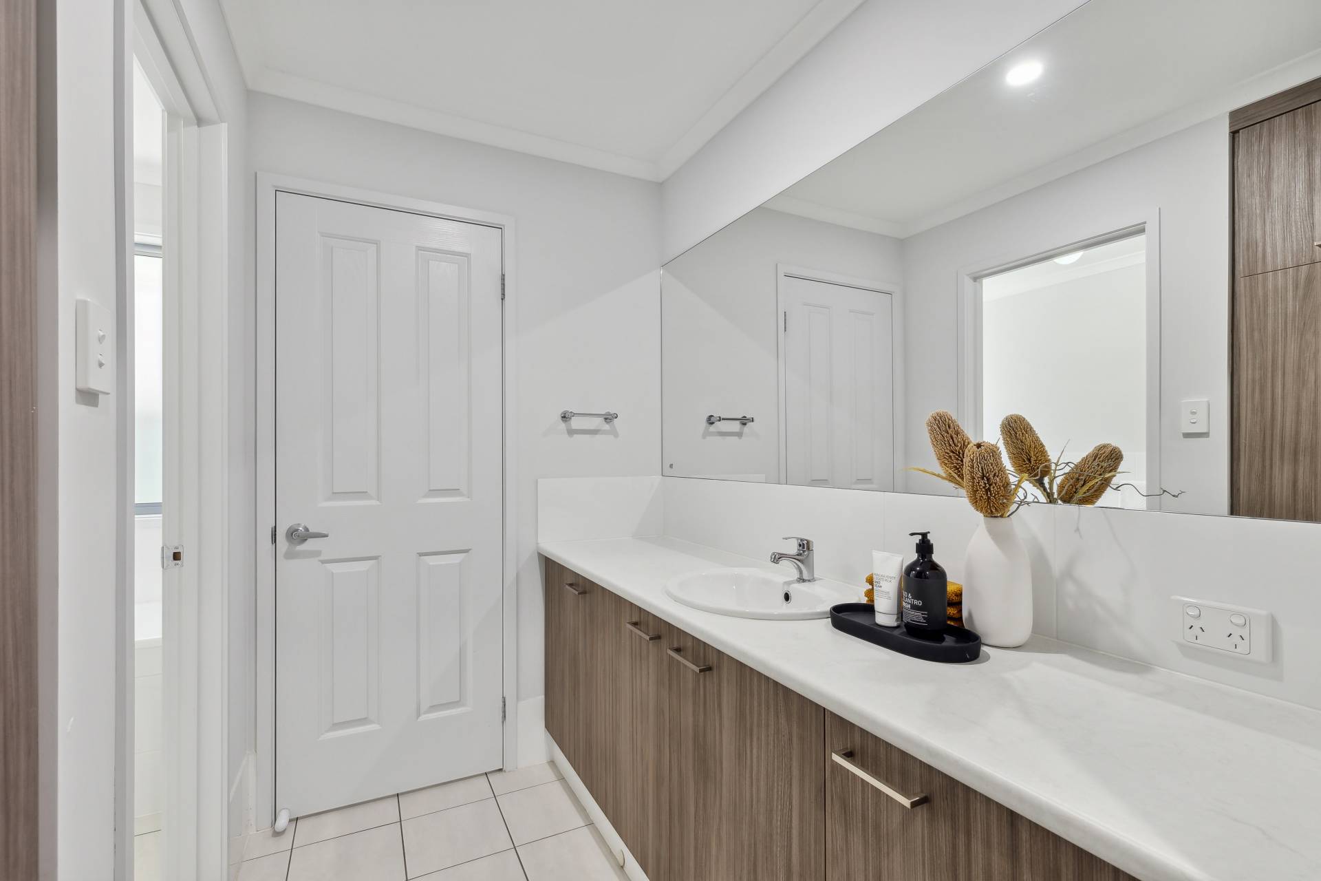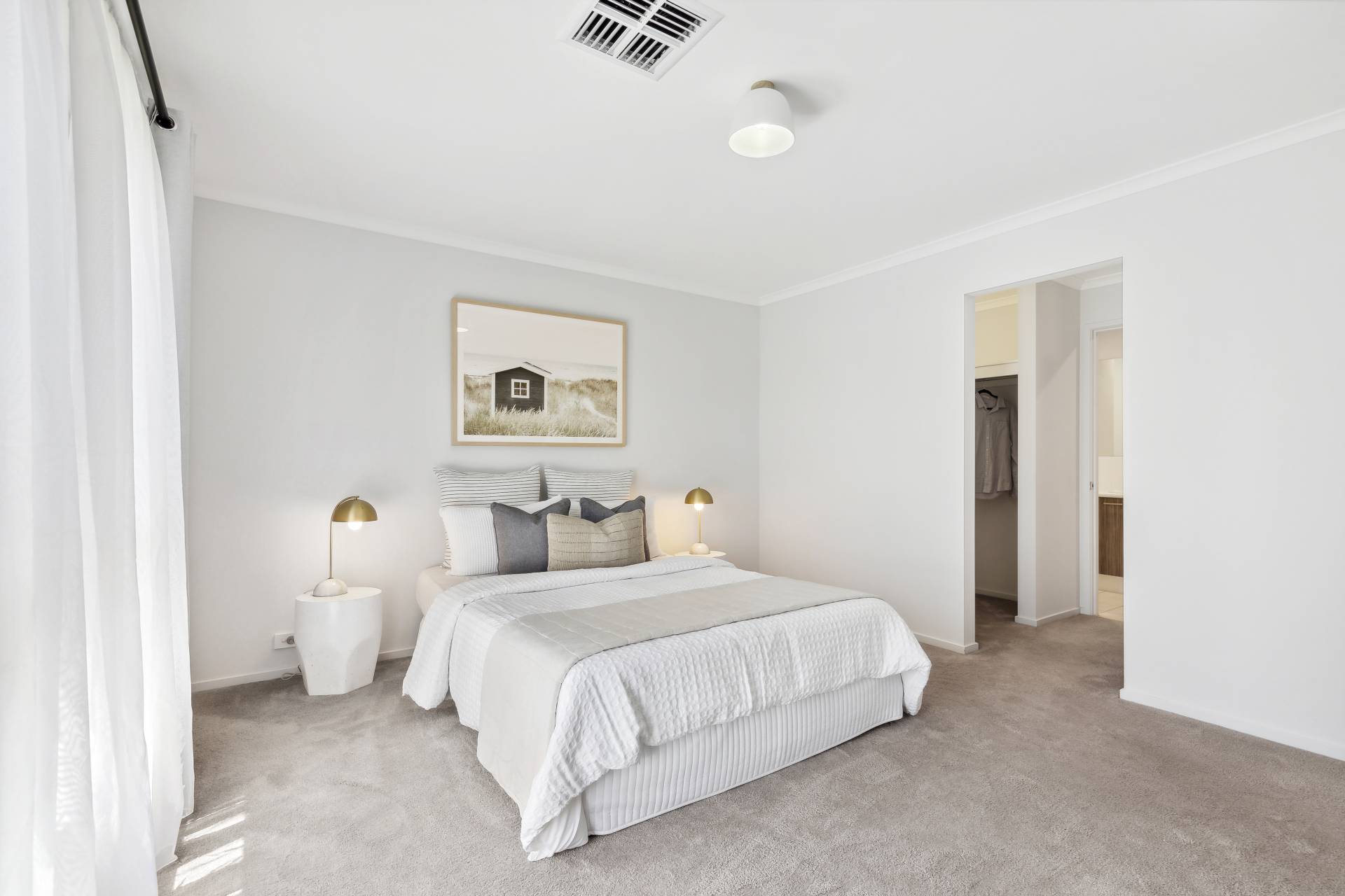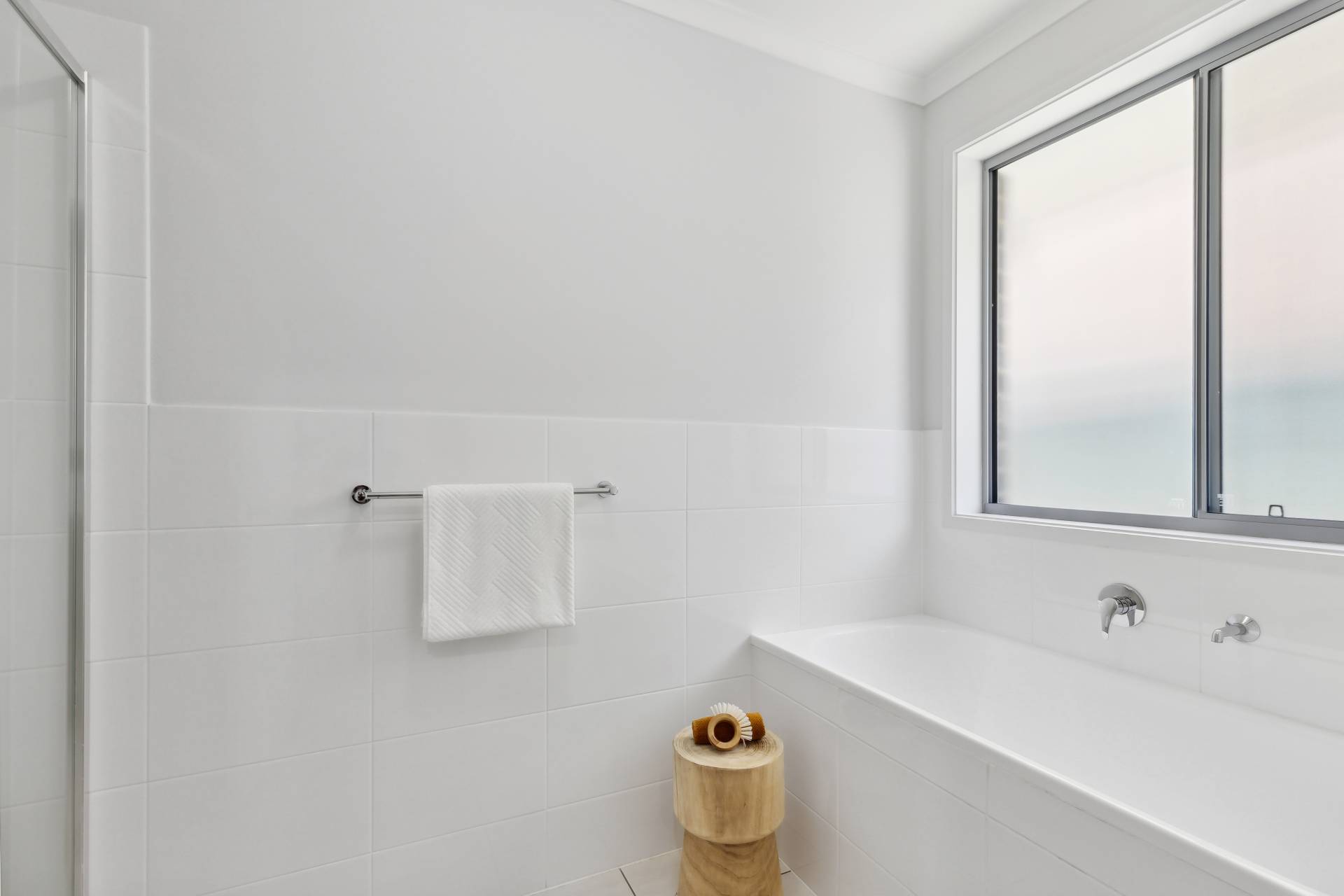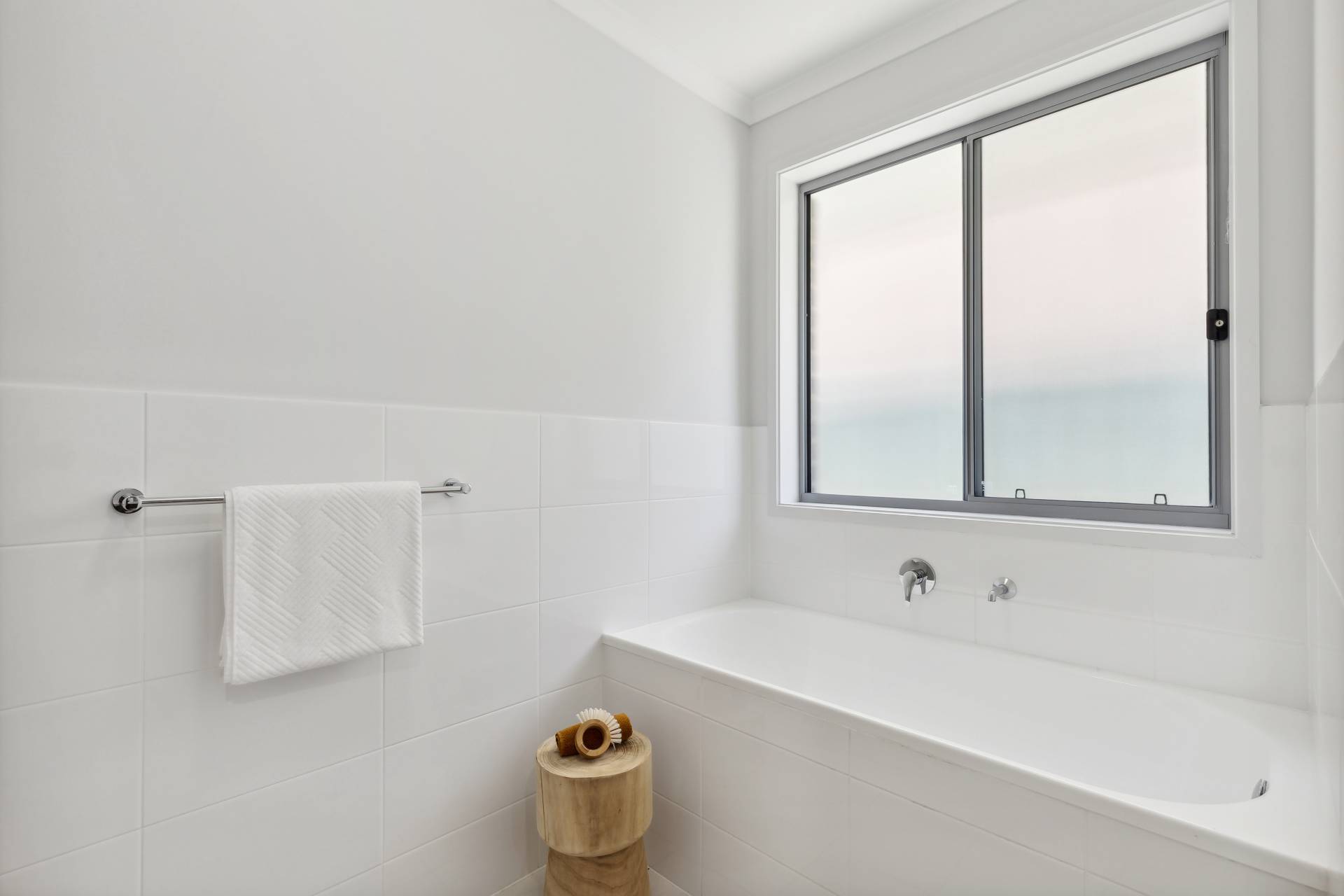 Purpose-designed to make the most out of its holiday destination, all four bedrooms see supremely soft carpets and floating sheers to wide windows, while three enjoy walk-in wardrobes of their own. The light-filled master is a slice of heaven too – bright and airy with large his and hers walk-in wardrobes and sparkling ensuite to match. Along with a raft of welcome extras including cloak room, walk-in pantry to the designer kitchen, gleaming modern bathroom and ducted AC for year-round comfort, this is every bit a new build vibe without the wait to finish.