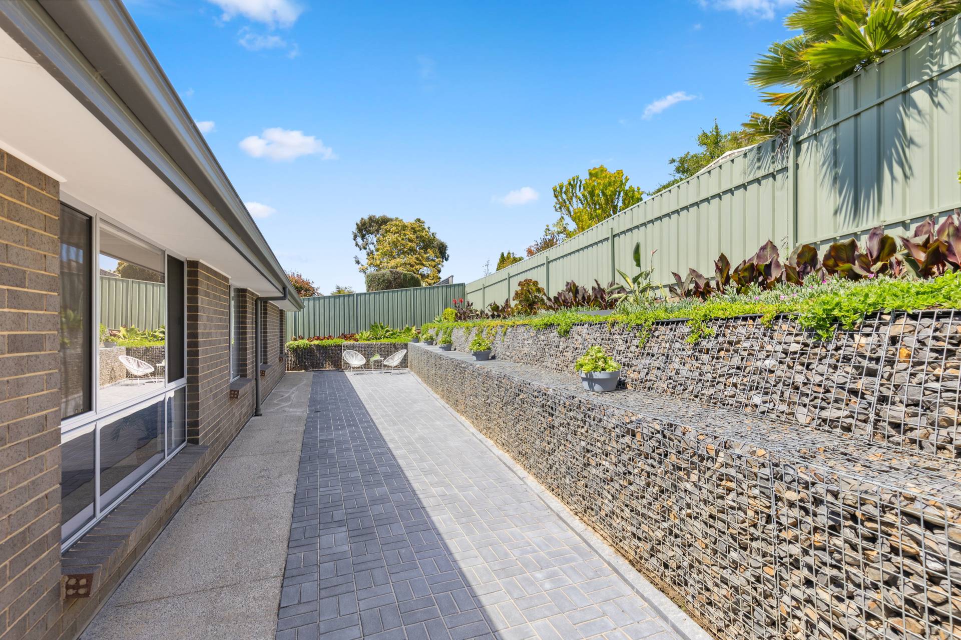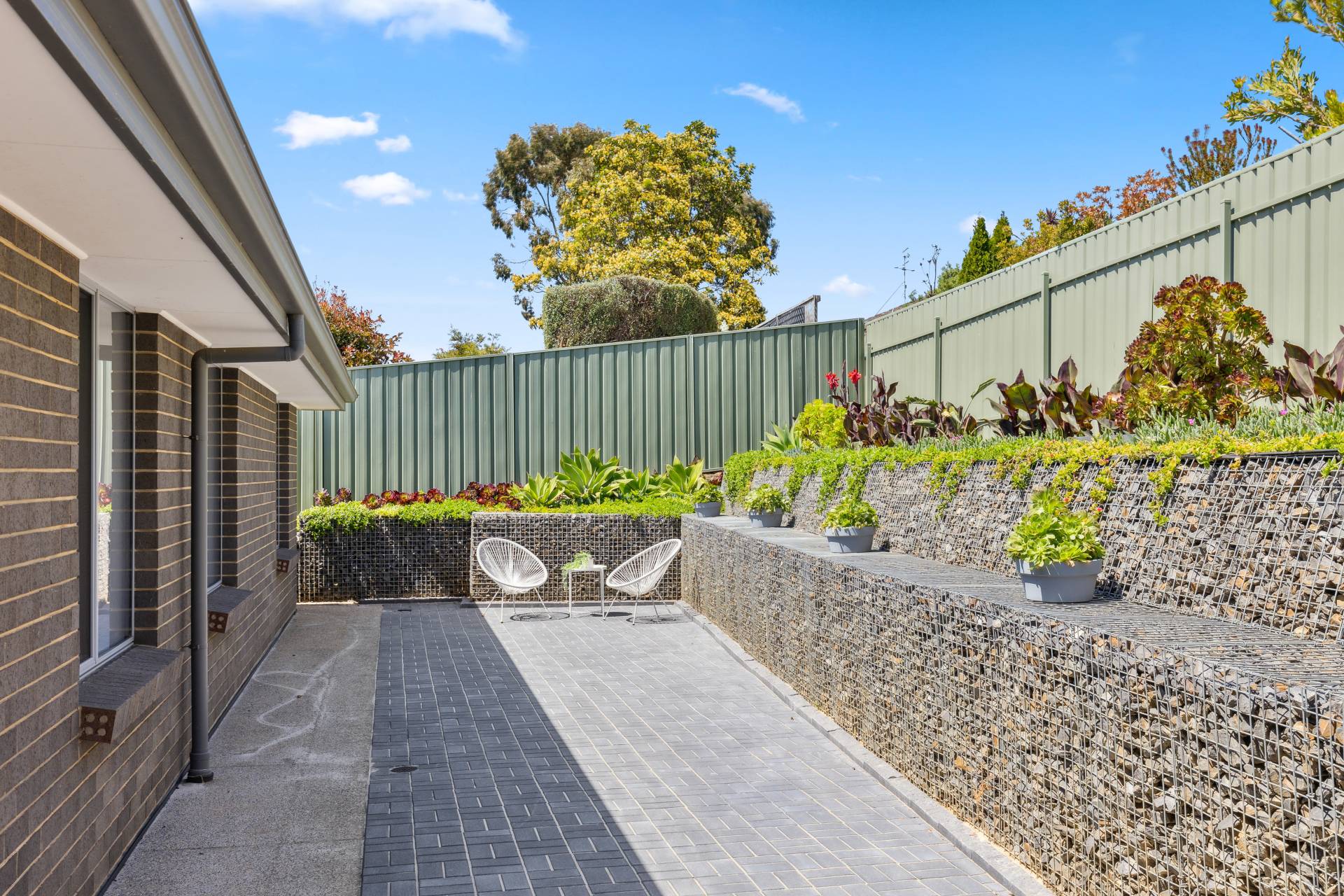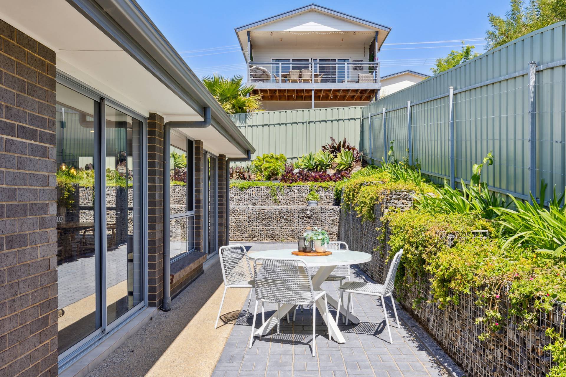 - Lovely sun-bathed alfresco courtyard framed in neat retaining walls with established flowering natives