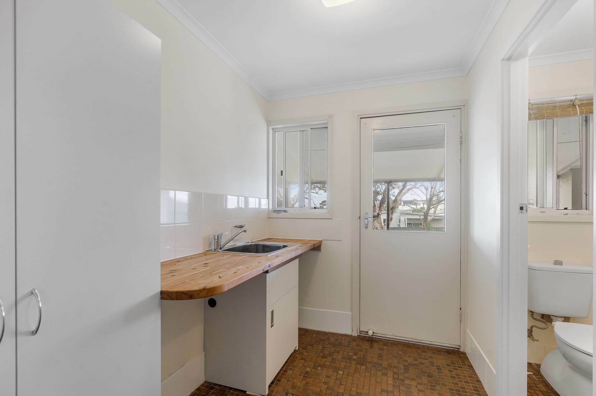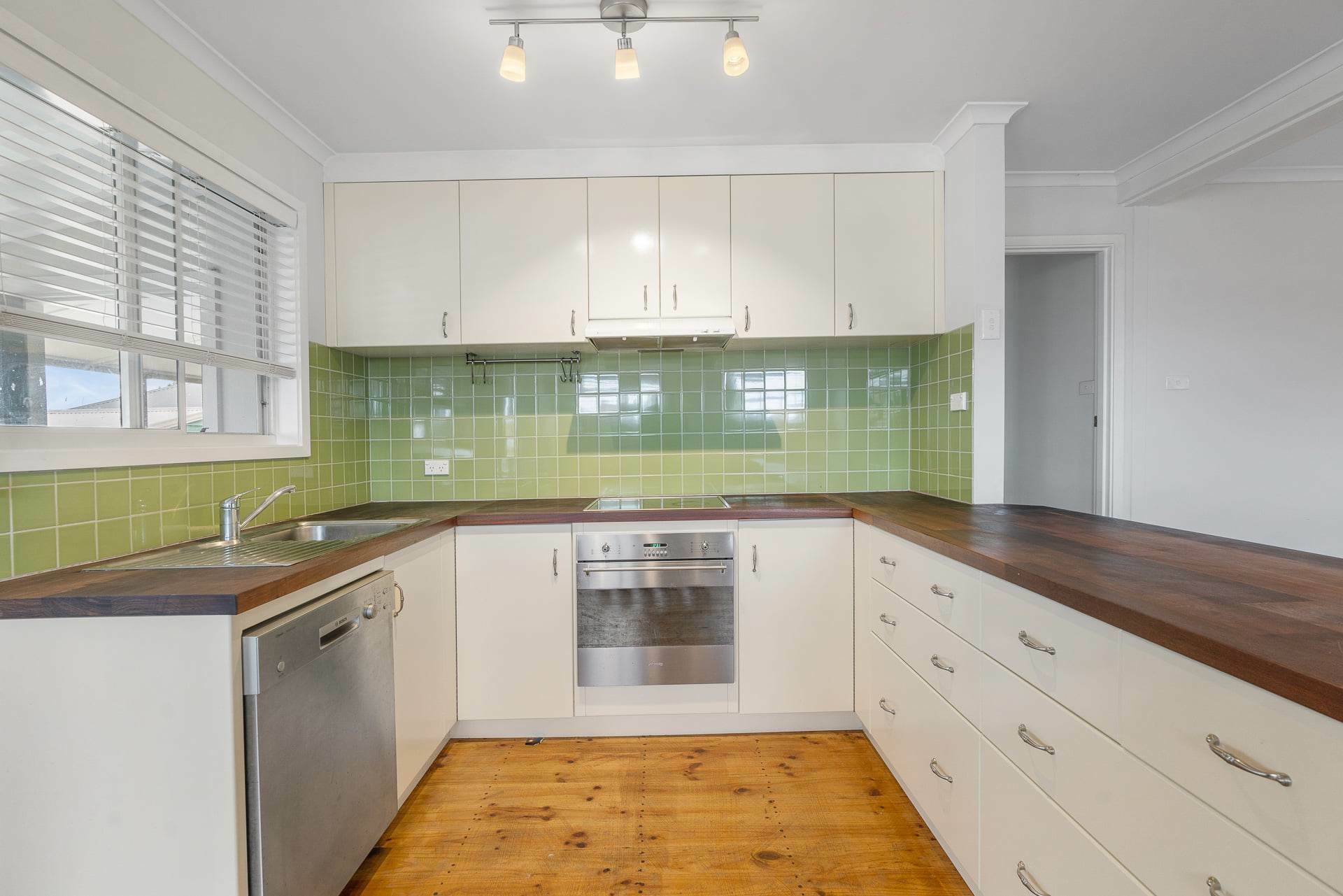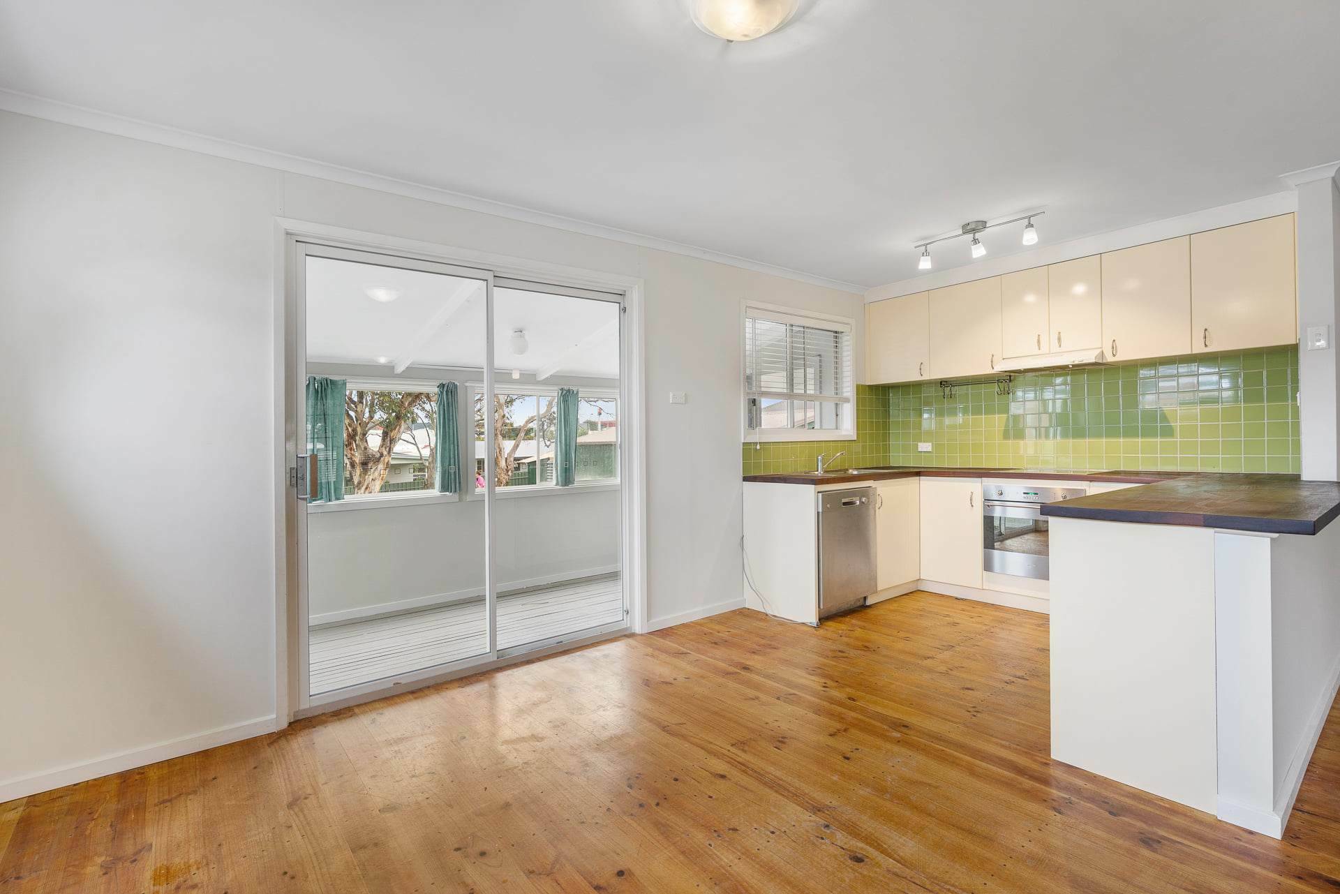 As you enter the property, you’ll find a lovely light-filled living and dining area across gorgeous timber floors as well as an open plan kitchen area complete with elegant cabinetry, wooden benchtops and a stunning sage green backsplash. Behind the kitchen, you’ll discover an enclosed outdoor entertaining area, perfect for hosting memorable gatherings with friends and family.