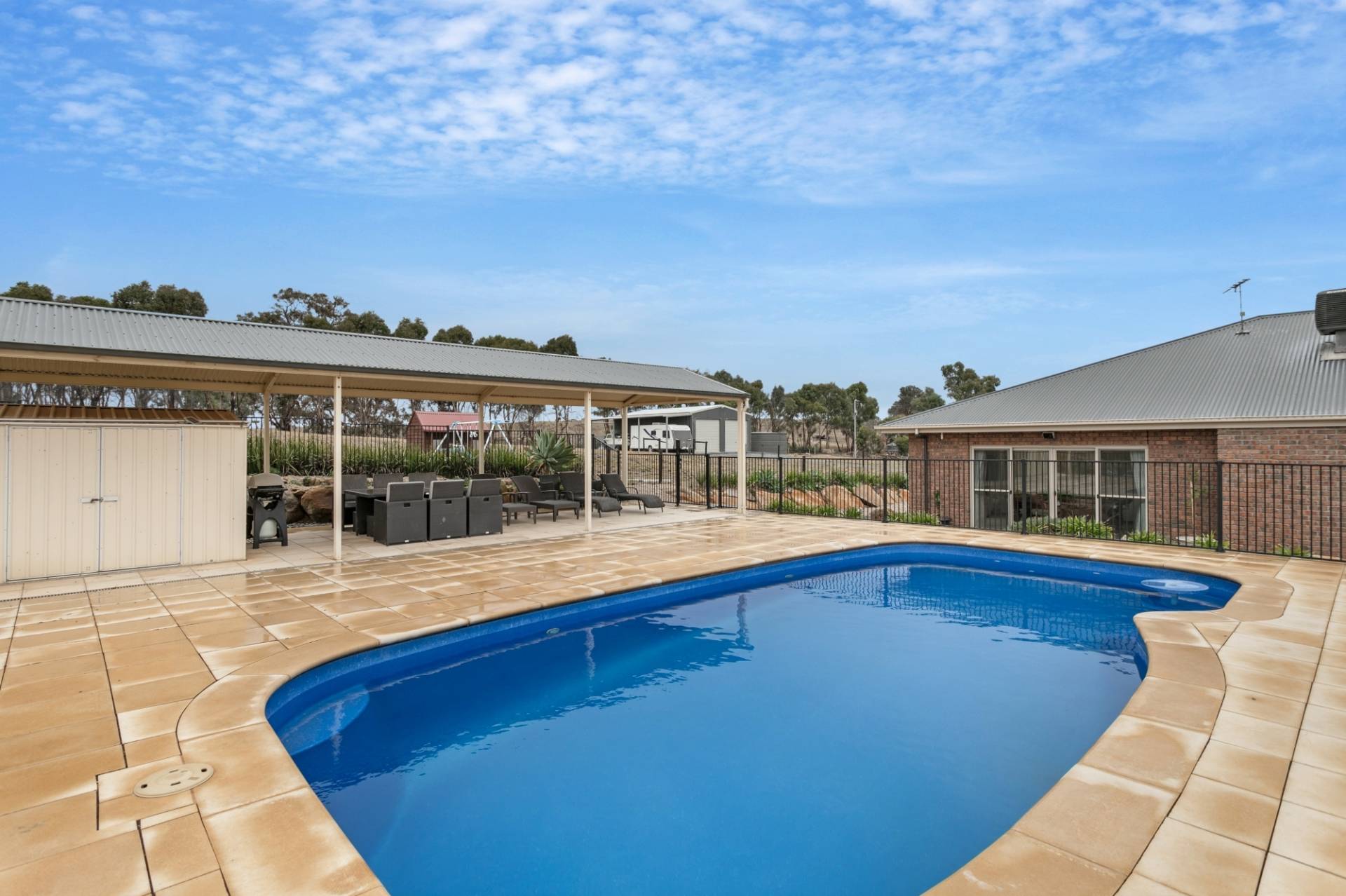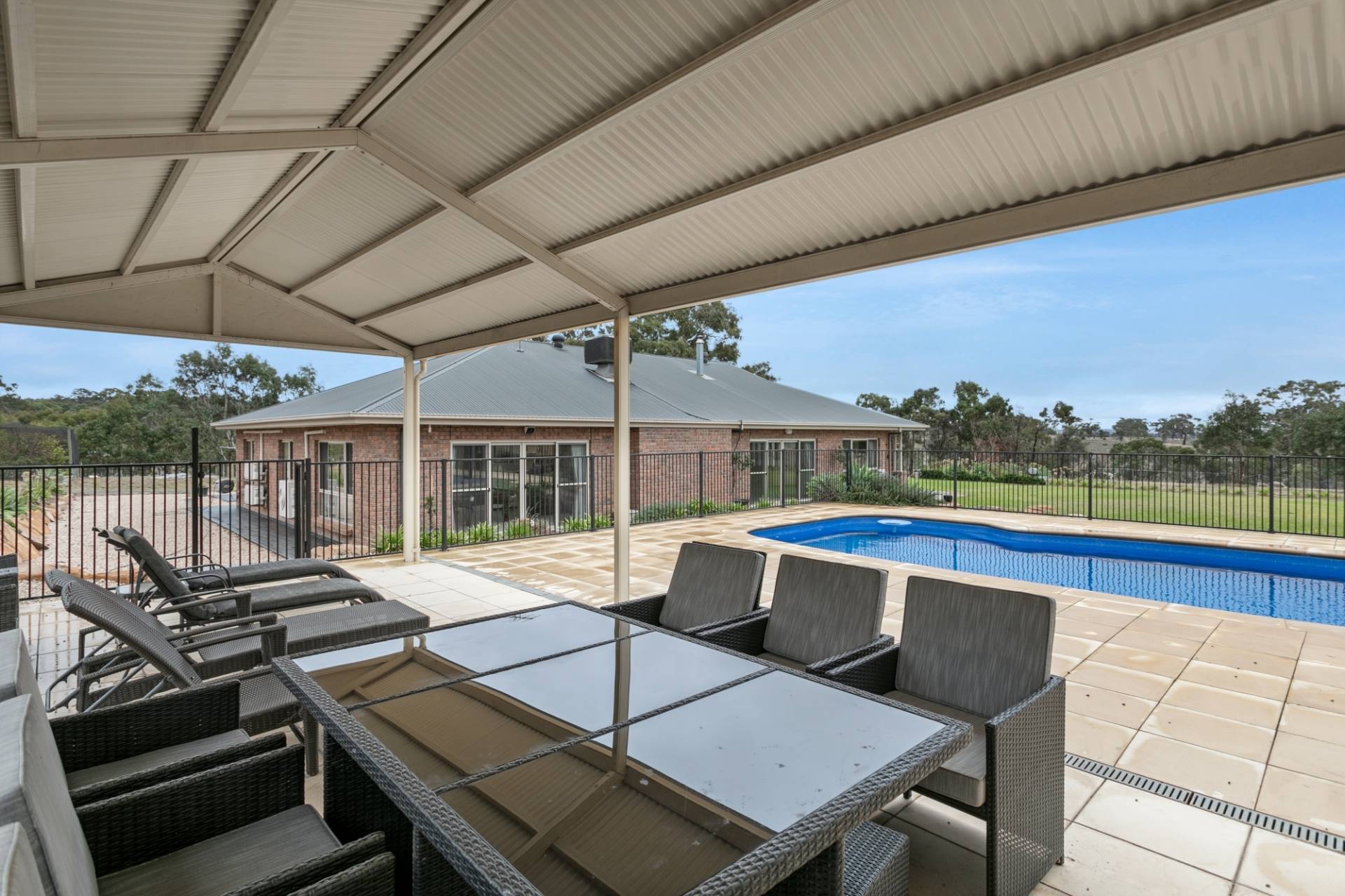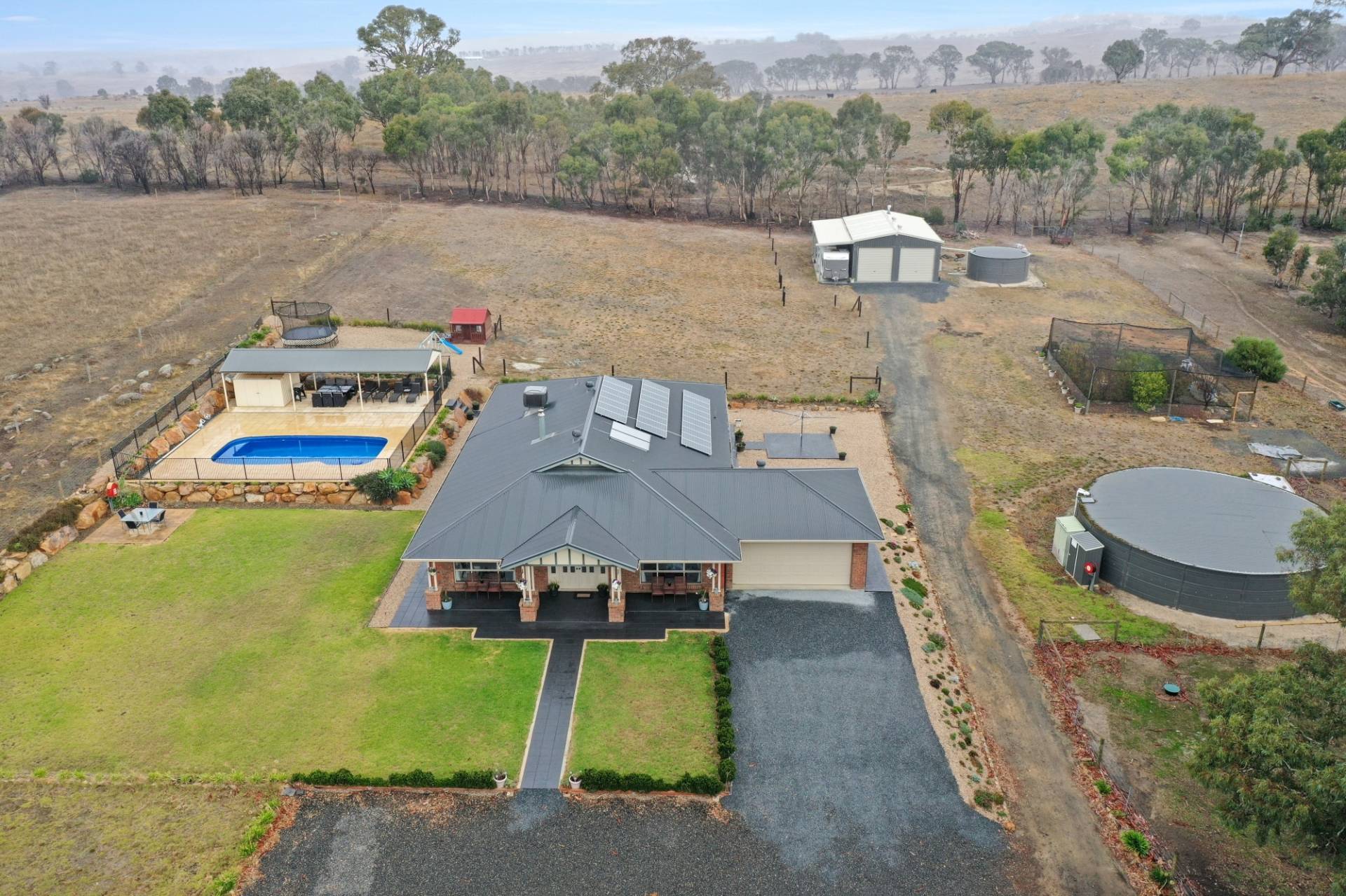 Stylish family home, carefully created with an elevated outlook on nearly 7 sprawling acres, three paddocks to keep ponies or sheep, fabulous outdoor entertaining area with a 10 x 5 swimming pool for those long hot summer days and there is no need to worry about the extra bills as this home comes with solar panels and enough rainwater to be totally off the grid and energy-efficient.