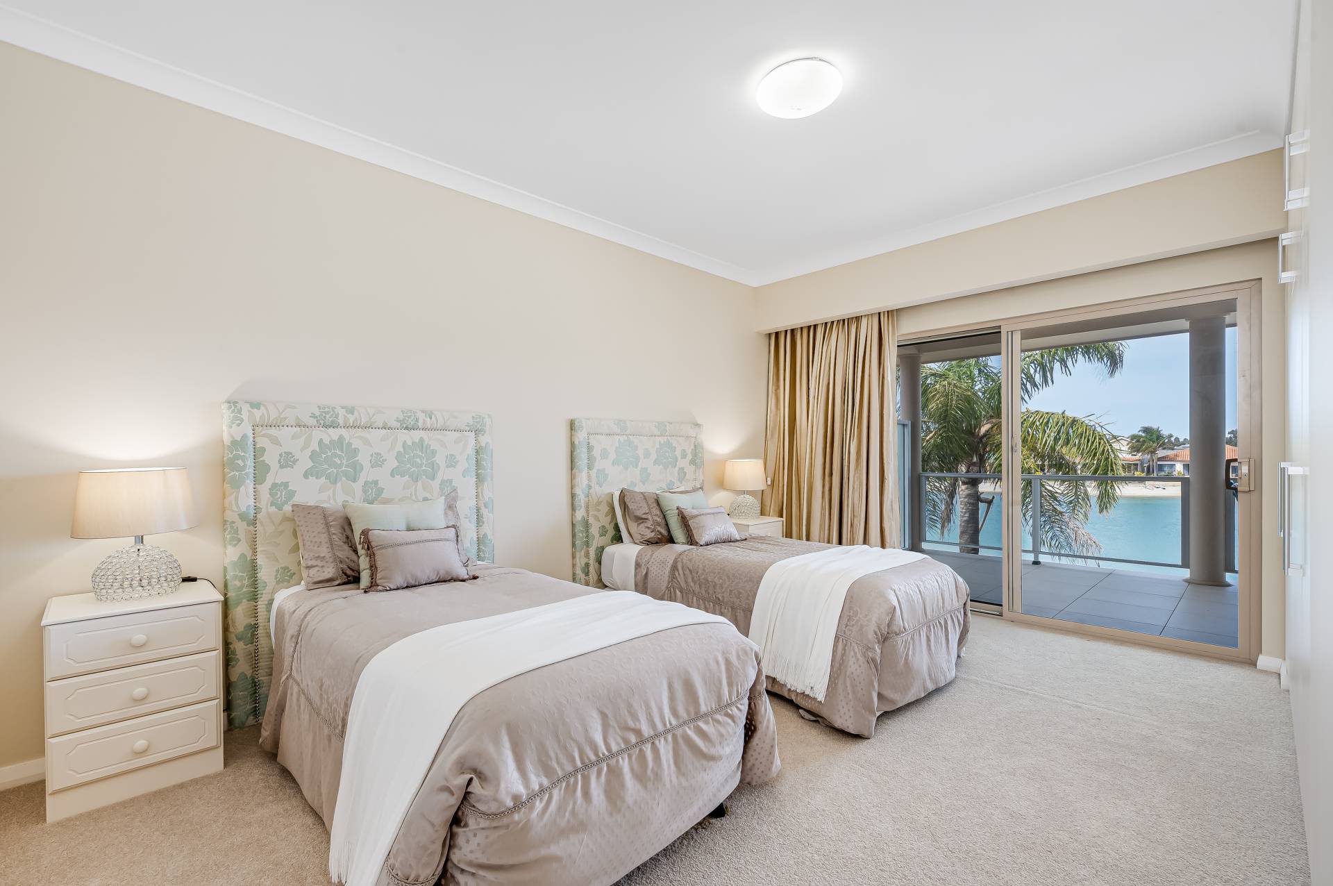 The upper level features two bedrooms. Both have built-in robes and are filled with light and lake views, plus direct access to the balcony. These 2 bedrooms share a main bathroom that consists of a walk-in shower, bath, vanity and toilet. Also a large linen/storage cupboard in the hallway.