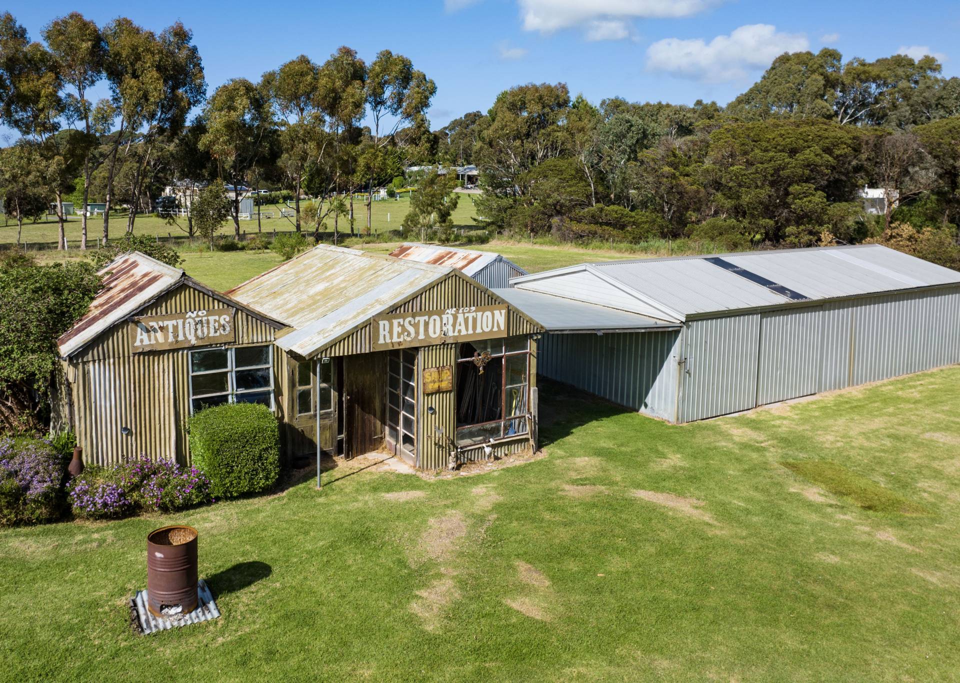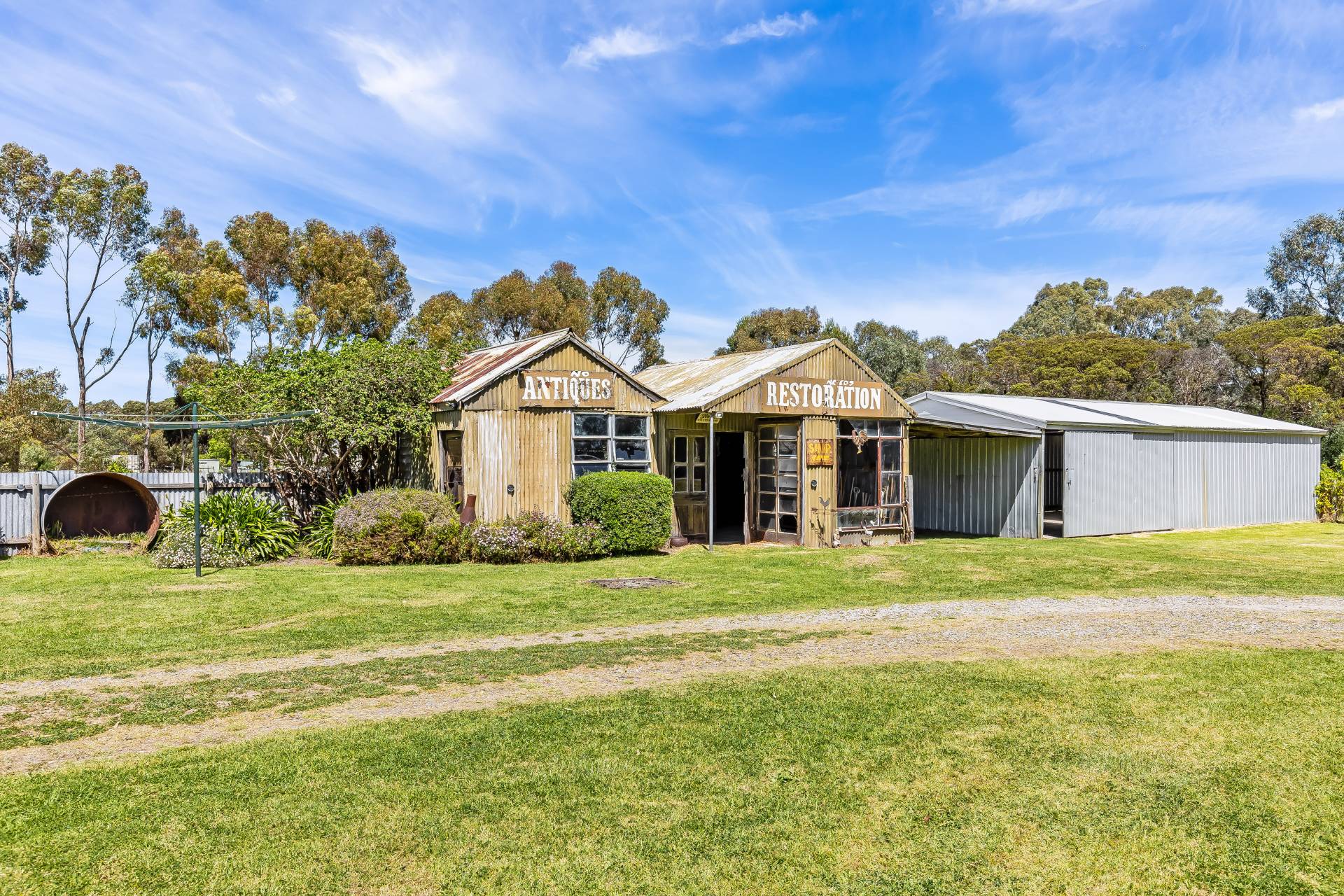 Outer features include a garage under the main roof, a large carport where you could park a boat or caravan, a 12m x 6m detached shed with power and lighting, implement shed and two rustic style outer buildings. Once used as a florist and an Antique store.