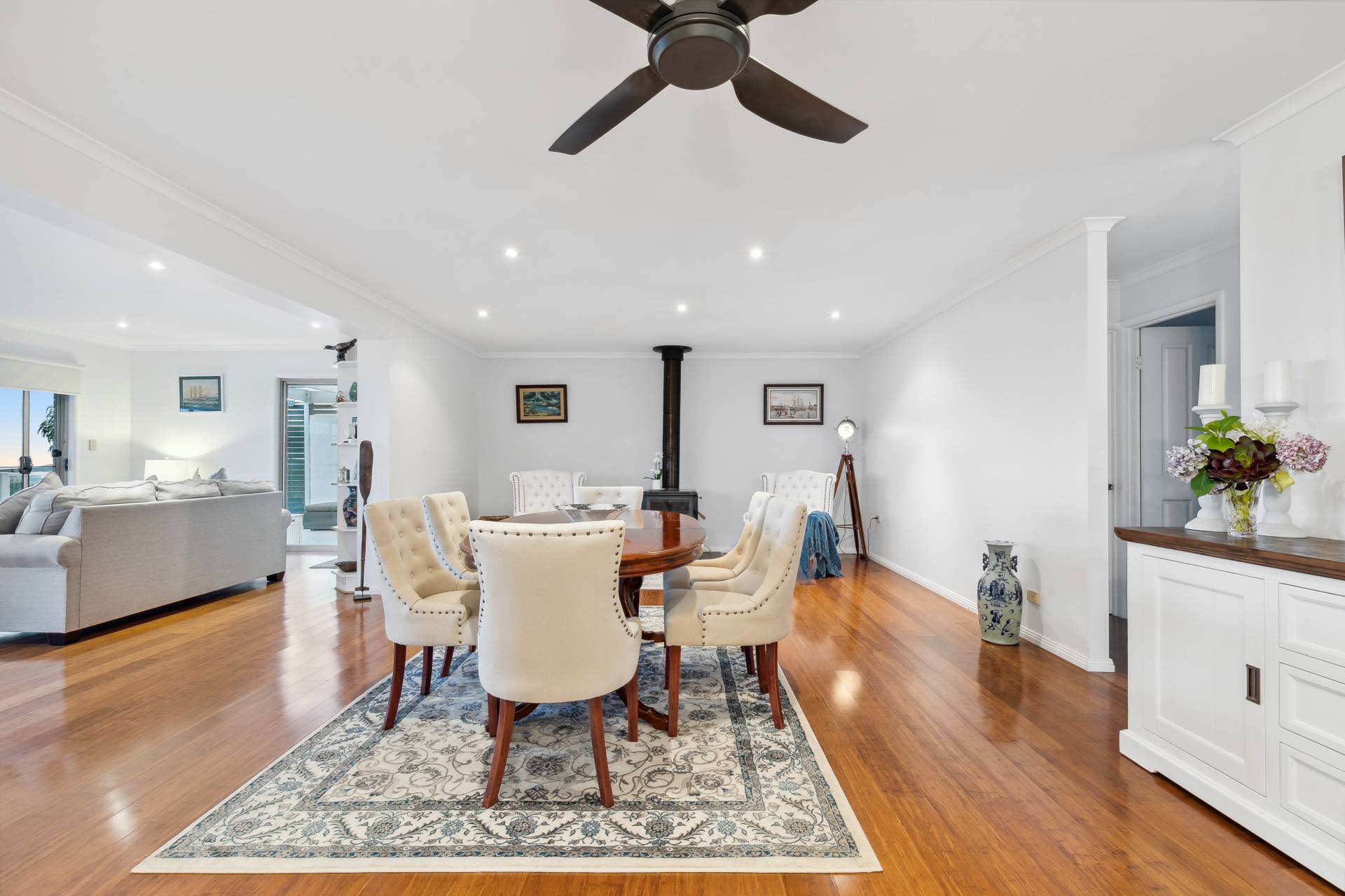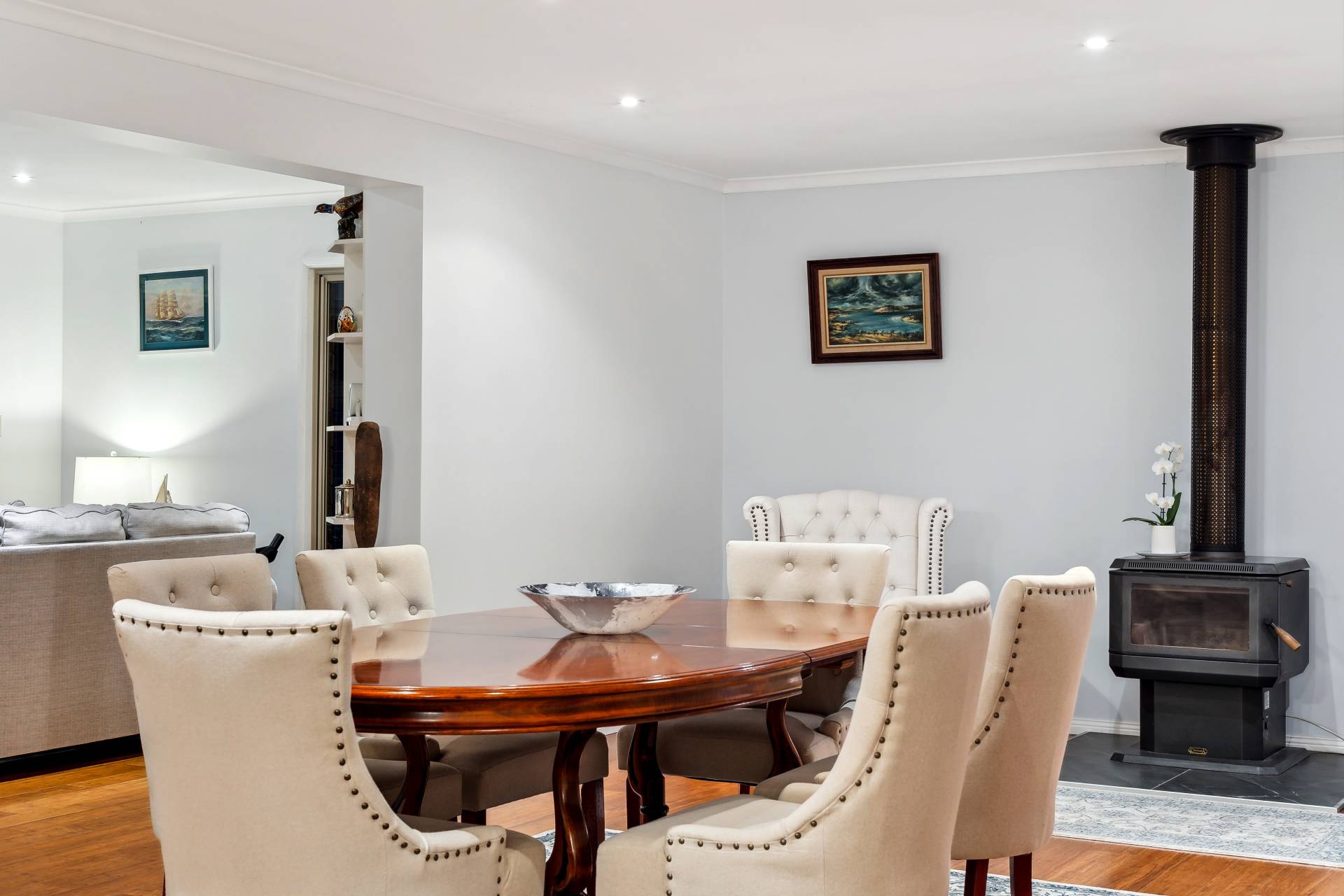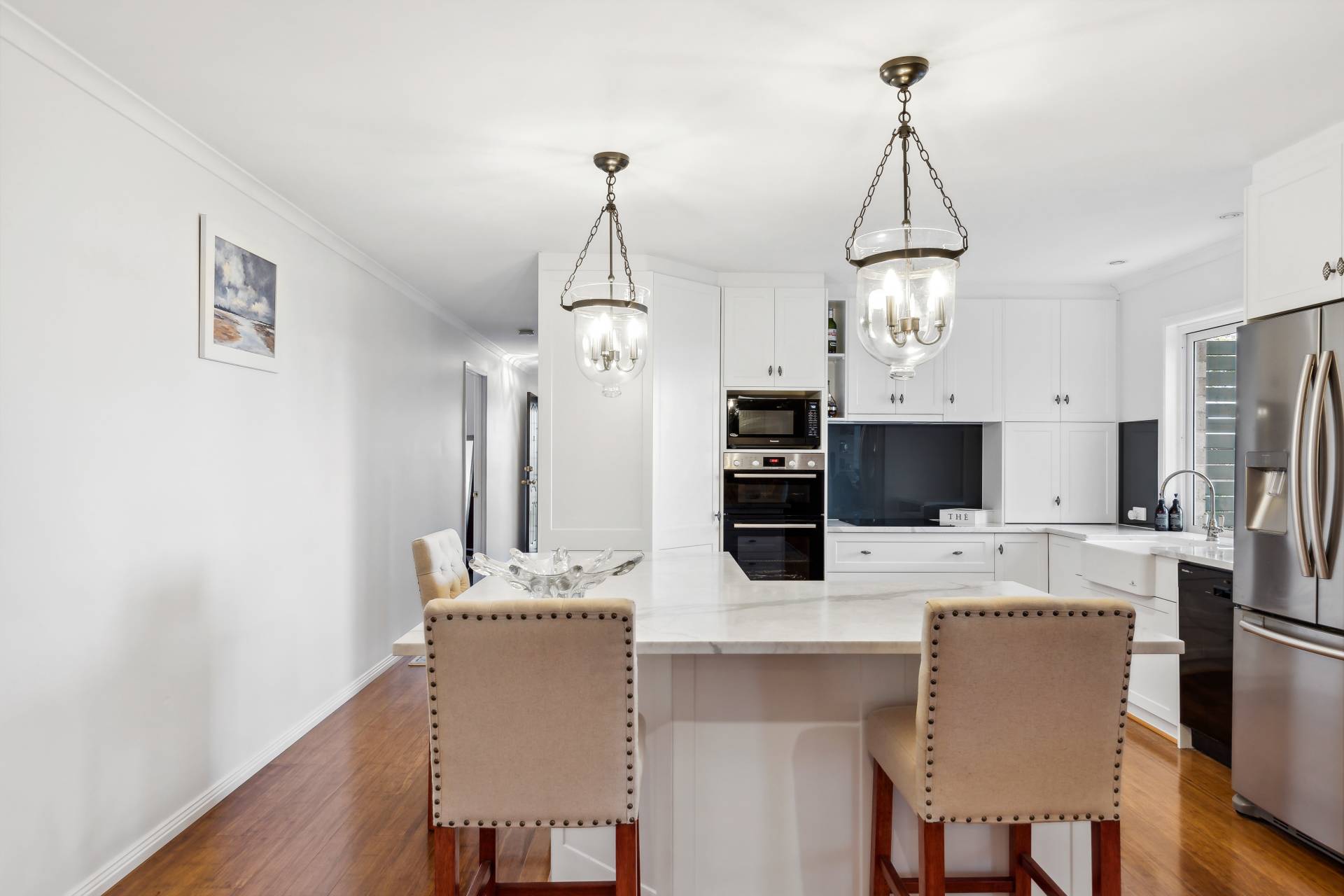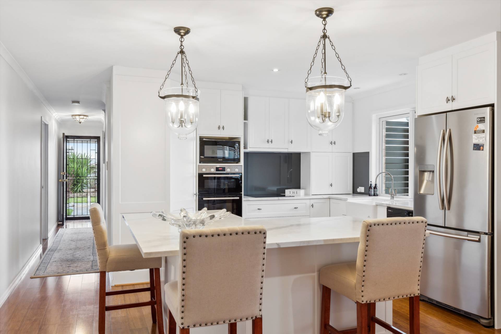 • Bright and beautiful open-plan dining and family area headlined by the stunning and spacious kitchen flush with sparkling stone bench tops and breakfast bar, feature pendant lighting, chic cabinetry and cupboards, dishwasher and sleek induction cook top