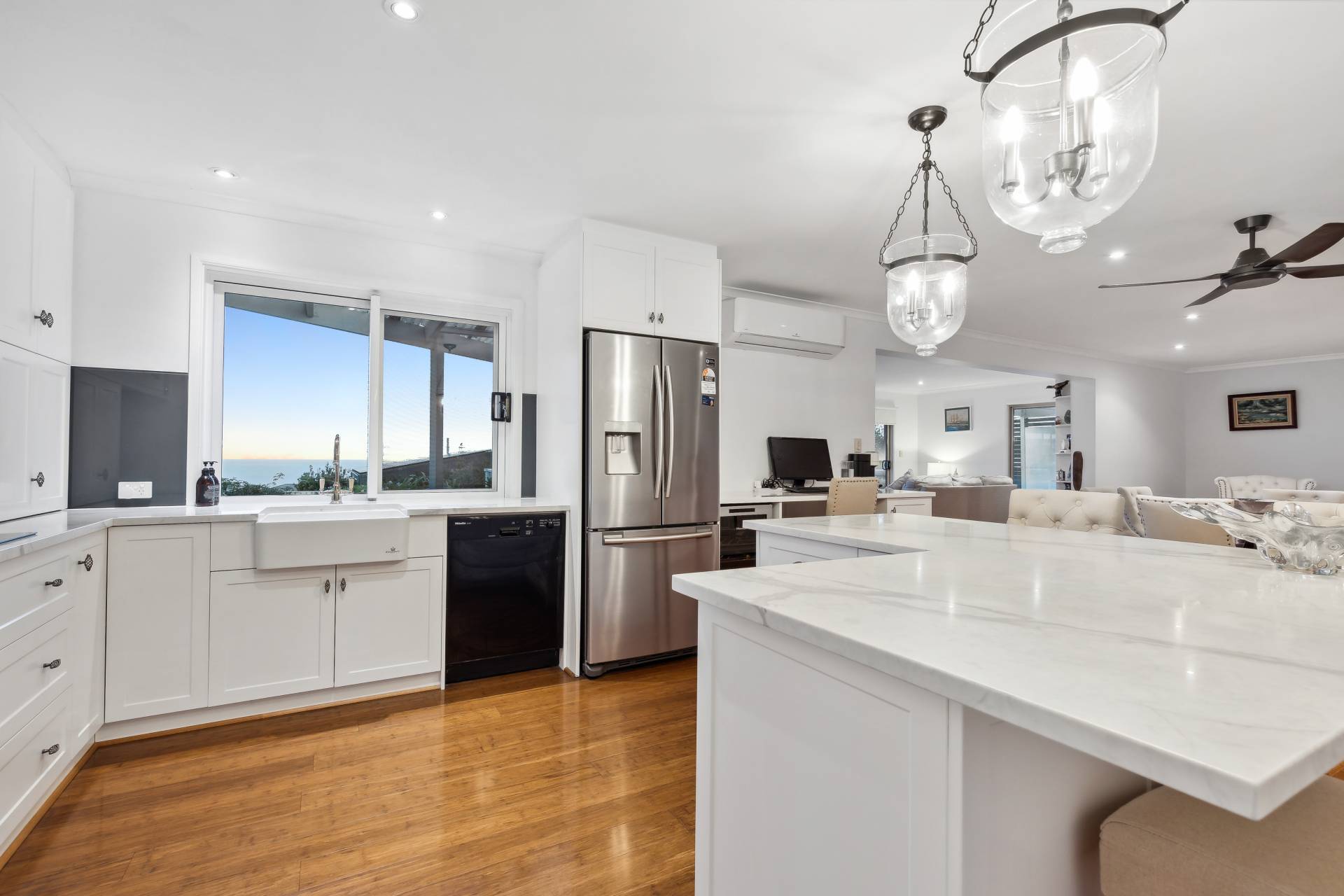 • Superb outdoor entertaining potential with a sliding window in the kitchen leading to an outdoor servery, an all-weather alfresco, striking timber decking and lovely views over a sunbathed backyard teeming with easy-care established gardens and unobstructed blue-sky views