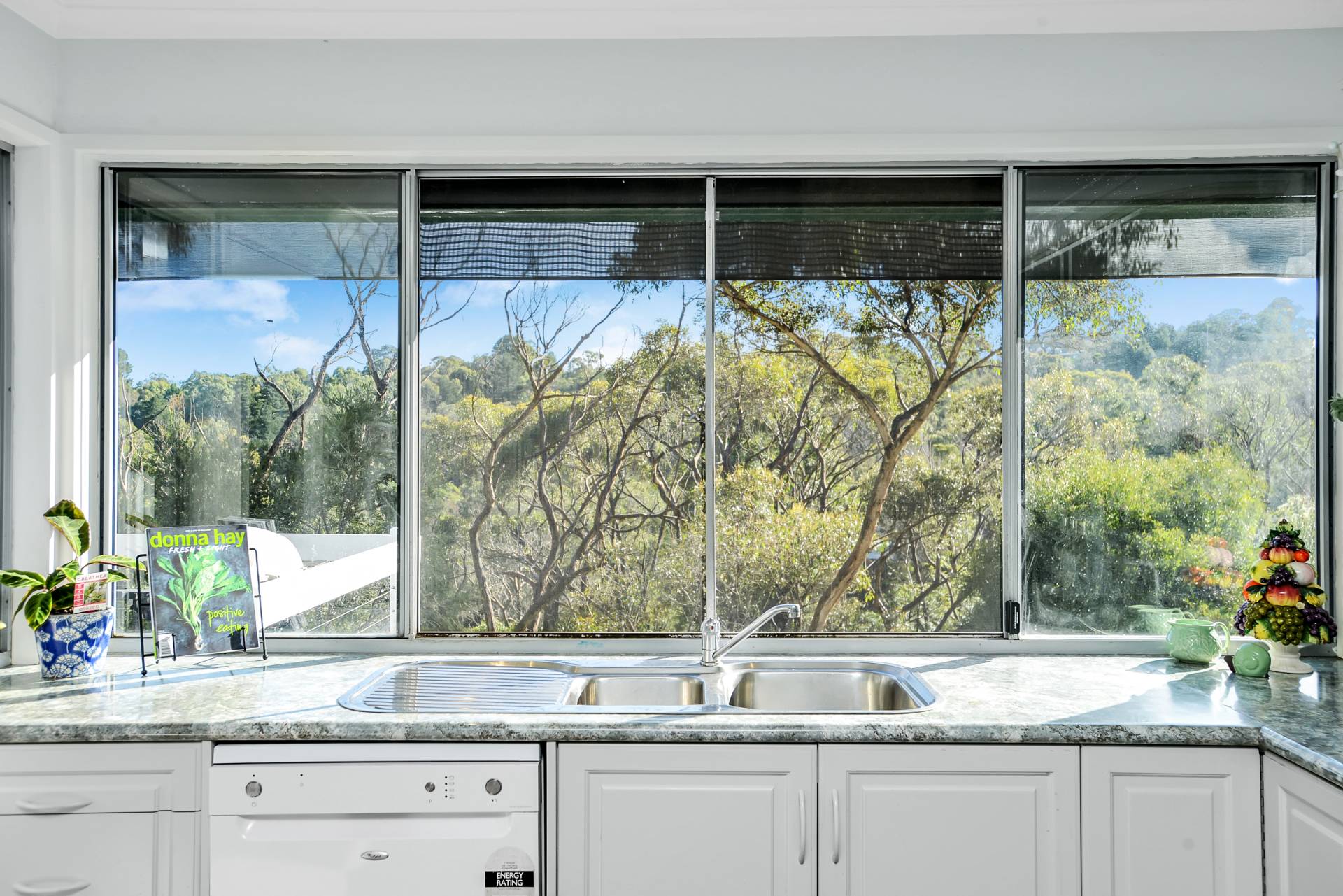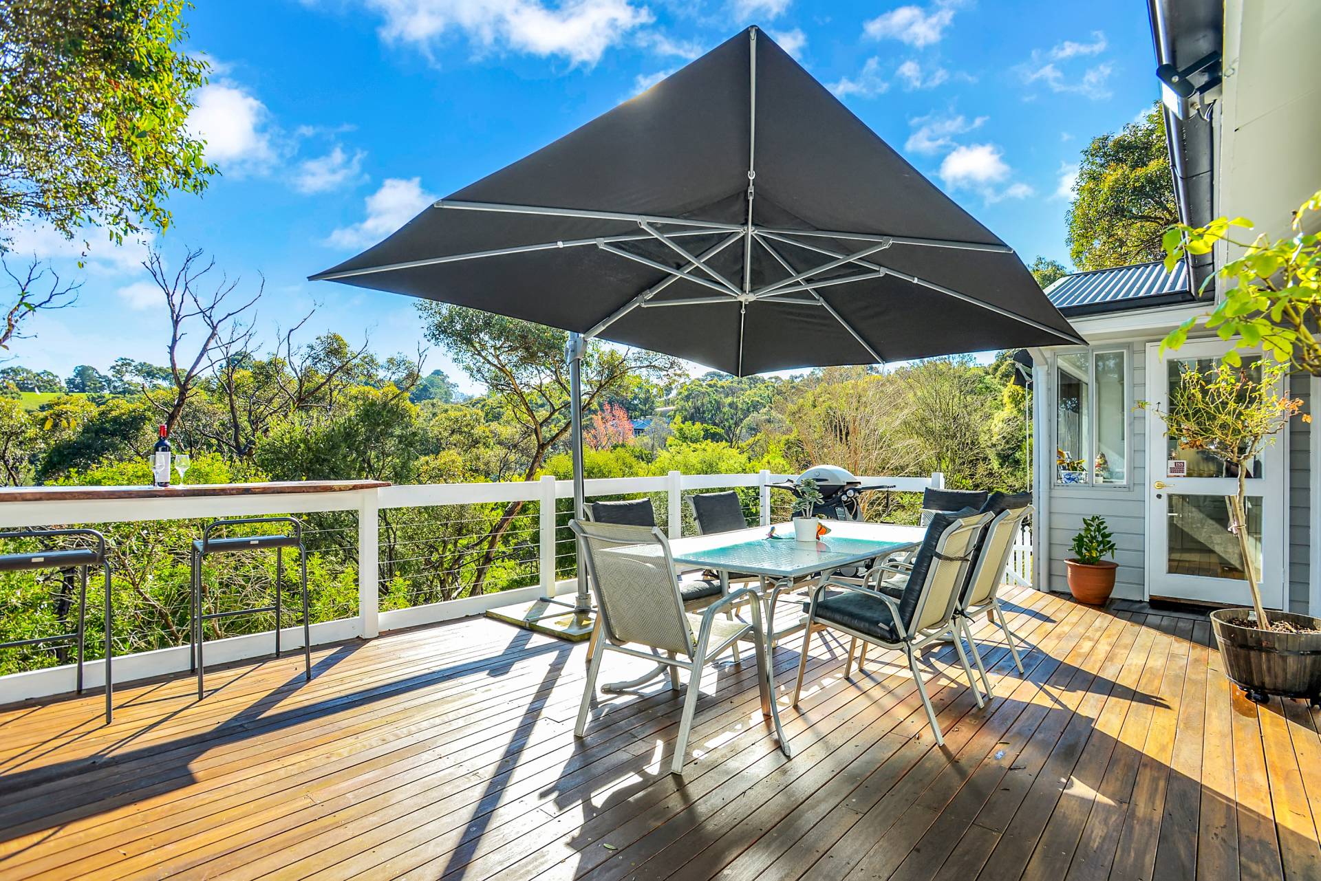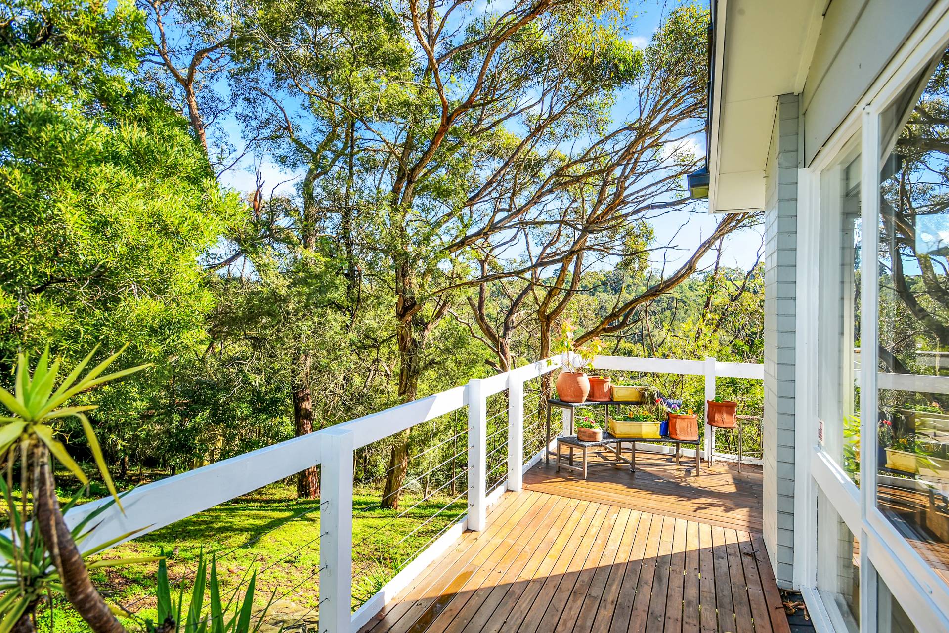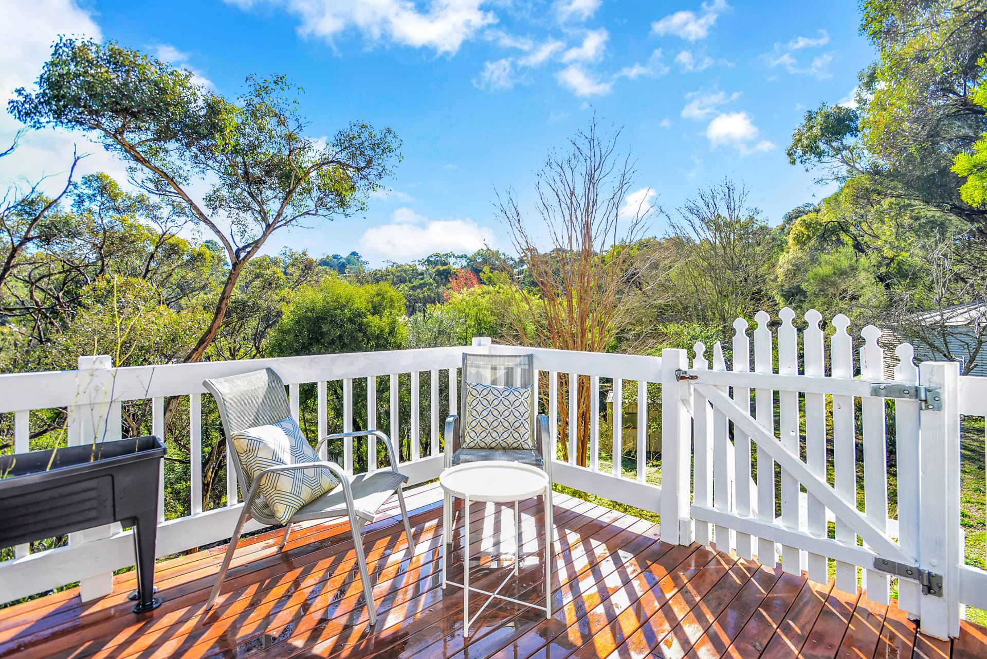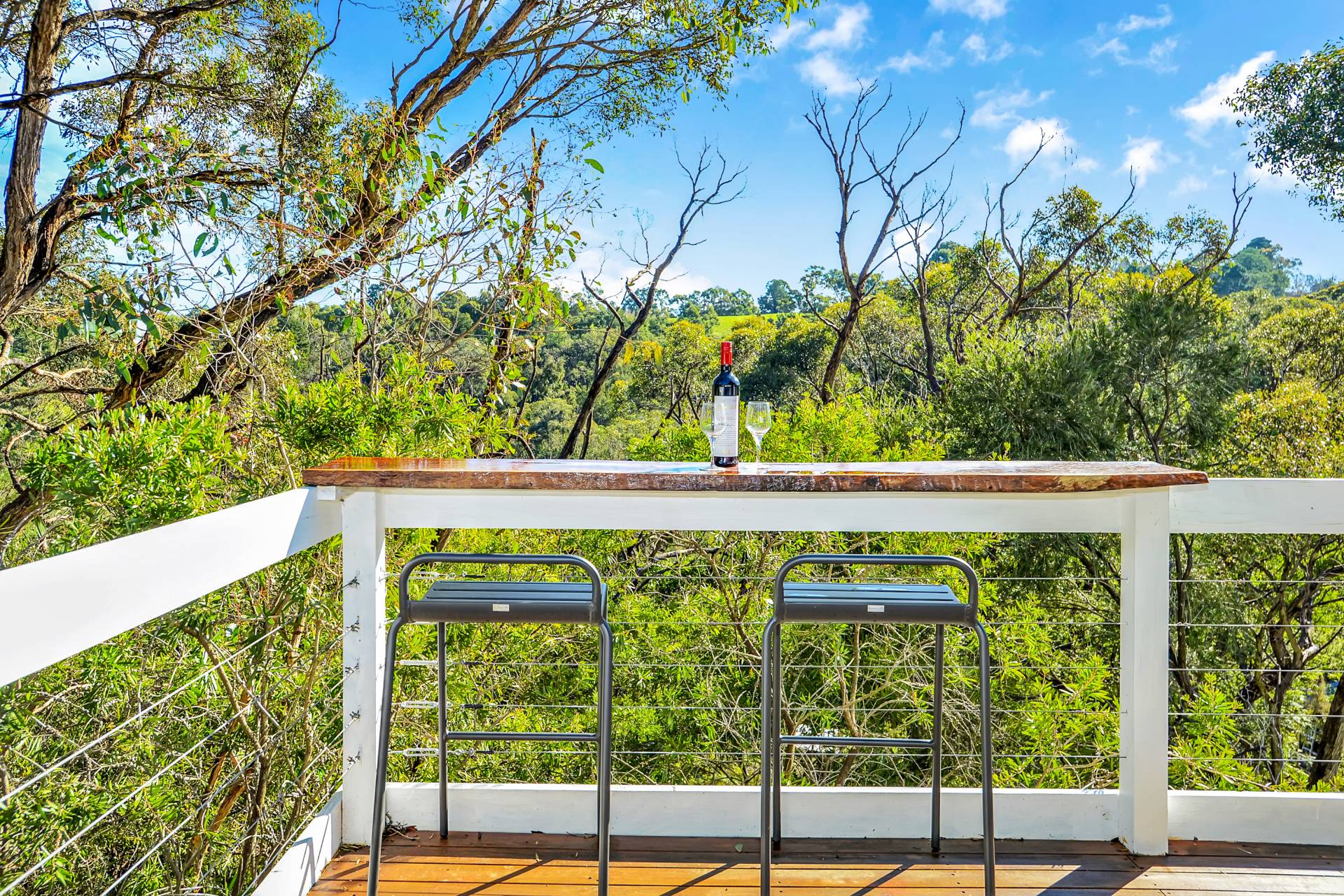 Nestled amongst large Gums, on nearly an acre of bushland, panoramic views, peace, and tranquillity with just your resident koalas as neighbors.