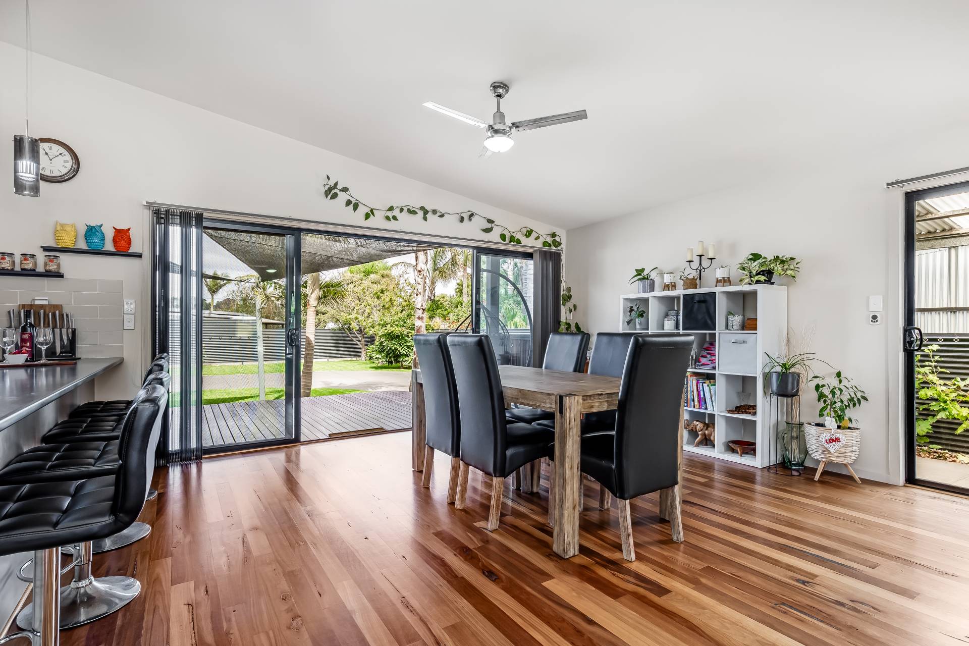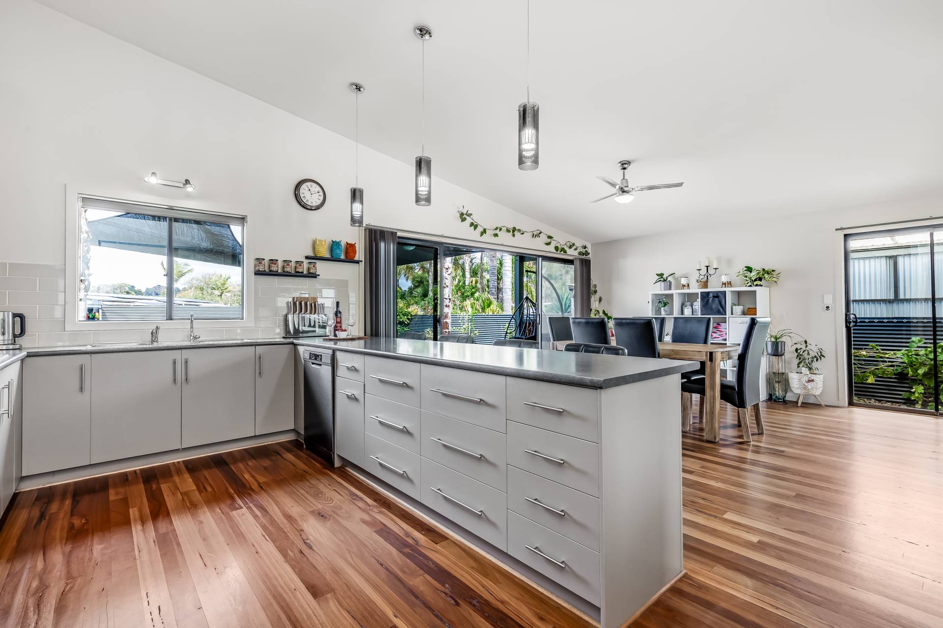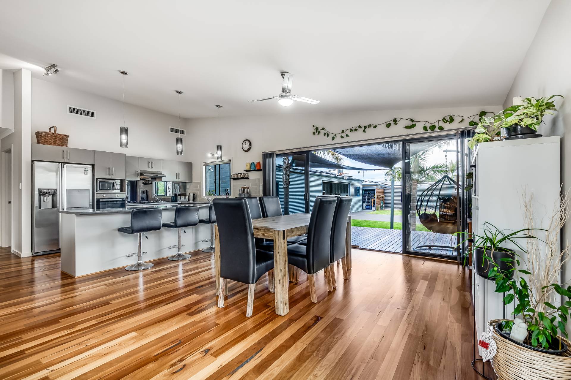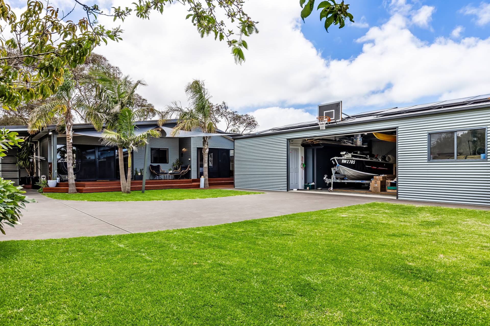 From established families to style-seeking couples eager to plant their feet in this thriving coastal pocket, enjoy light-filled open-plan entertaining headlined by a spacious chef’s zone ready to socialise and scan across this beautiful space. Together with wide glass sliders opening to a stunning decked alfresco looking out over the sunbathed backyard sprawling with lush lawns, dotted with feature palms, and ending with a massive garage/shed for all your water sport, seaside toys and golf cart. This superb and sweeping footprint delivers an idyllic base to call home.