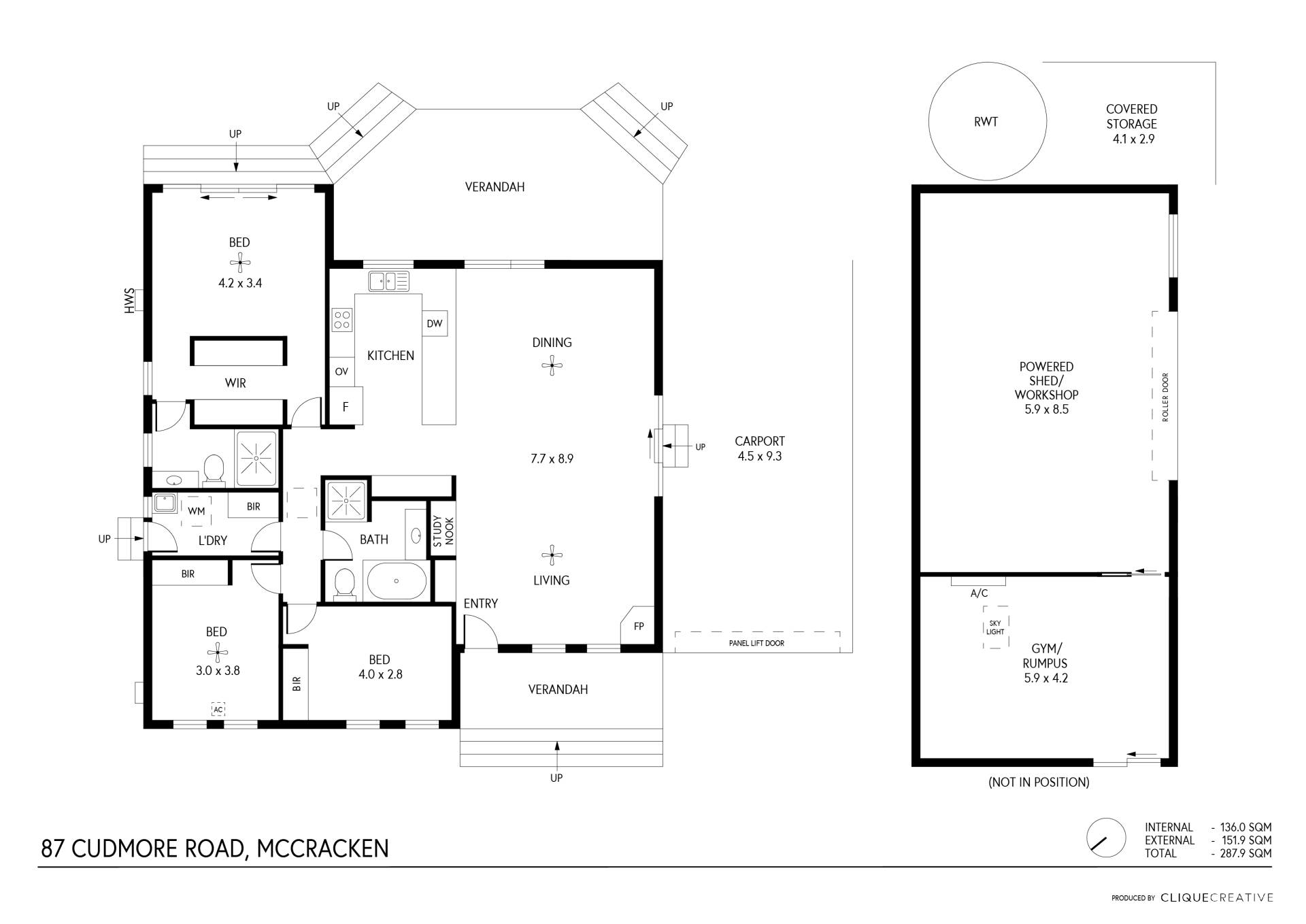 • Huge garage/shed fully powered, as well as an adjoining rumpus room, gym or studio space