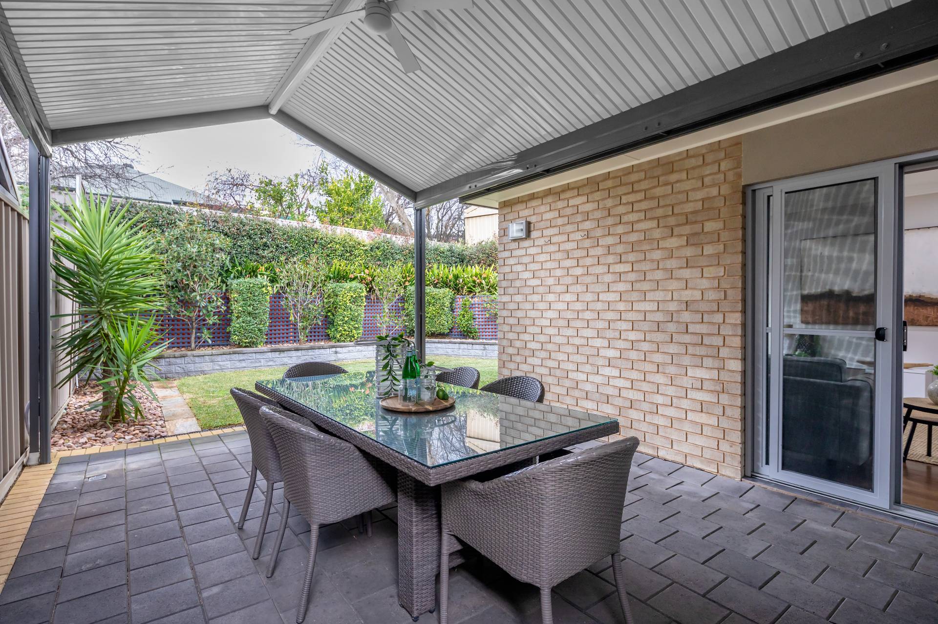- Alfresco entertaining area, with fan for cooling and lawn area, established and private garden