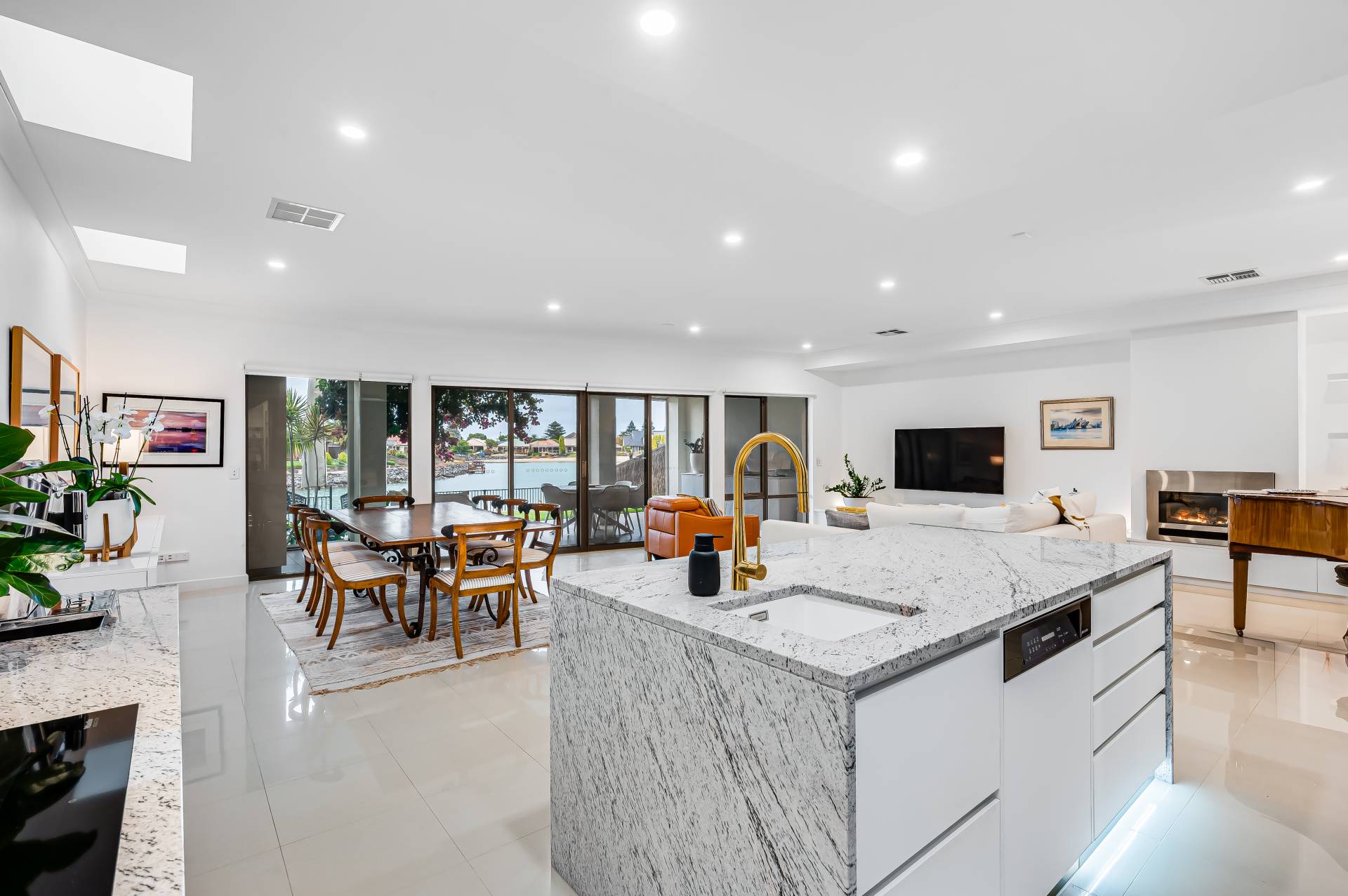With gorgeous granite bench tops adorning the beautiful chef’s zone ready to inspire culinary triumphs and conversation while you cook, toasty gas log fireplace the cherry on top to your cosy after-dinner evenings with friends and family, to the chic all-weather alfresco complete with full outdoor BBQ, while flowering gardens and lush lawns lead to your personal jetty where water sport toys await weekend enthusiasts… now this is living.