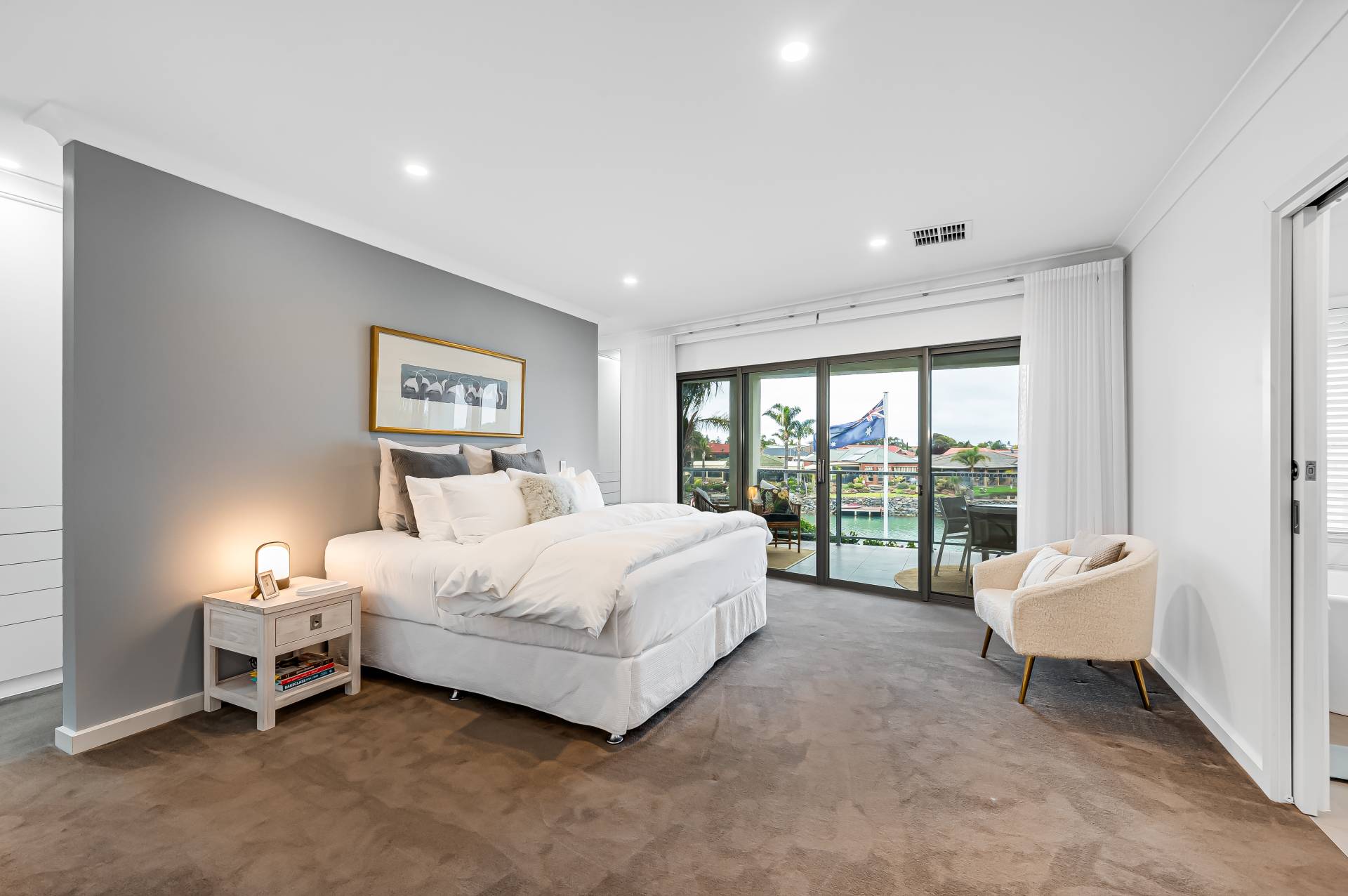 Barbecue Outdoor entertainment area Jetty Water frontage Undercover outdoor area Fenced Skylight Smoke Alarms Garage Remote Close to beach Dishwasher Solar Panels Ducted Heating Ducted Cooling Gas Heating Built-in wardrobe Secure Parking Safety Switch Water access Balcony