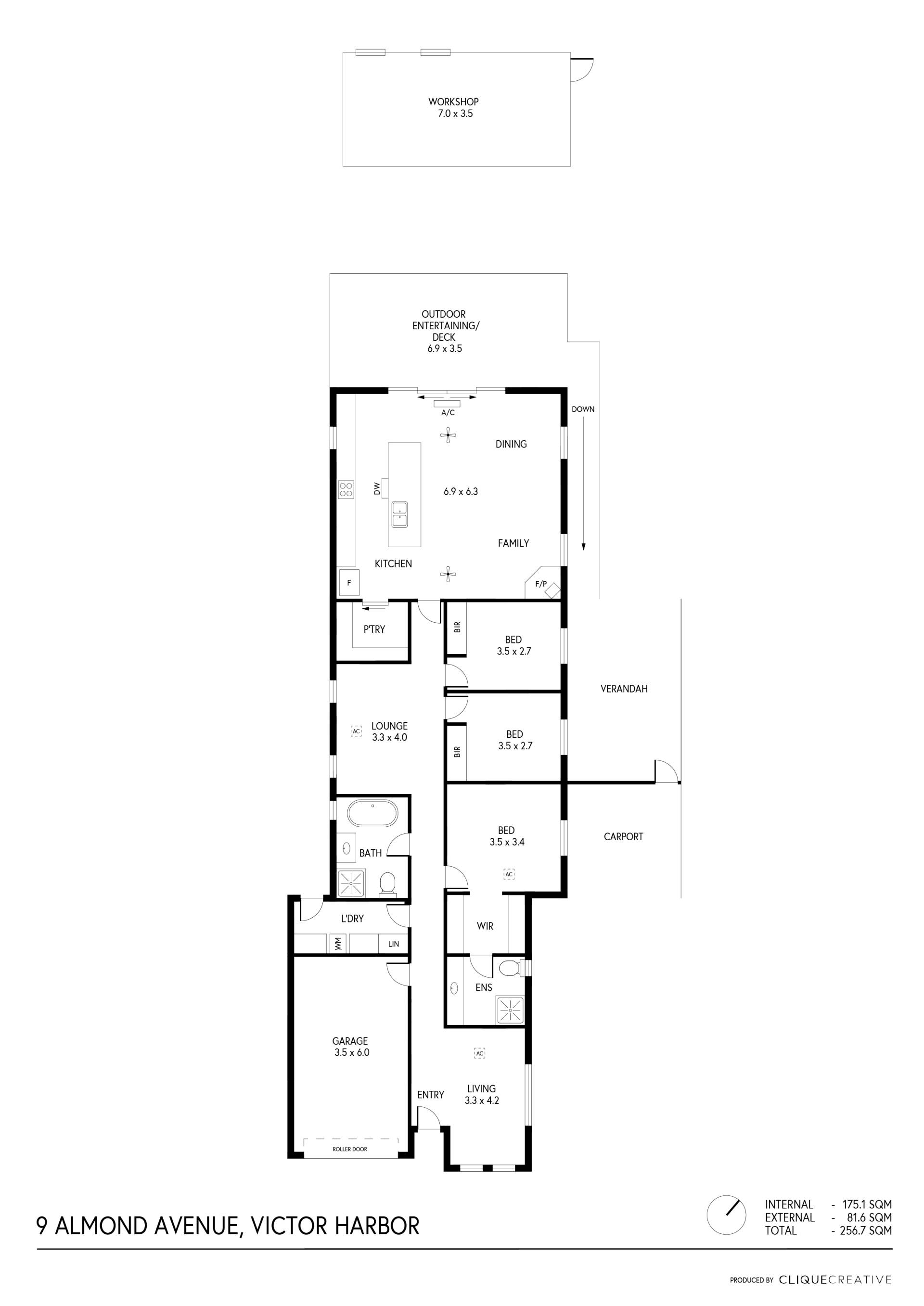 • Ducted evaporative cooling, 7kw split system heating and cooling plus ceiling fans