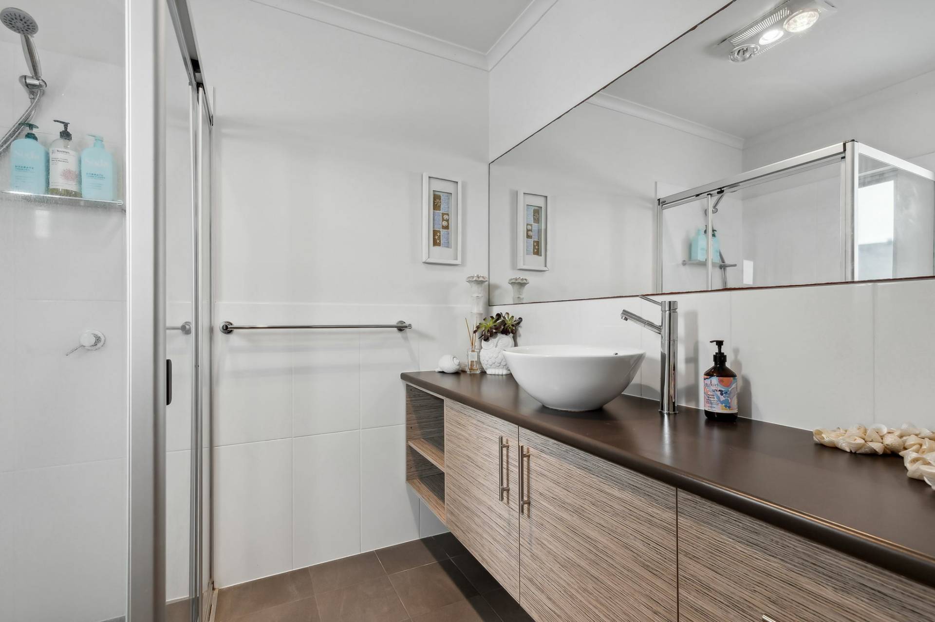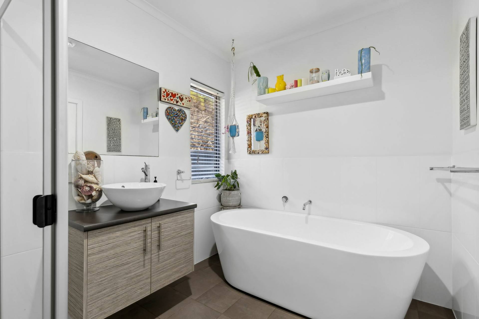 At day’s end, there are 3 carpeted bedrooms to retreat to; 2 have built-in robes and share a swish main bathroom with an inviting freestanding bathtub and shower, while the larger master has a walk-through robe into an elegant ensuite with a shower and a lengthy mirror above its stylish floating vanity. All up, this property is the dream answer to anyone’s wishes for a life less hectic – whether full-time or for easy weekend escapes.