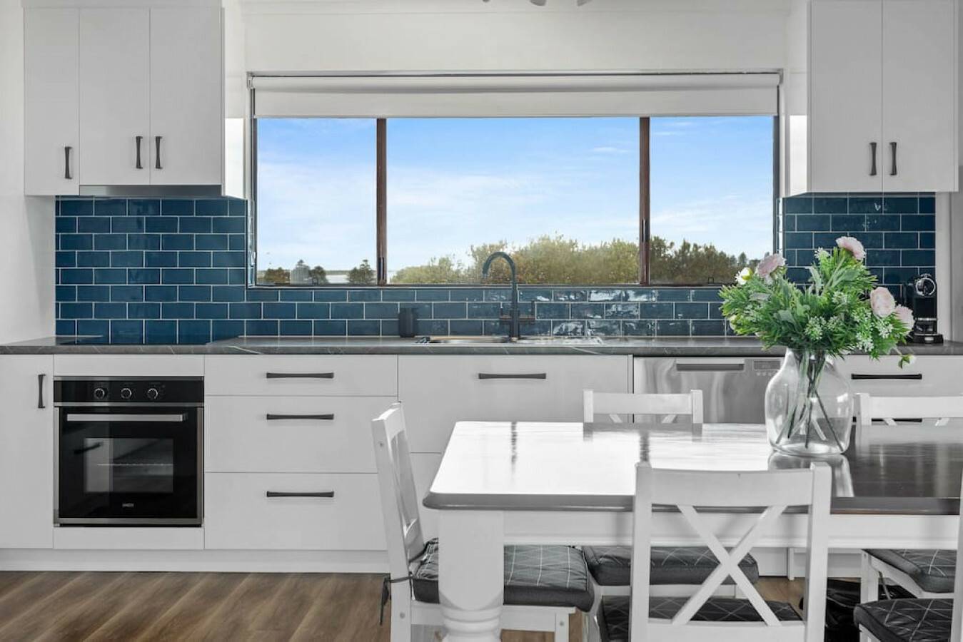 • Spacious upstairs open-plan living, dining & kitchen area with views over the ocean and township