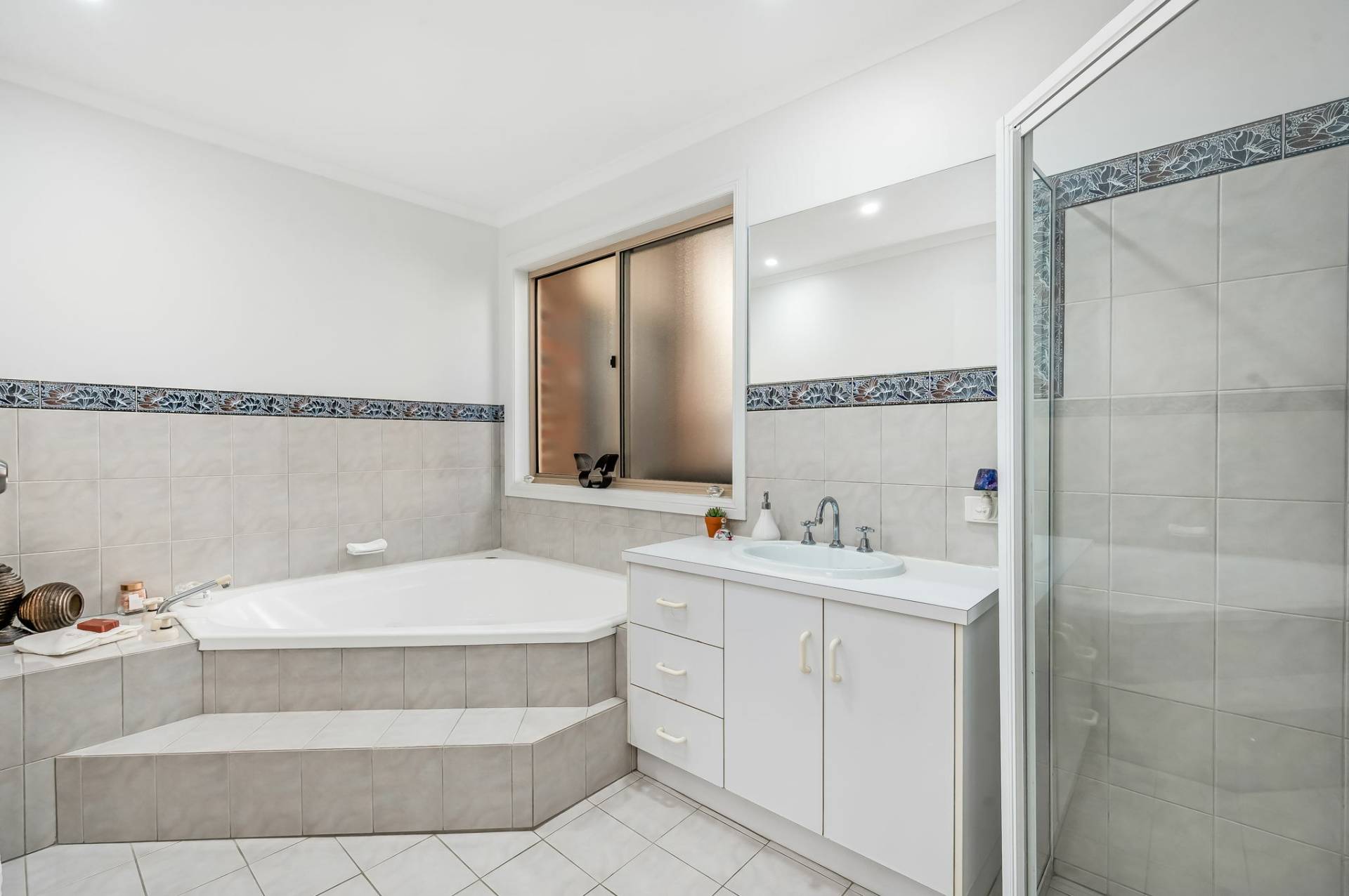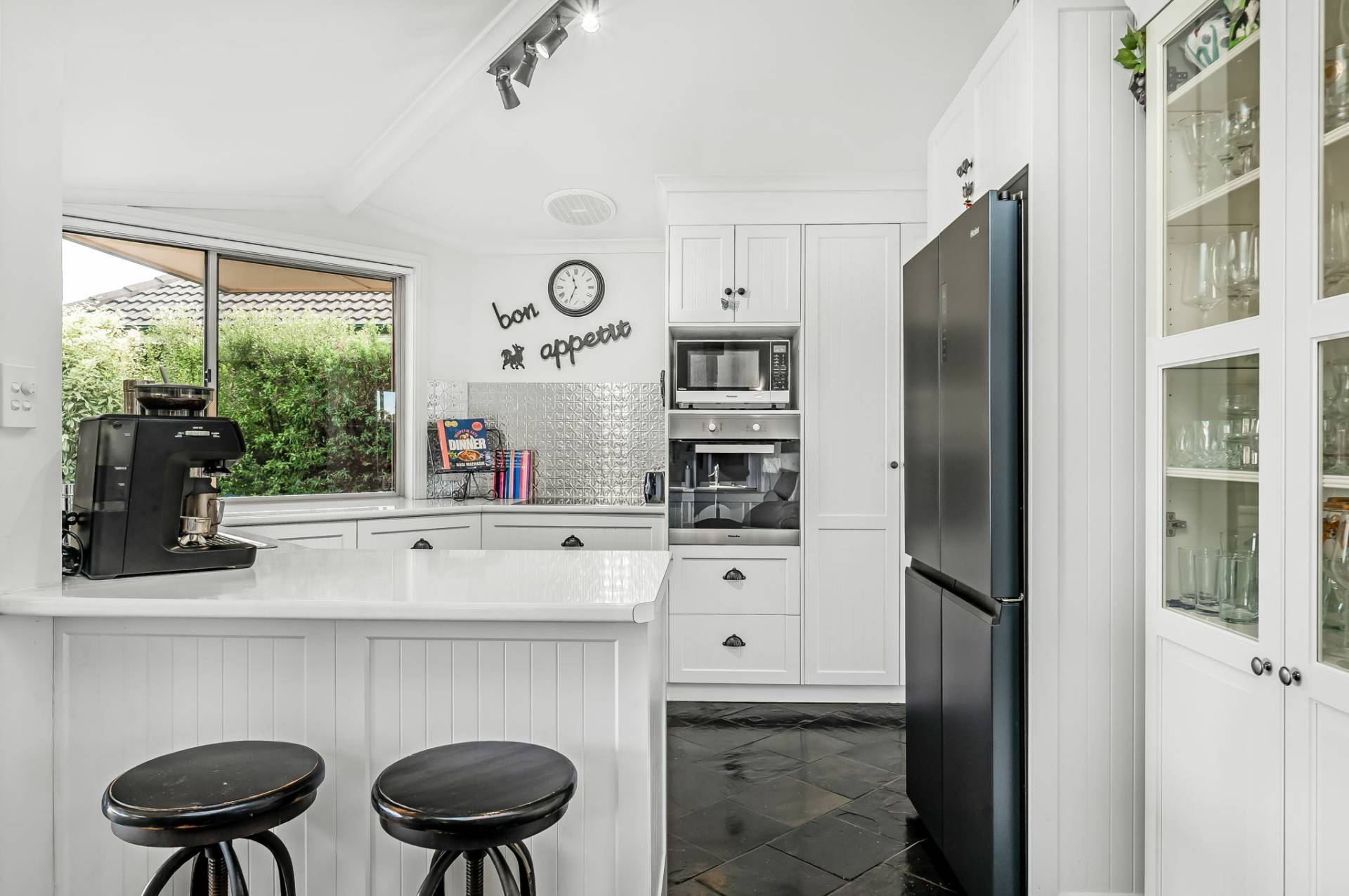 Featuring four lovely size bedrooms, the master has a walk-through robe to a huge ensuite bathroom. Bedrooms 2 & 3 have easy access to the main bathroom that features a corner spa bath, walk-in shower and vanity. Separate toilet and a laundry. The sunken lounge and dining room are serviced by a wet bar, plus an open plan living and casual meals area. Stunning v-board kitchen with a press metal backsplash incorporates a double fridge, dishwasher, with plenty of cupboards and food prep room.