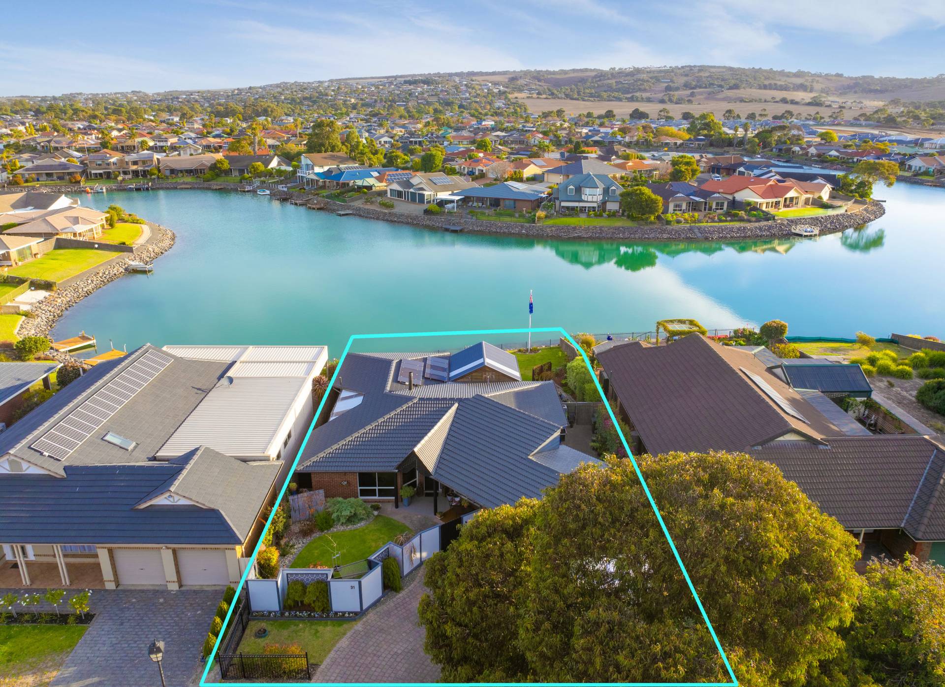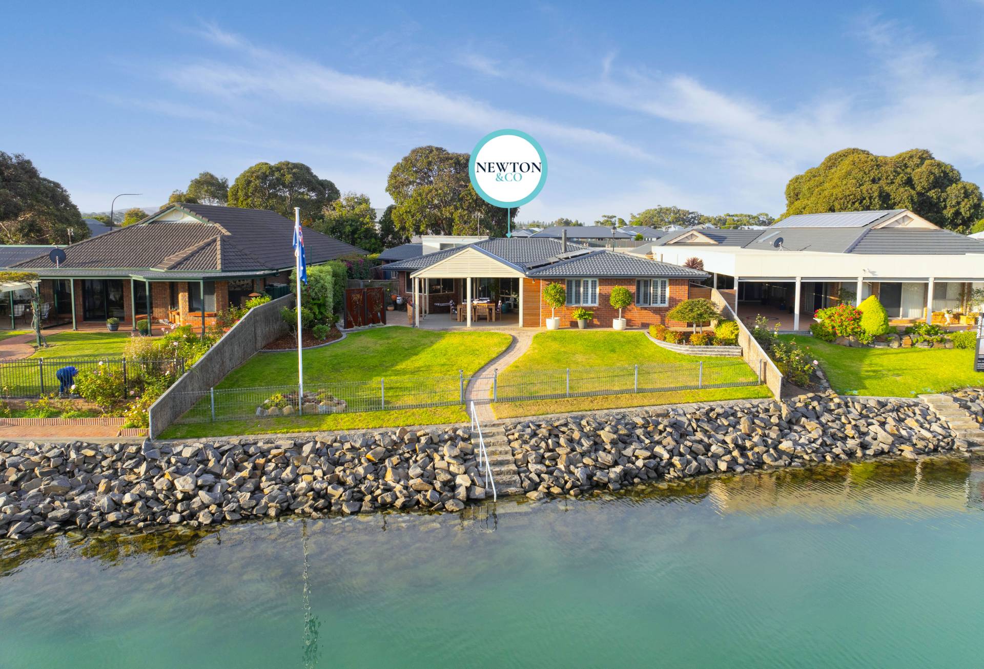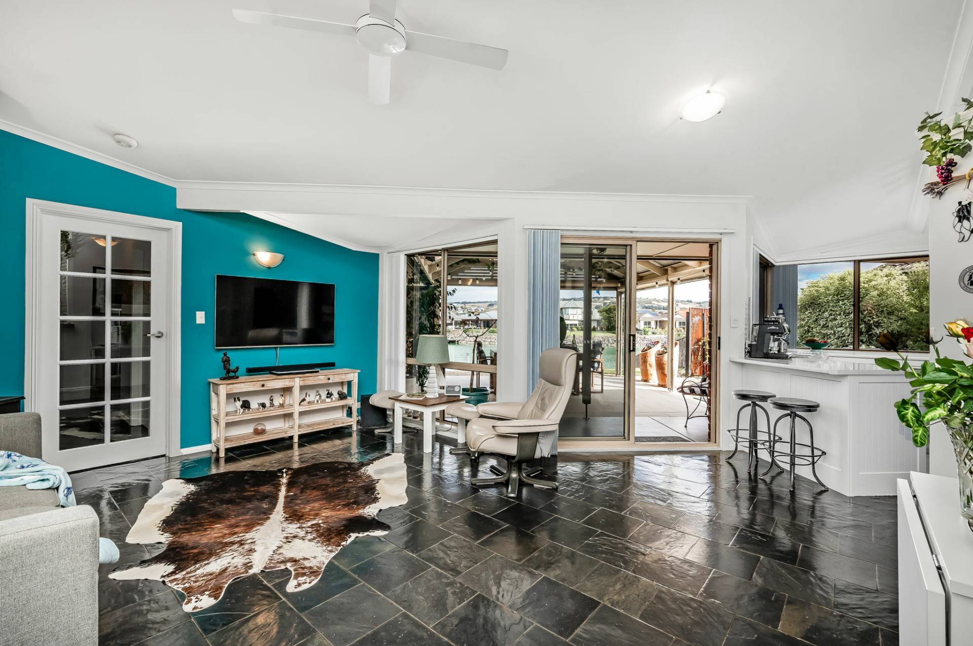 Make everyday a holiday in this enchanting waterfront home. Offering an intoxicating lifestyle and luxury built to impress with views down both sides of the lake. Spilling with loads of natural light, plenty of easy entertaining options inside and out. Positioned behind a private very stylish front courtyard fence is this architectual home with high raked ceilings and different shaped rooms. The picture-perfect front courtyard is a real sun magnet with a decked seating area surrounded by gorgeous gardens, lighting at nighttime and a manicured lawn.