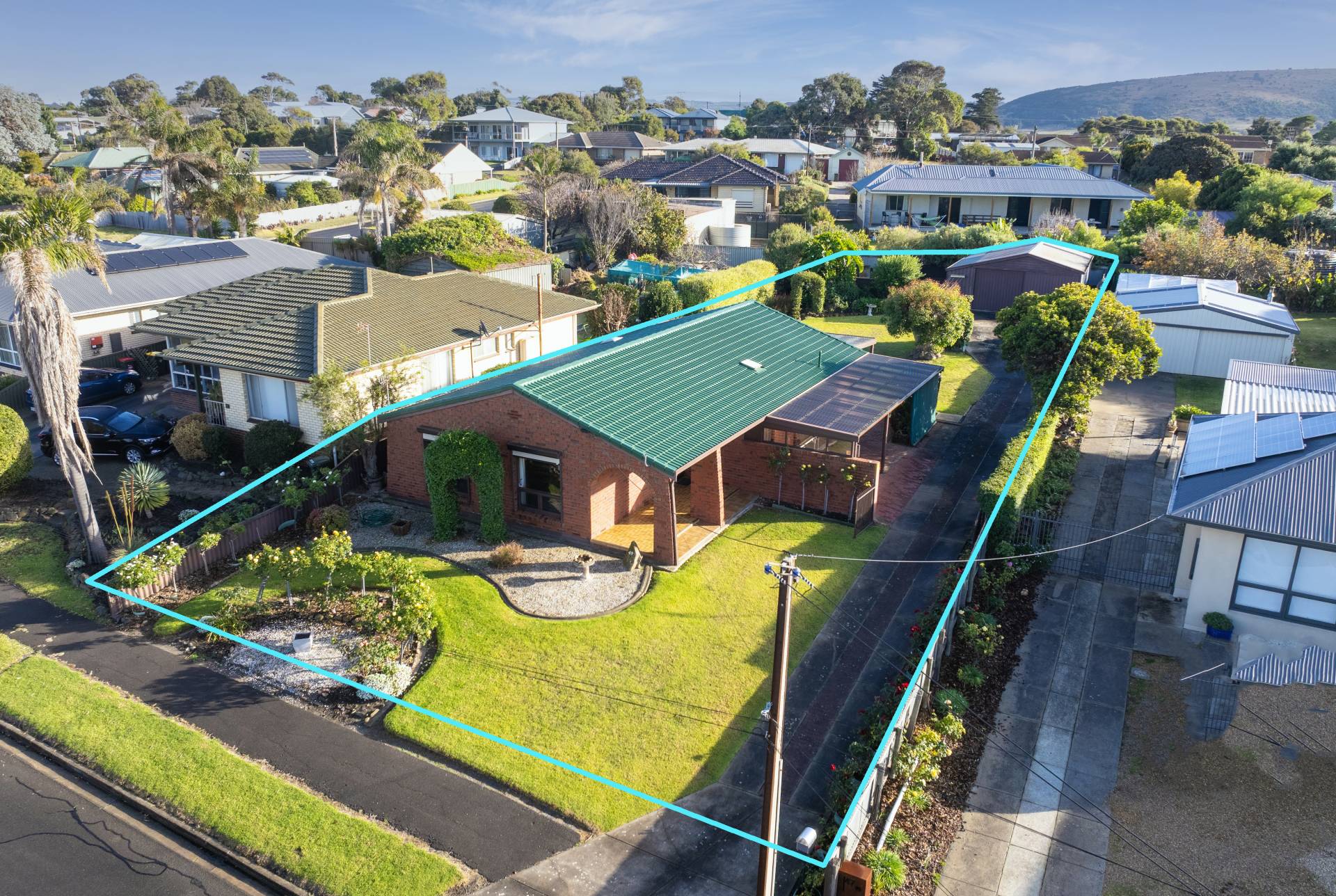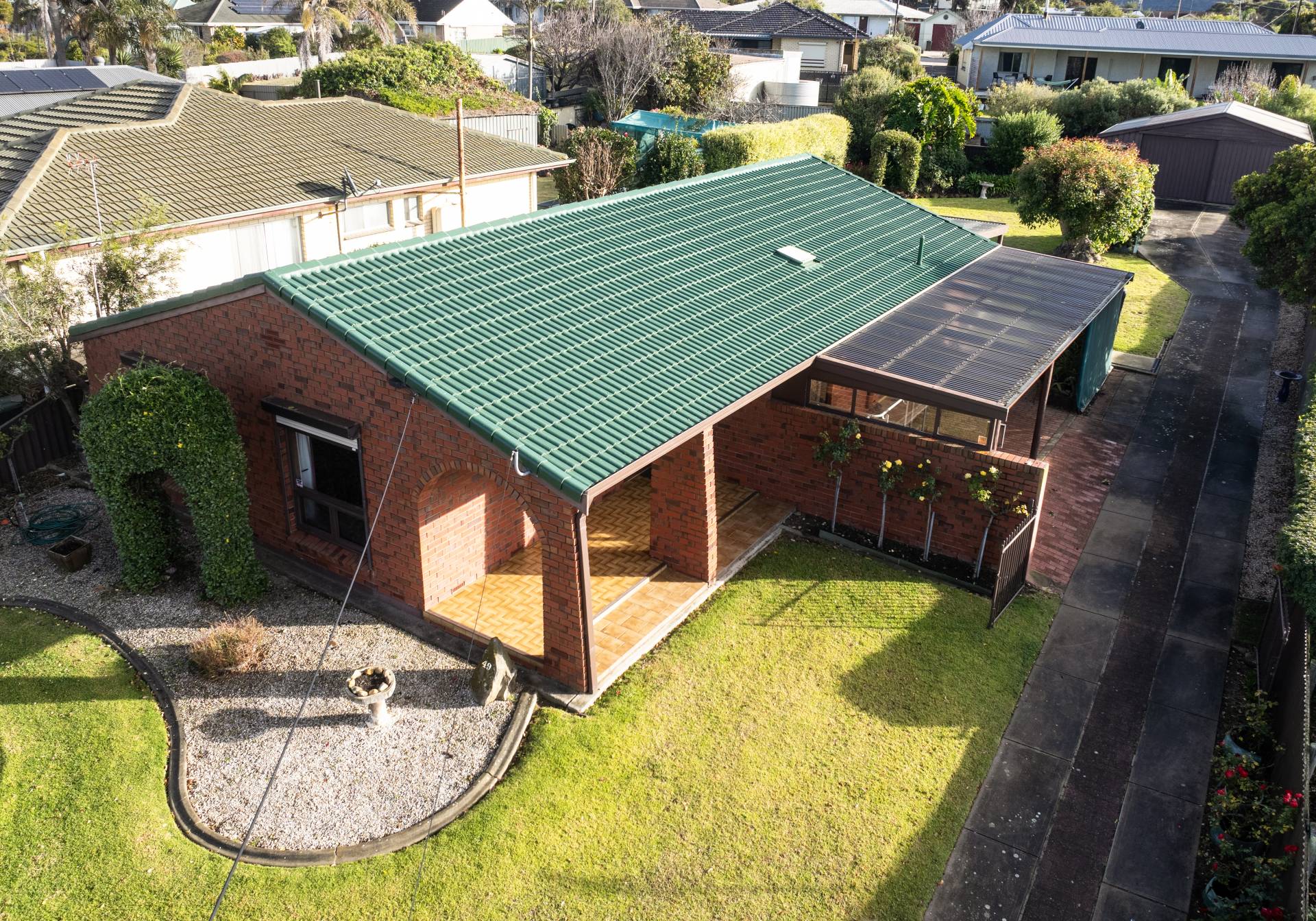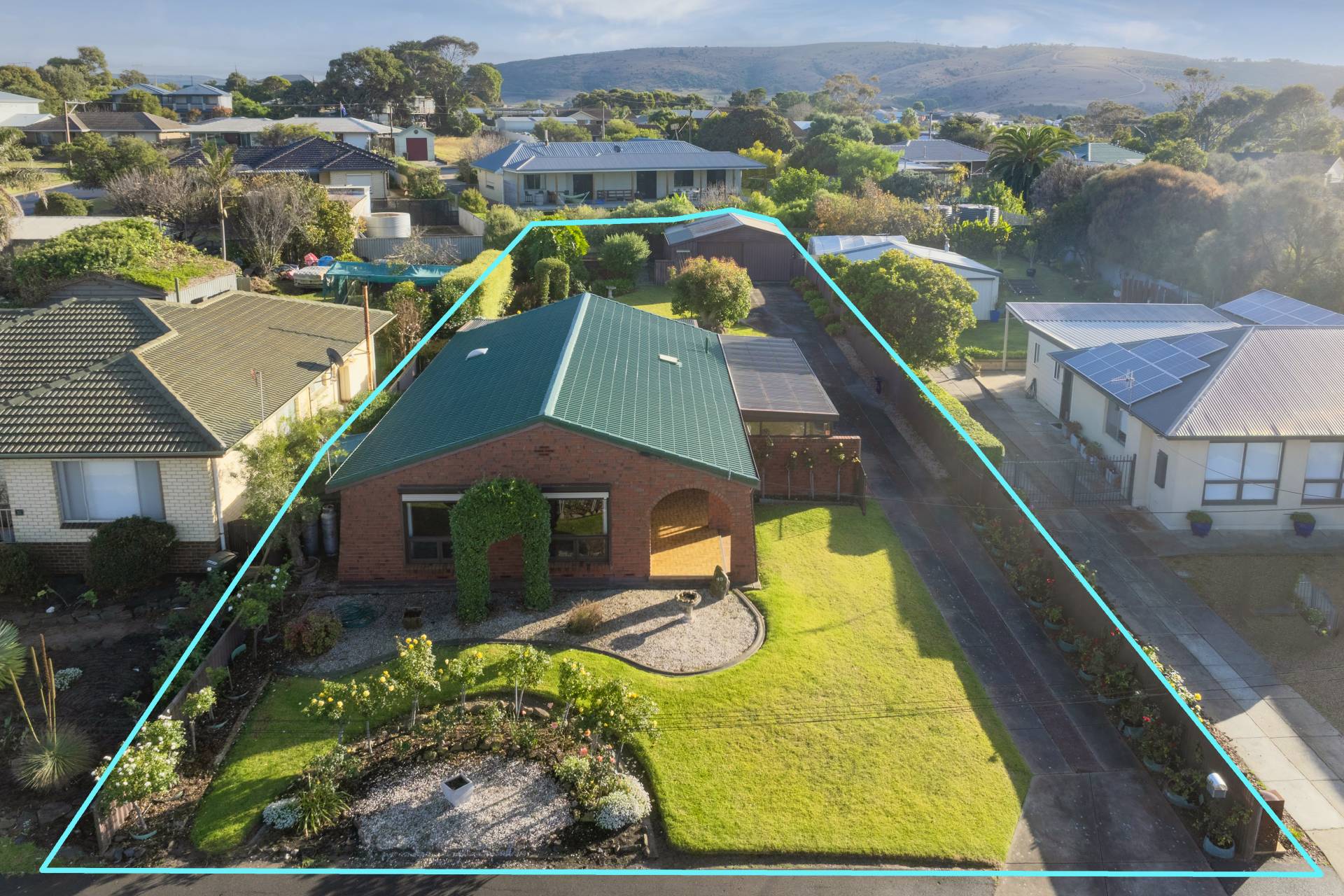 An iconic Hayborough haven just three-blocks back from the popular surfers’ beach of Chiton Rocks, 49 Sutherland Avenue is a sweeping 1980’s family home set on a sprawling 885sqm parcel primed for bright new beginnings. Neatly presented and much-loved for three decades, red-brick charm gives way to spacious interior living potential as the original, open-plan kitchen, dining and seperate lounge with glimpses of the ocean just remind you of your surroundings.