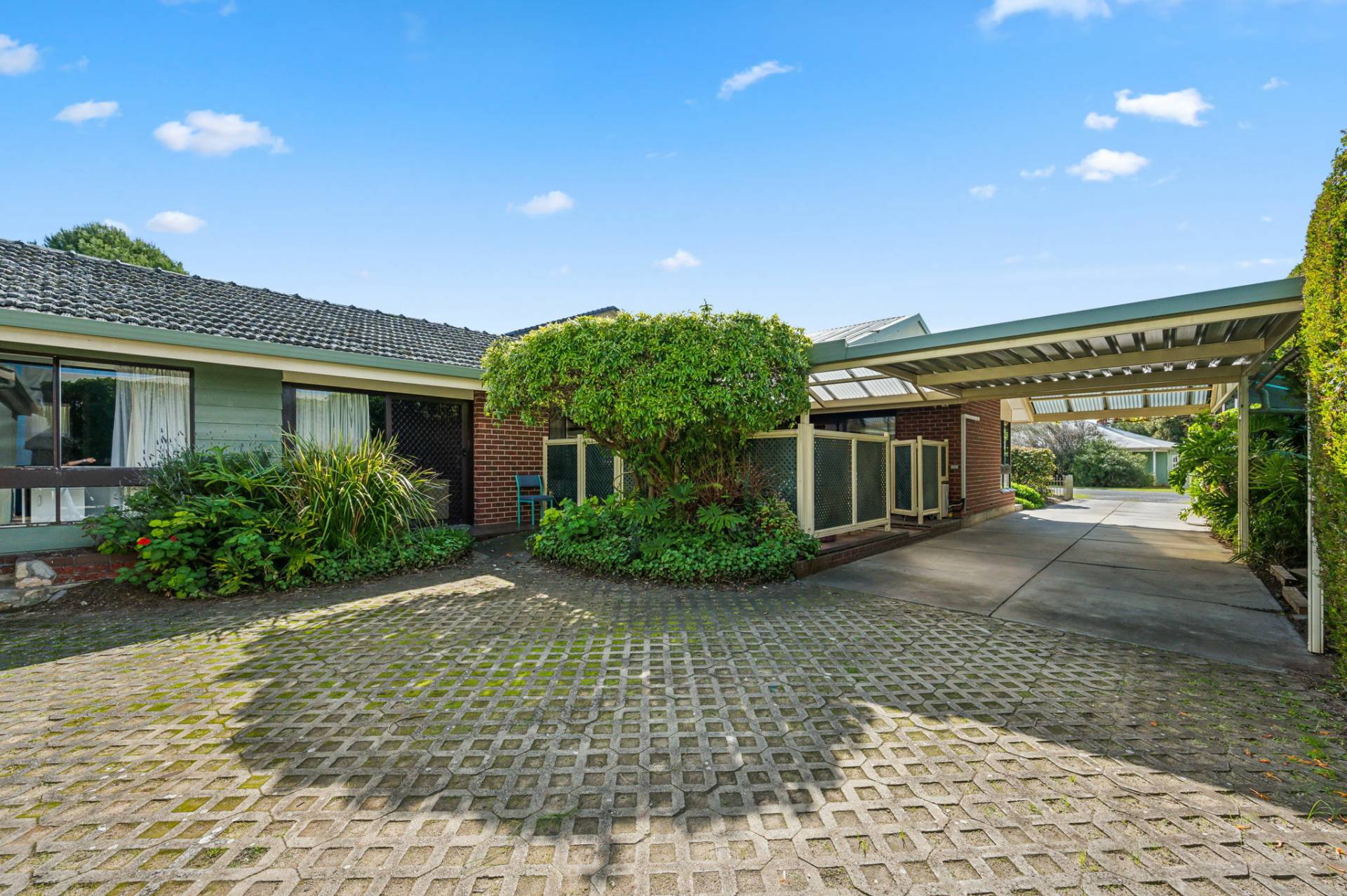 Leafy front yard, charming red-brick frontage and long driveway with carport
