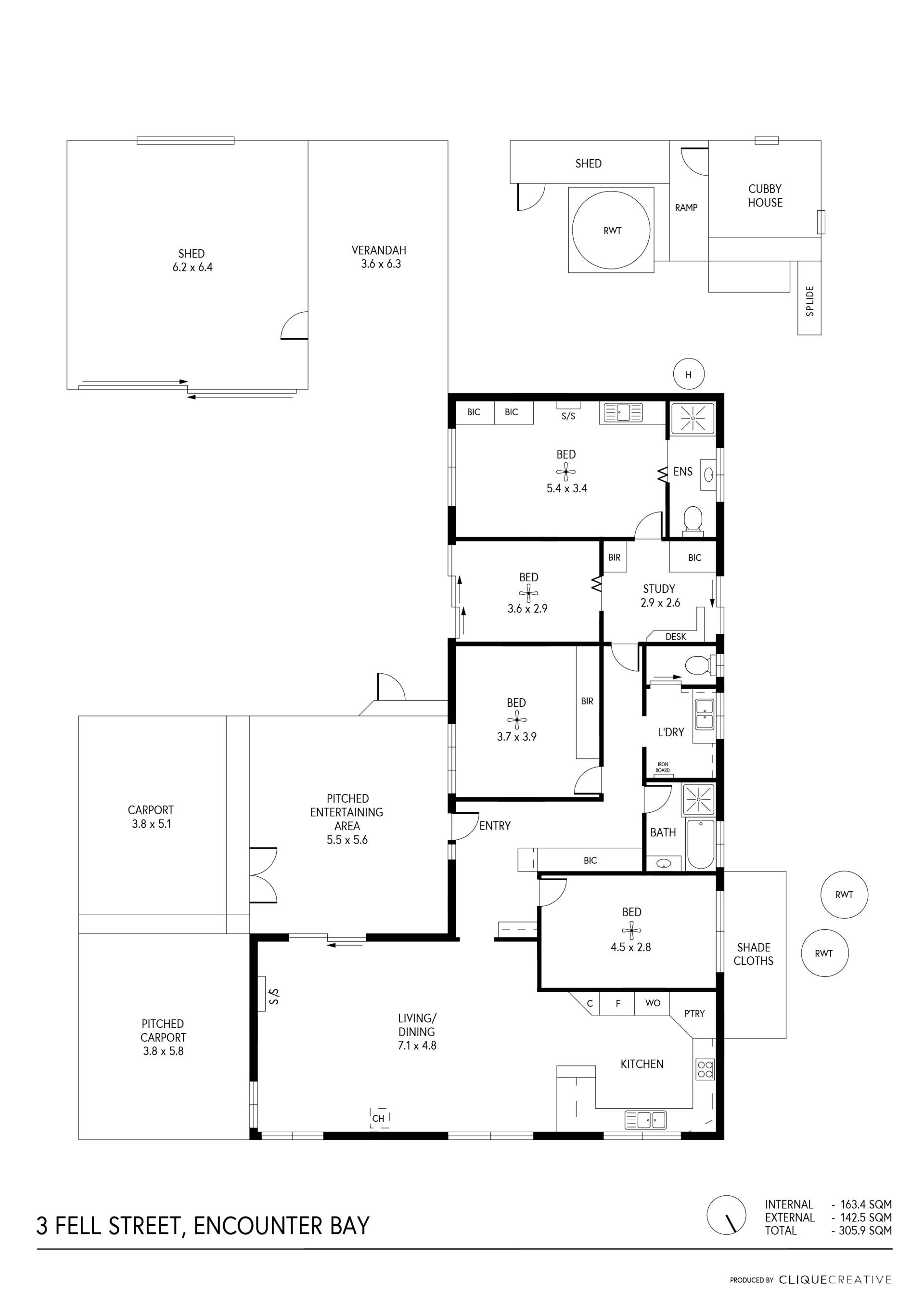 − Low maintenance backyard with large shed/garage ( with high clearance)  for all your tools and watersports toys, as well as garden shed and kids’ cubby house