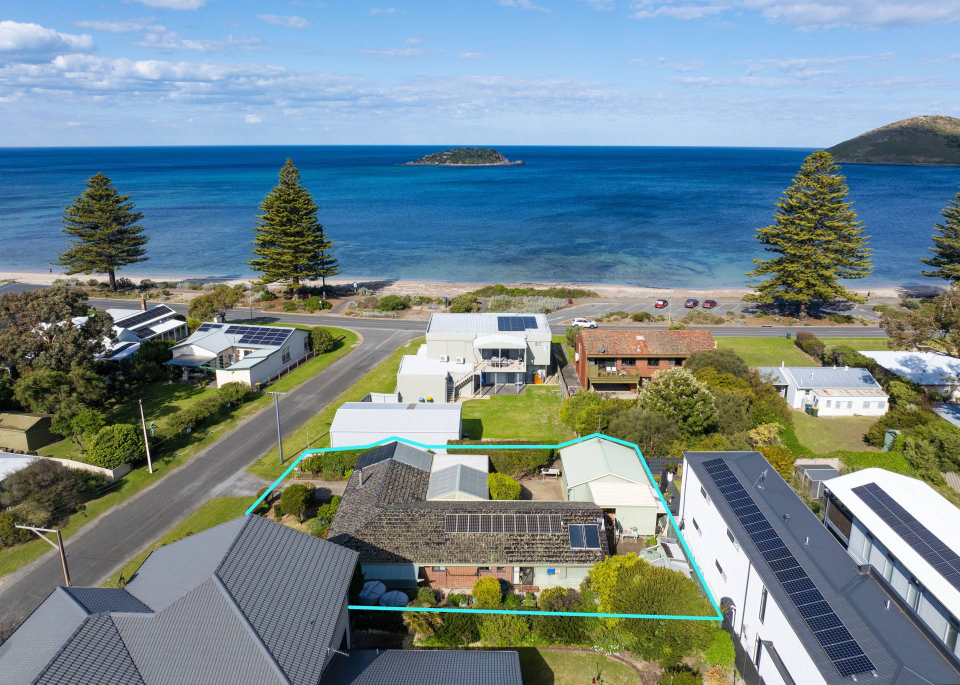 With a solid c.1978 base and a very adaptable 4-bedroom footprint, including ensuite master, separate study/home office, and wonderfully spacious open-plan entertaining with crackling combustion heater for cosy winter nights and headlined by the chic, nautical chef’s zone inviting endless wining and dining… renovating and updating this holiday home will need no persuading, while also securing such a prized address simultaneously lets you explore exciting future options to redesign and possibly rebuild when the time comes (STCC).