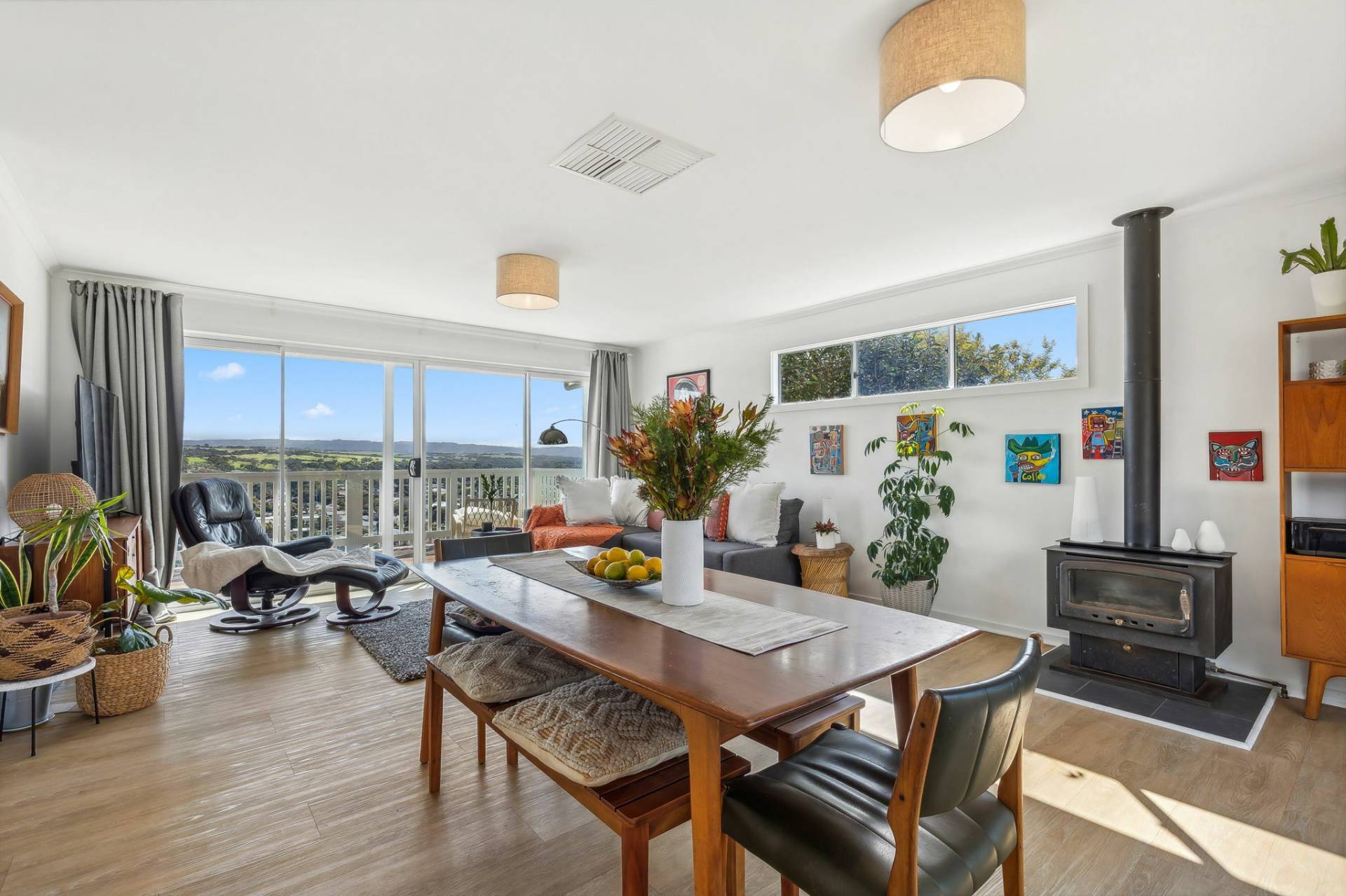 − Beautifully light-filled open-plan entertaining and living zone with cosy combustion heater