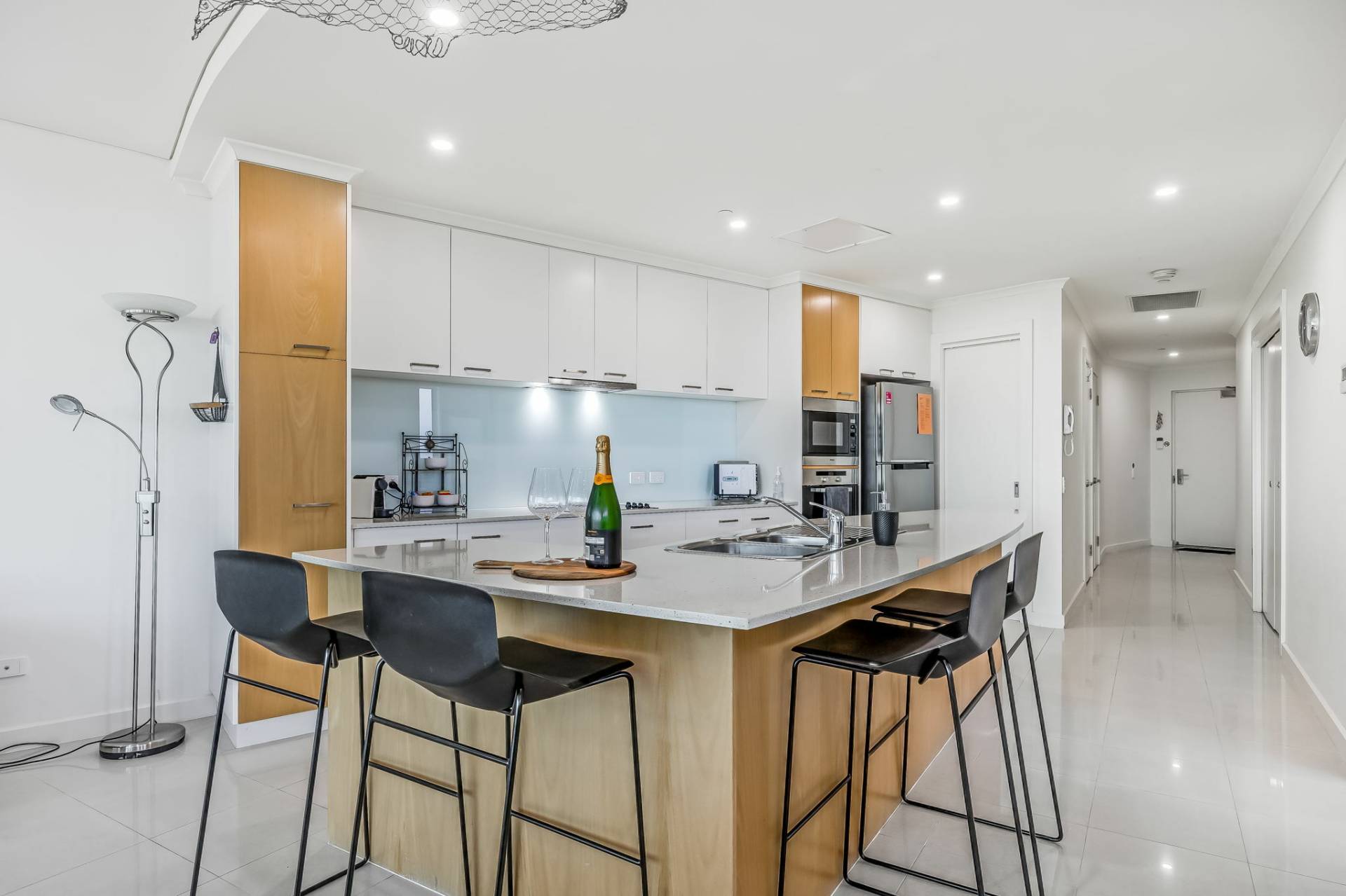 The fully equipped kitchen offers modern appliances, including a cooktop, oven, dishwasher, and everything you need to enjoy your stay.