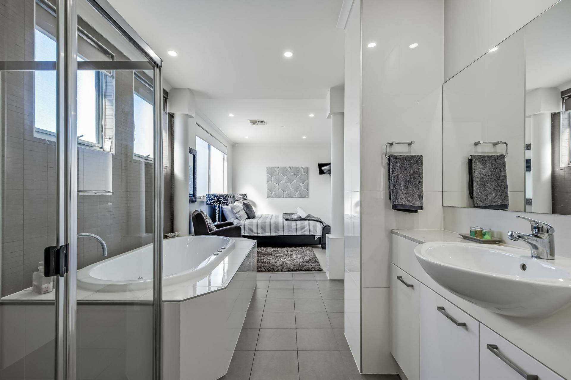 – Queen bed, built-in robe, ensuite with shower & spa bath & W/C