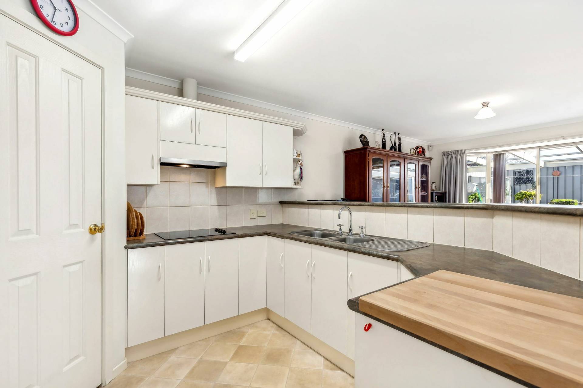 The open-plan living, dining, and newly updated kitchen creates a welcoming heart to the home. The kitchen is equipped with a wall oven, ceramic cooktop, walk-in pantry — ideal for both daily living and entertaining.