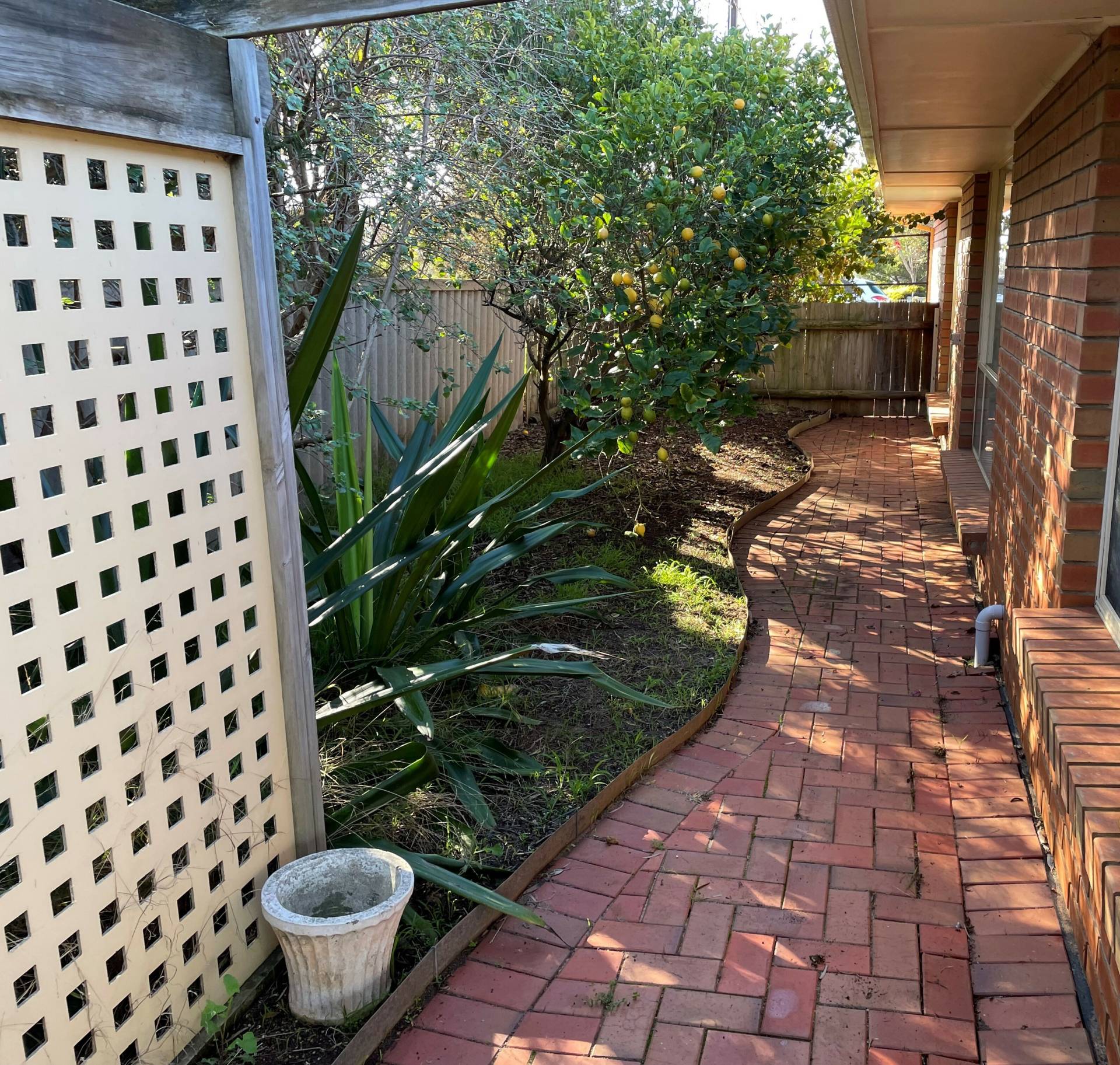 Outside, entry gates from the side street lead to a large shed and a fully paved yard with low-maintenance gardens. This tranquil outdoor space is perfect for relaxing and enjoying the fresh coastal air, making this property an excellent choice for family living near the beach.