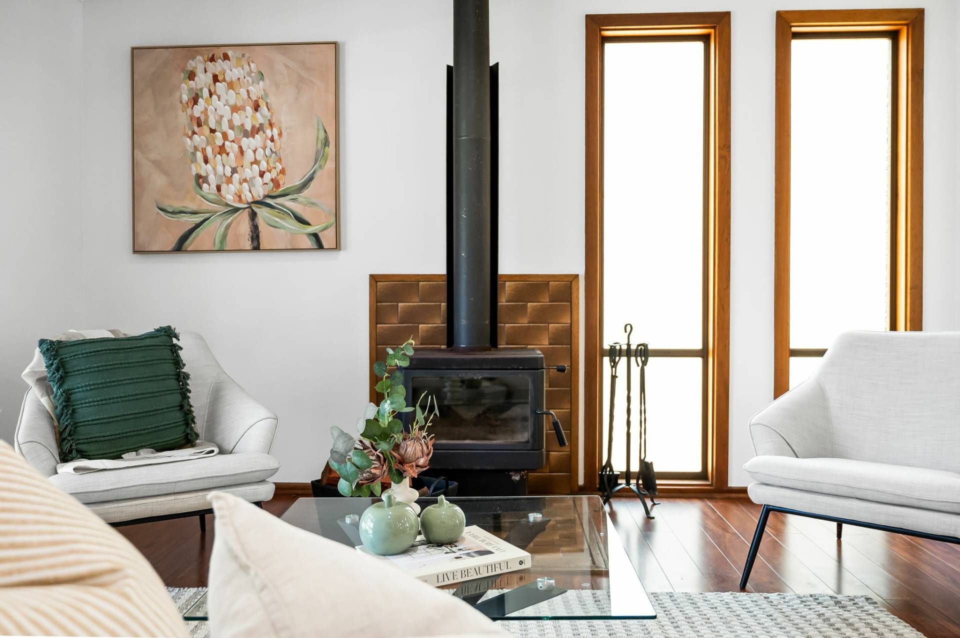 • Impressive open-plan entertaining helmed by a crackling combustion fireplace and surrounded by gallery windows capturing exquisite countryside views