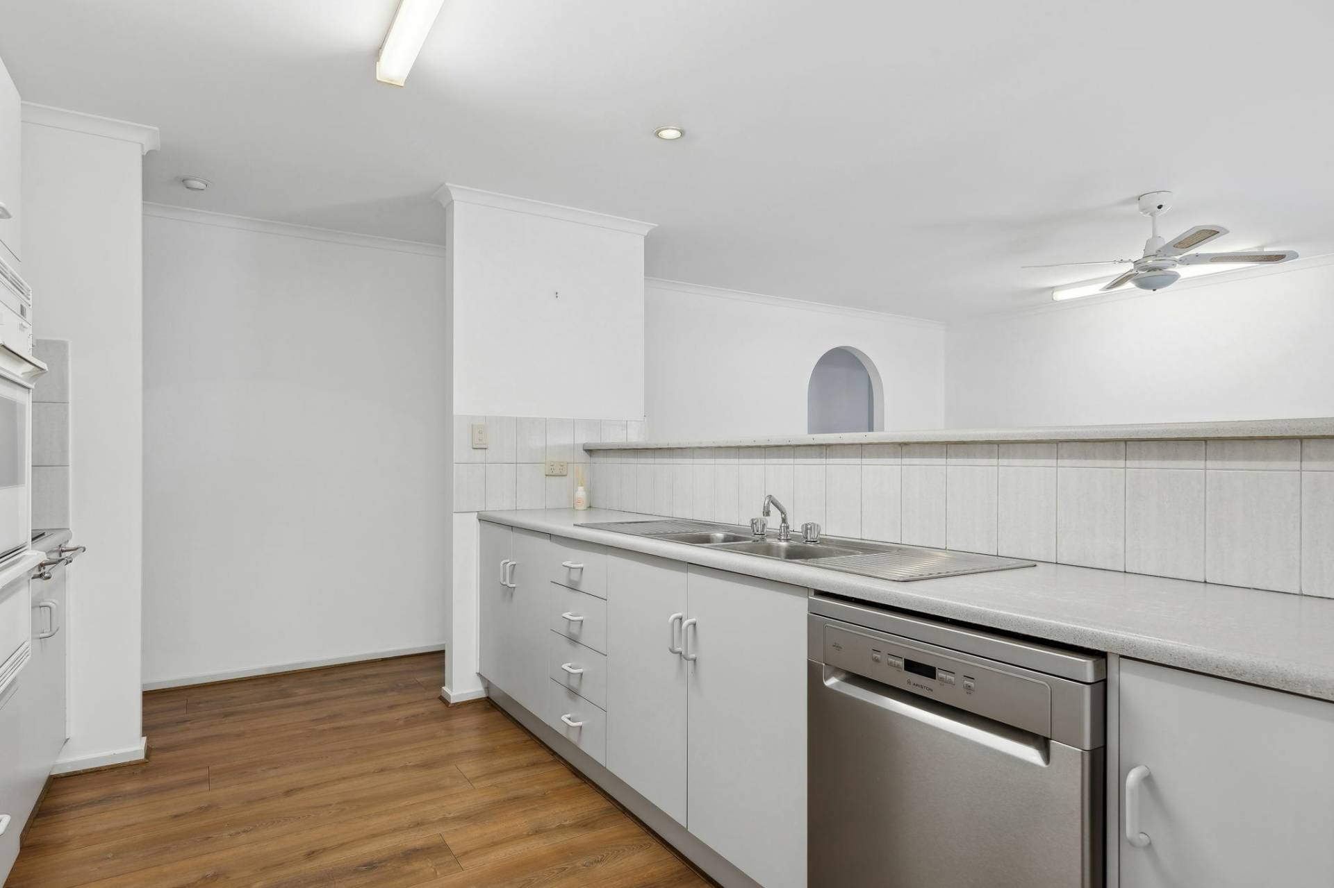 top space and bar/servery, abundant cabinetry and cupboards, in-wall oven and grill, as well as stainless dishwasher for easy cleaning