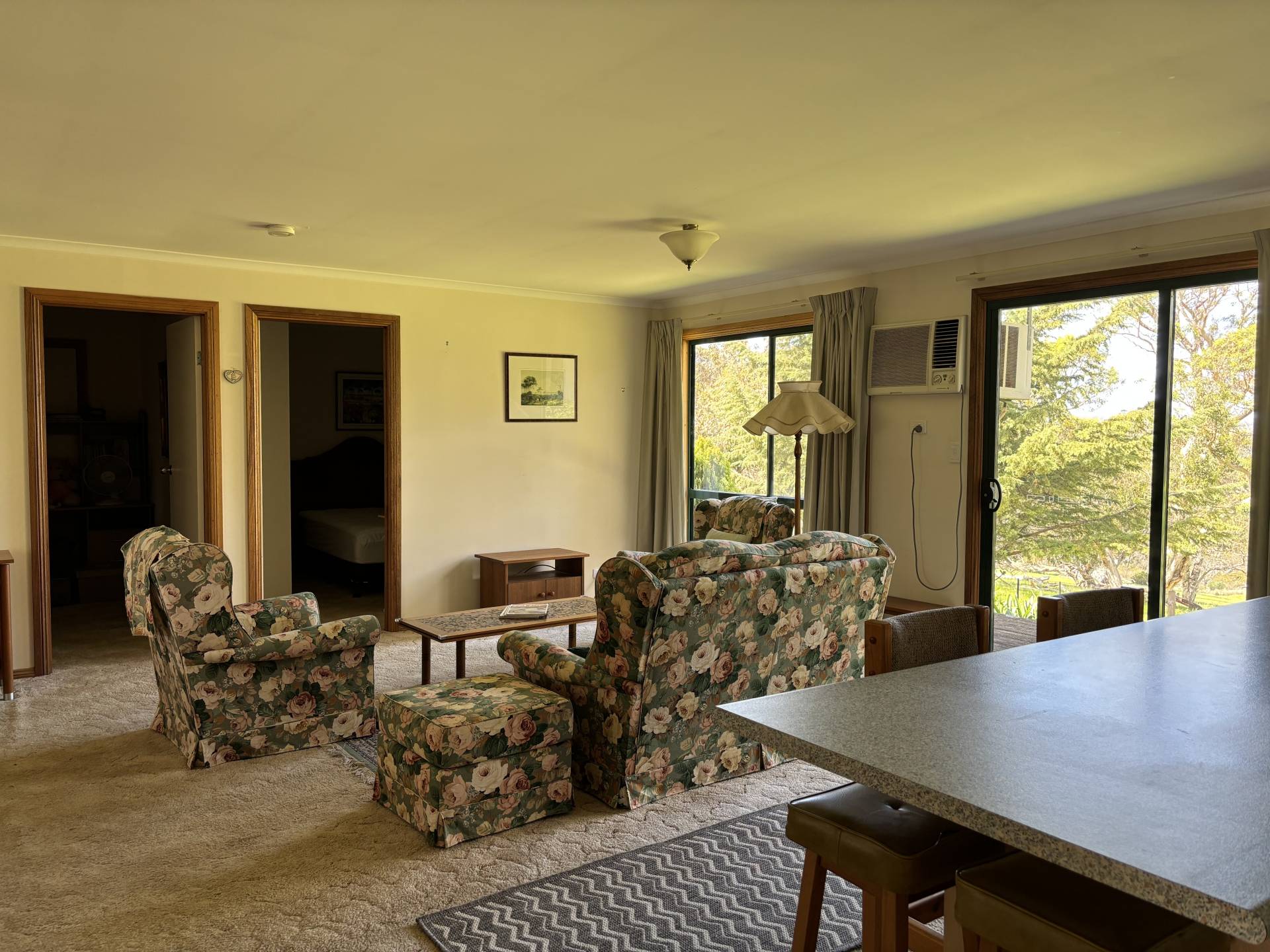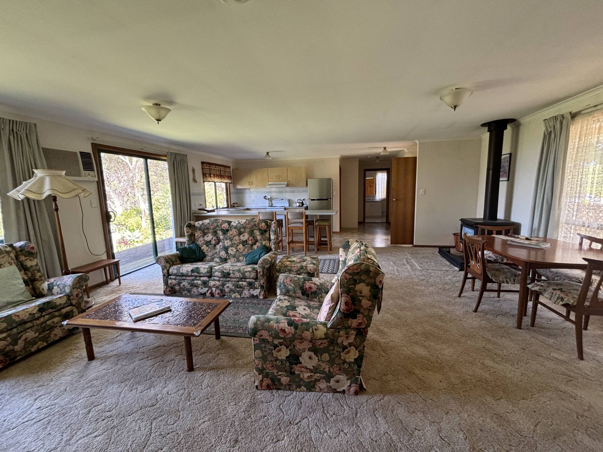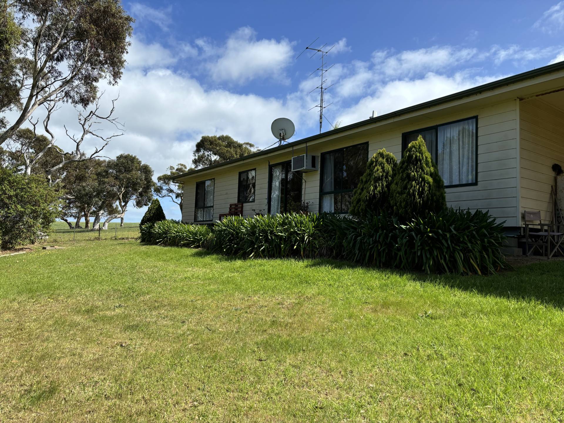 This lovely, neat home is set amidst the tranquil farm lifestyle of Waitpinga. It features a large main bedroom with built-in robes, a second bedroom also with robes, and a third bedroom without robes. The open-plan living area is spacious, complemented by a combustion fire and a wall-mounted air conditioner for comfort in any season. The kitchen is generous in size, equipped with electric cooking, walk in pantry and offers beautiful views of the adjoining land.The bathroom is well-sized, featuring both a separate bath and shower. A laundry with a separate toilet adds extra convenience. Outside, there's a lovely decking area, perfect for relaxing and soaking in the peaceful surroundings. The property also includes a single carport with secure fencing around the home.