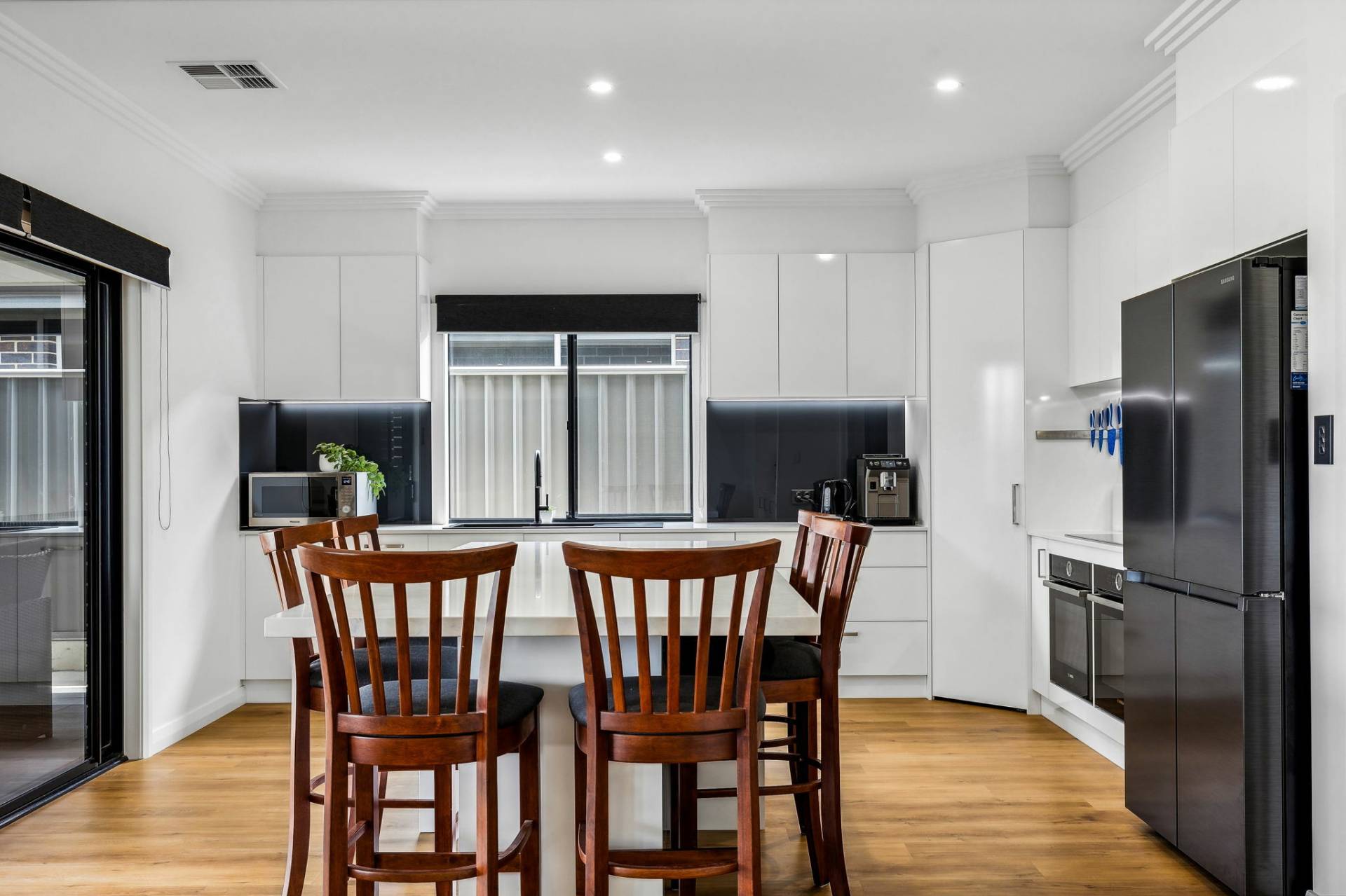 The living area includes a feature entertainment alcove that holds a 2.4 meter floating entertainment cabinet in the lounge, a 1800mm wide 6 blade multifunction ceiling fan / light, and incredible waterfront alfresco living the true gamechanger. Settle in for a new life of pre-dinner drinks overlooking the water, casual paddleboarding, fishing in the lake, and invigorating swims from this world-class beauty overlooking the blue on Harbour View Terrace.