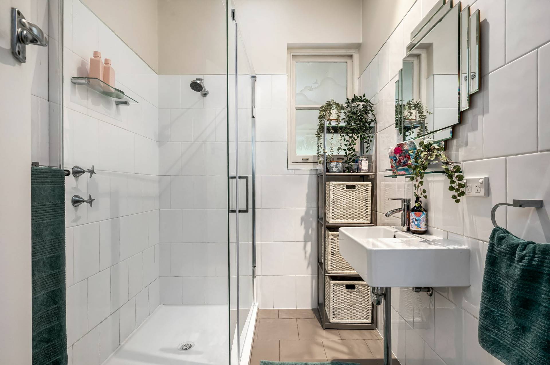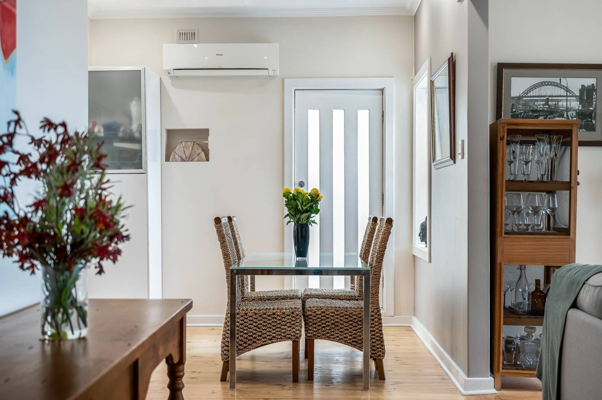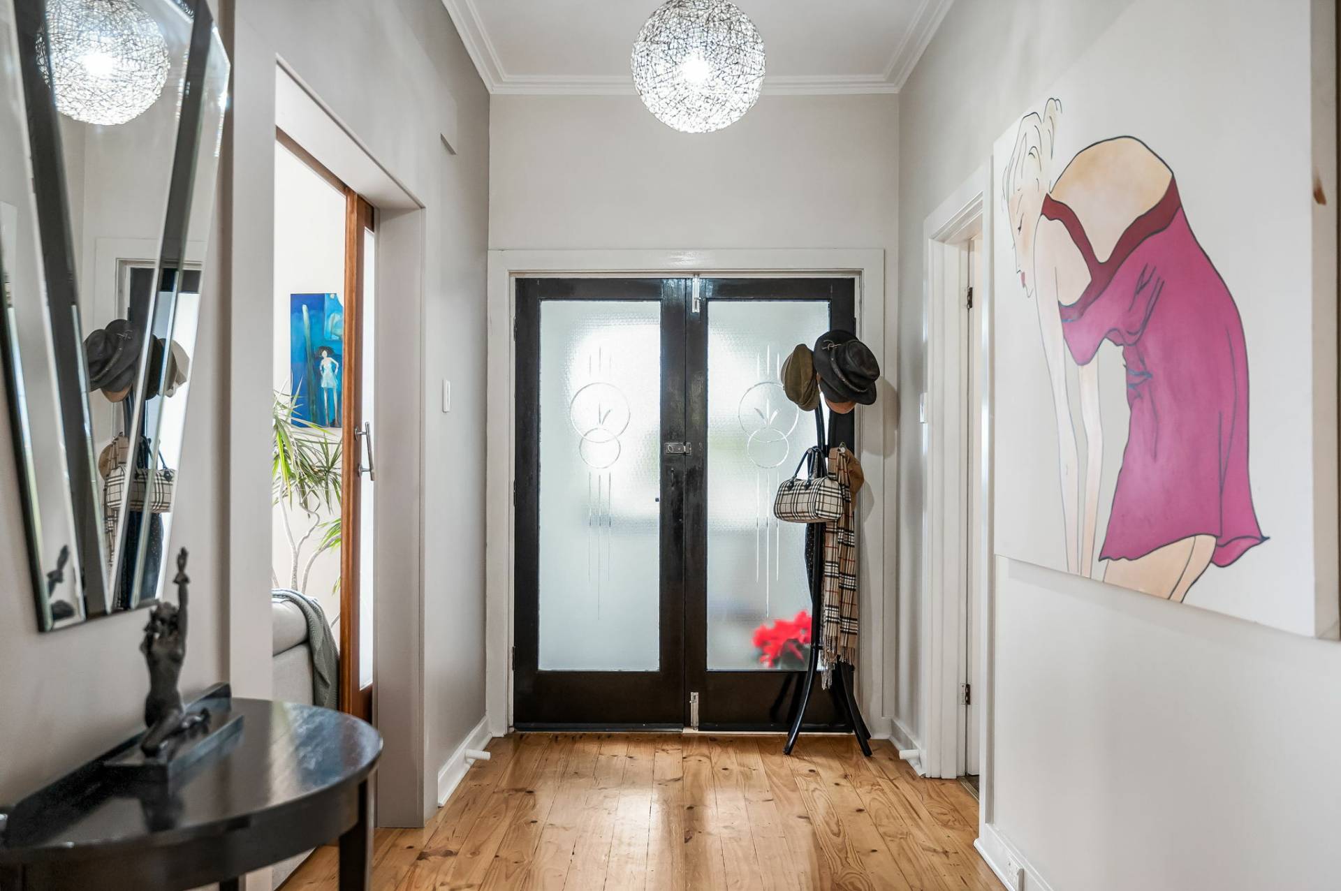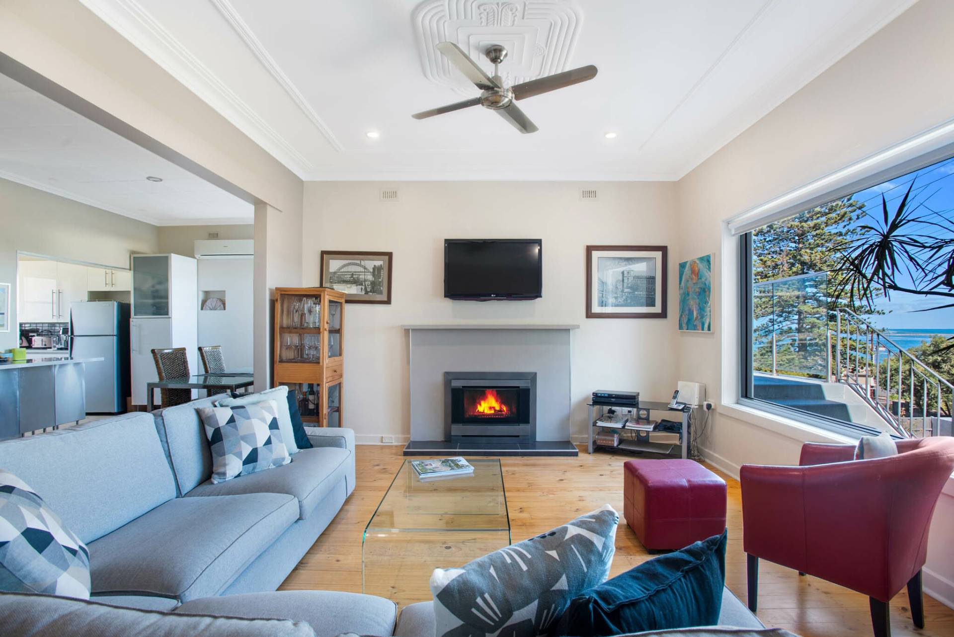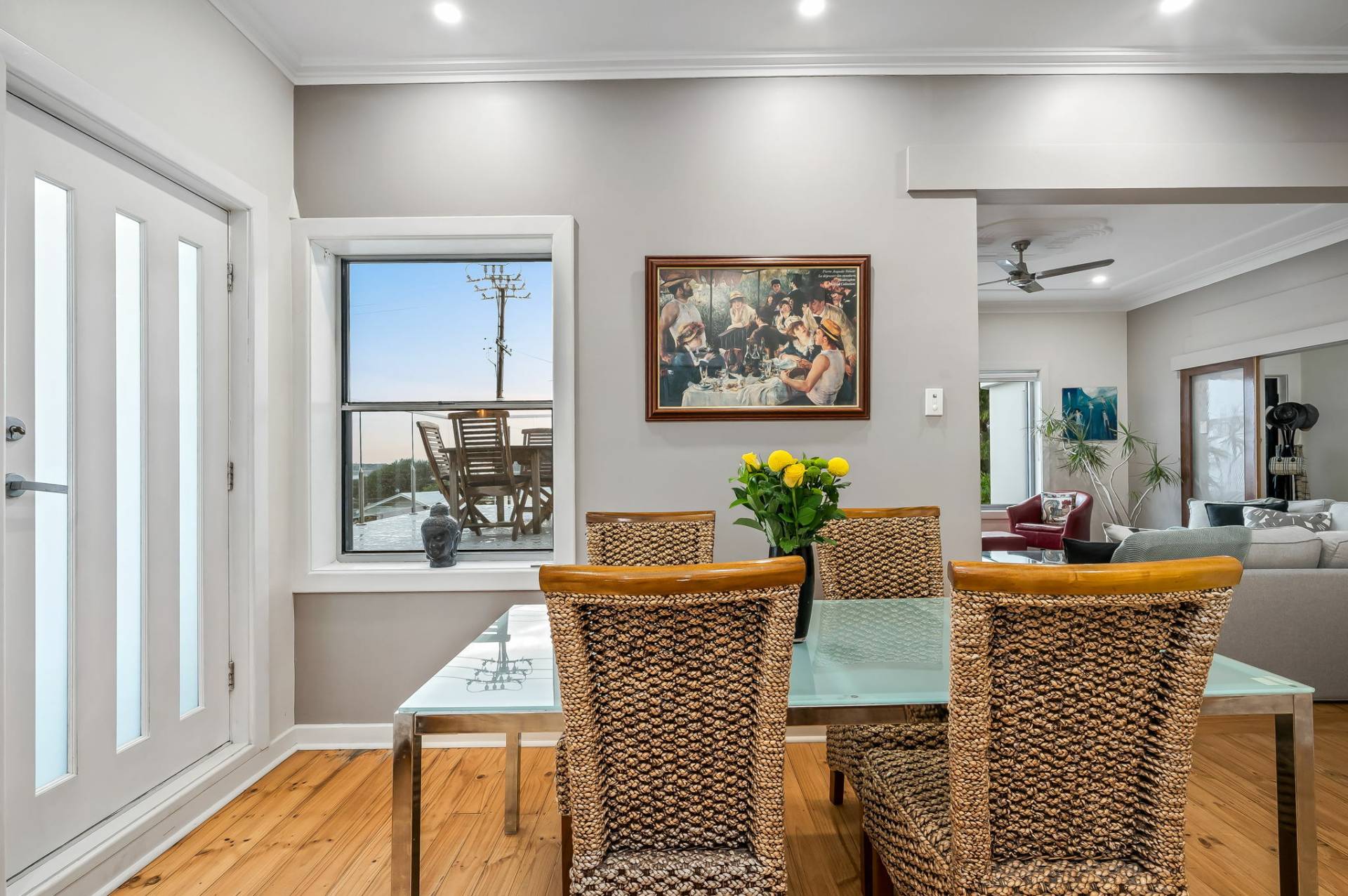 Step into original pine floors and sunlit interiors, where a stunning picture window frames panoramic sea views from the main living room. A second living space flows to the rear garden and alfresco patio, while the sea-facing balcony is perfect for morning coffee or sunset drinks.