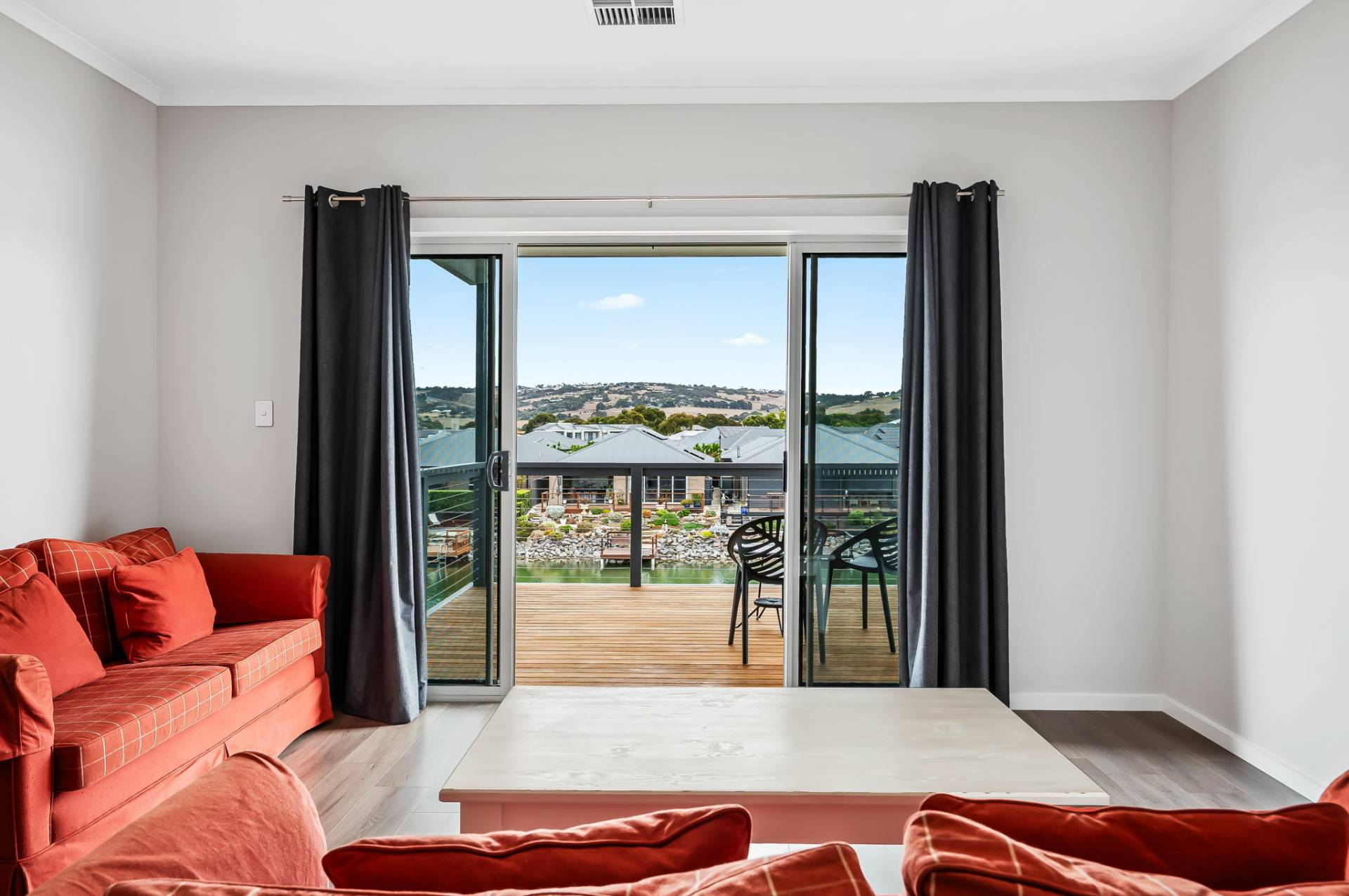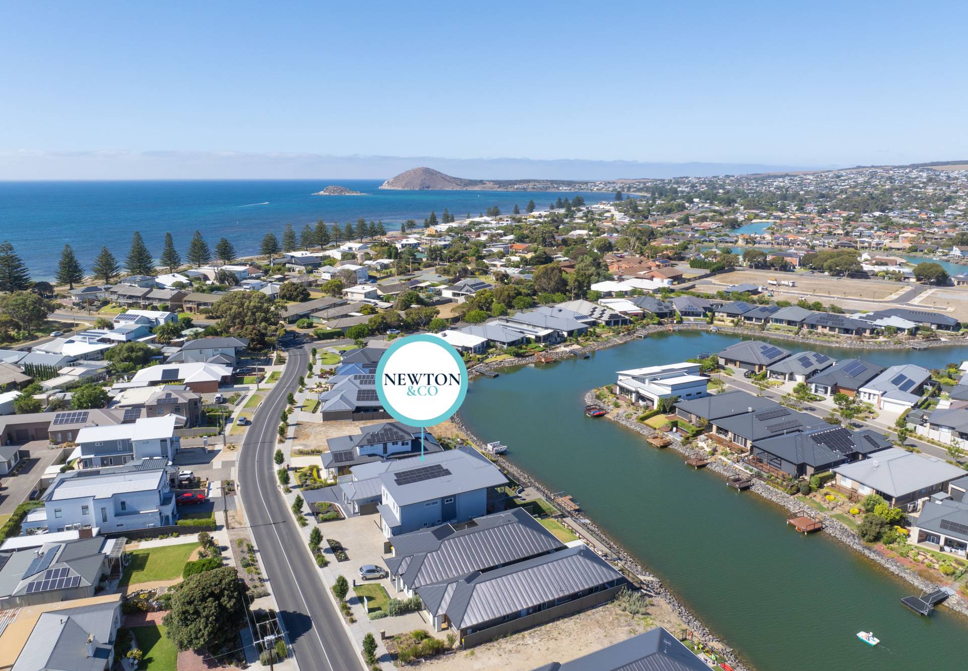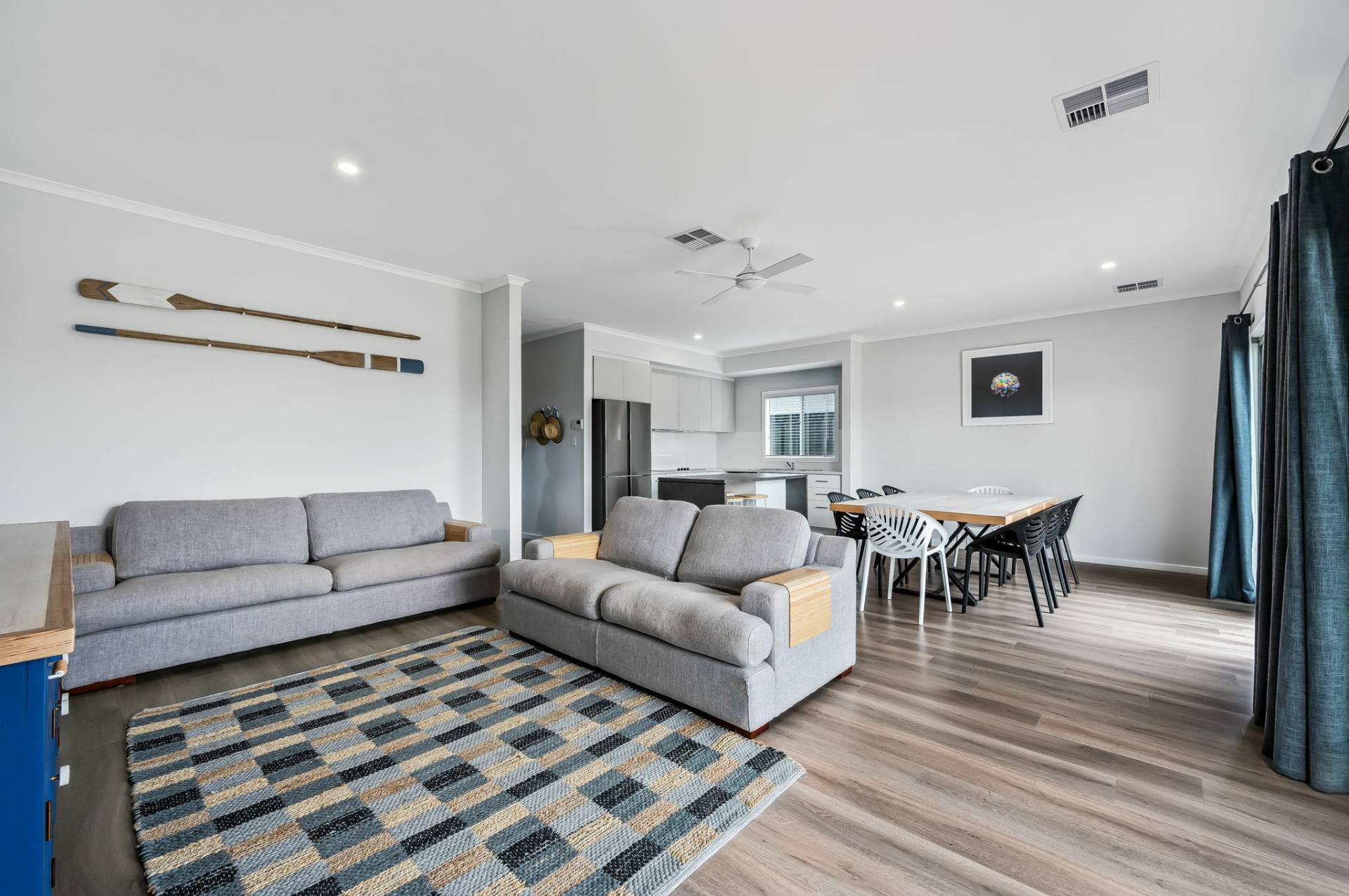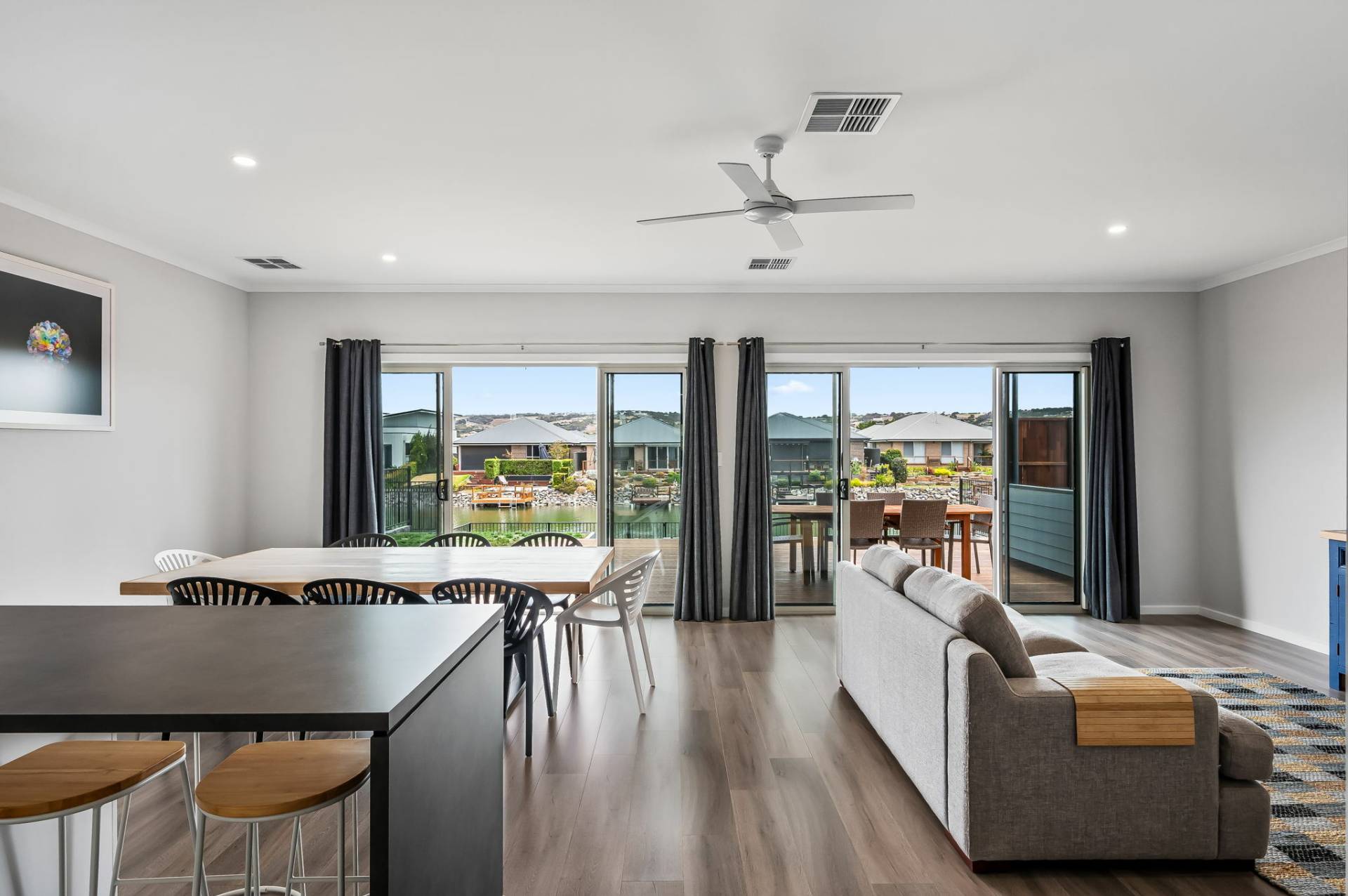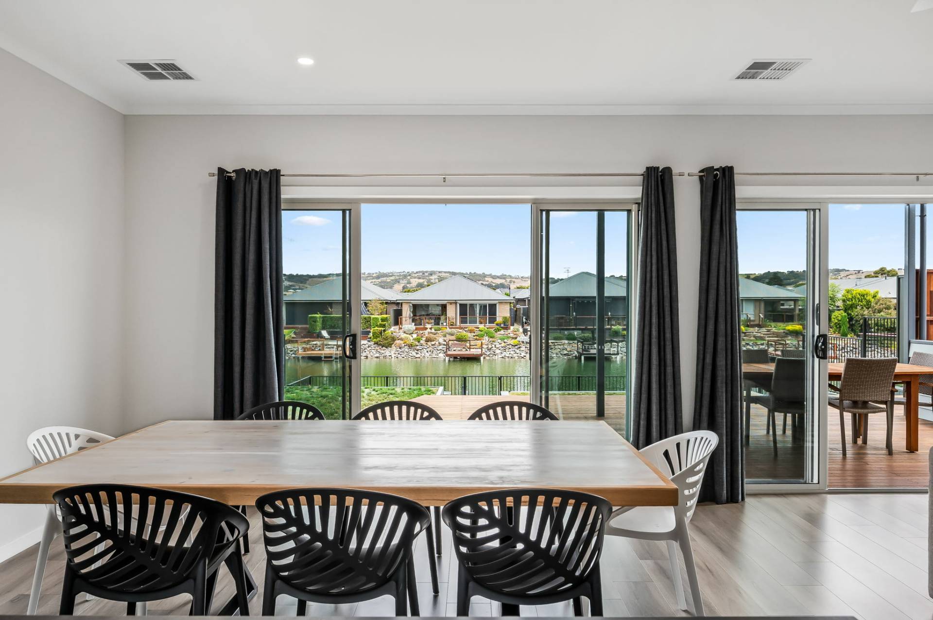 Treat your family to a contemporary lakefront address in Victor Harbor, just moments from the ocean. This pristine home offers six bedrooms, two full bathrooms, two powder rooms, and two large living spaces, making it ideal for family living or holidays. Its striking two-storey façade stands out from both the street and the water, with a spacious undercover deck and a first-floor balcony providing plenty of room to relax and enjoy the view.