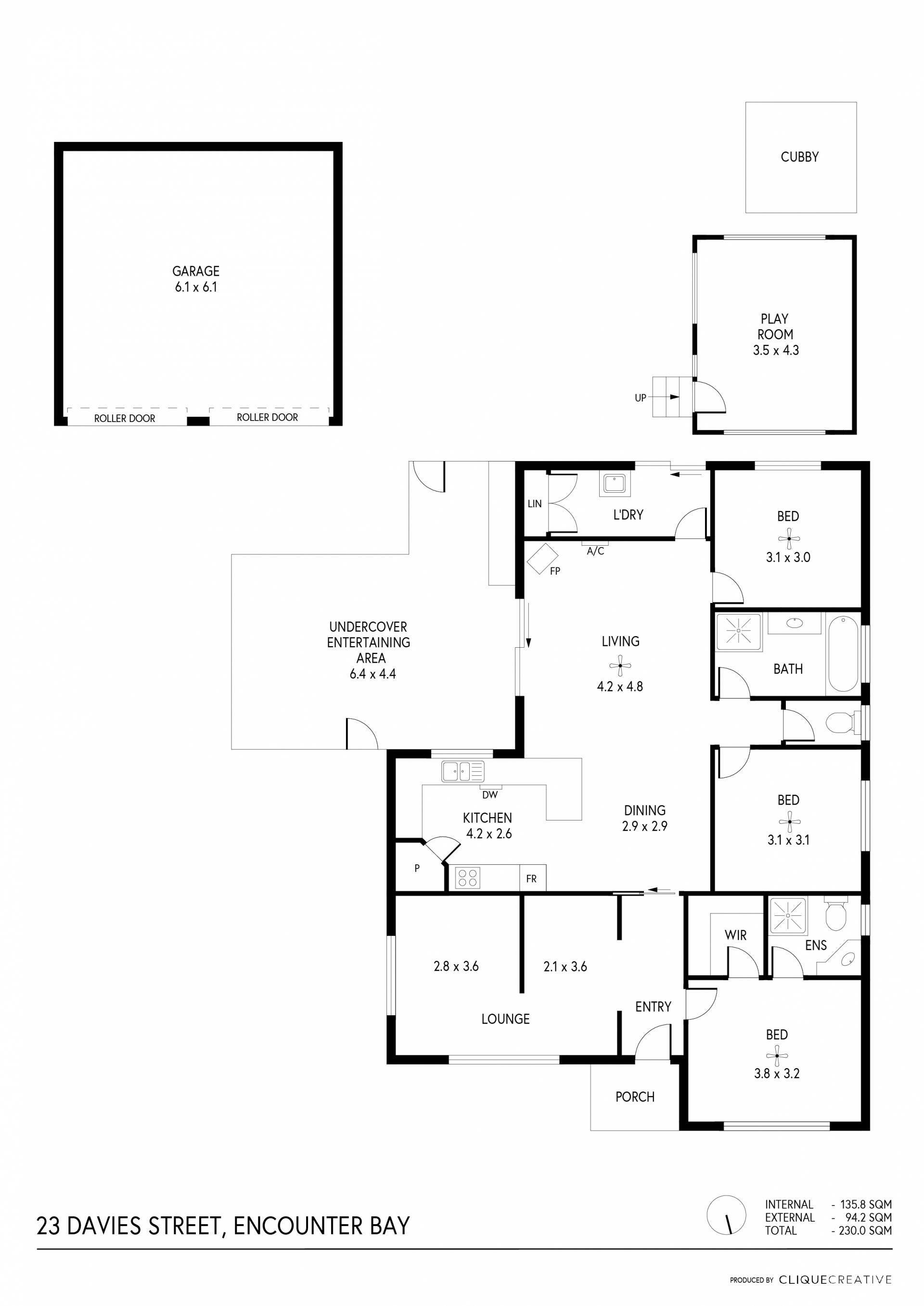 - Neat and tidy backyard with kid and pet-friendly lawns, cute cubby house for endless imaginative play, as well as rumpus/studio/playroom for more excellent and adaptable space