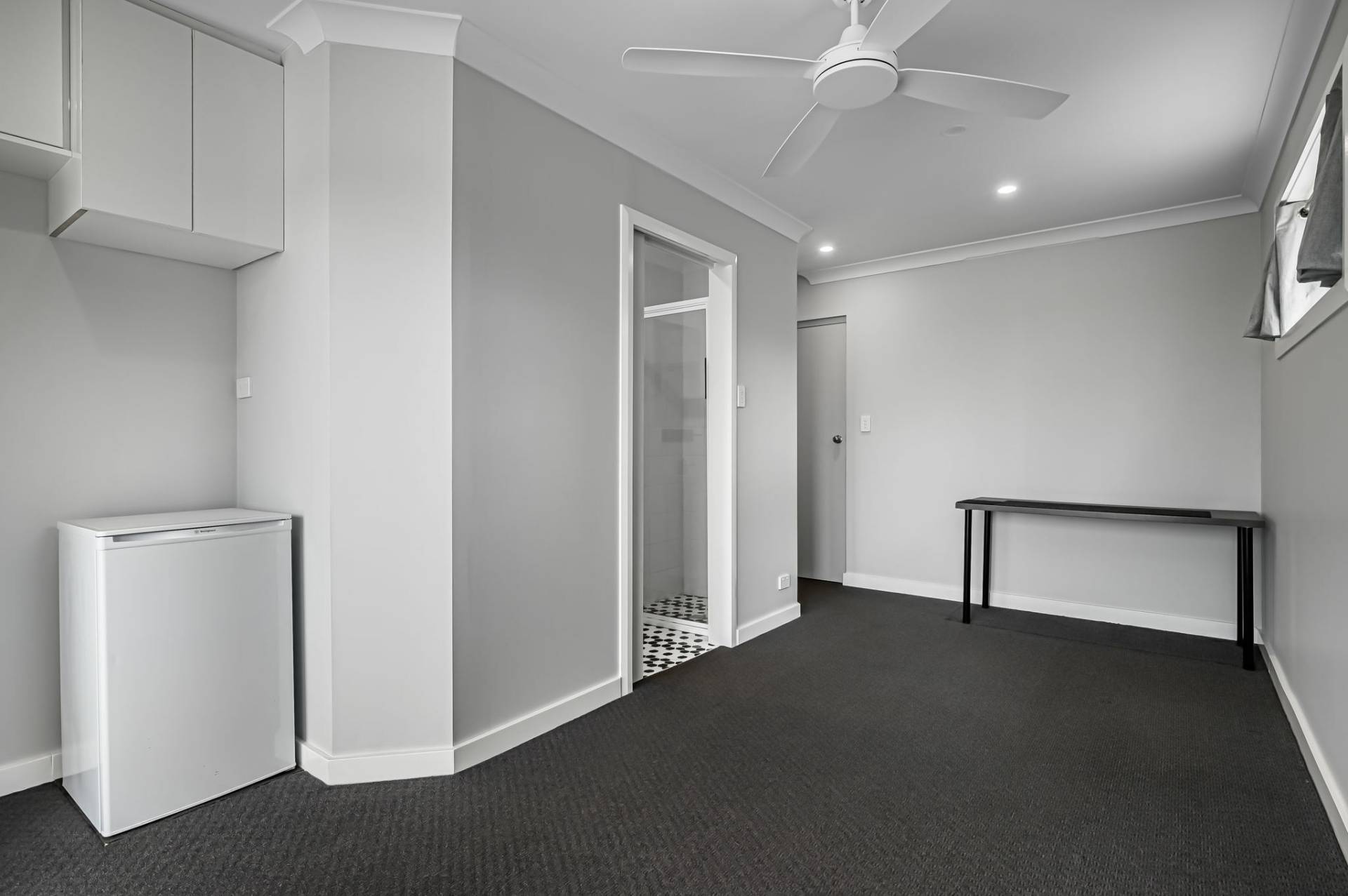 - Impressive ground level teenagers’ retreat with sparkling bathroom, ceiling fan, durable carpets and cabinetry