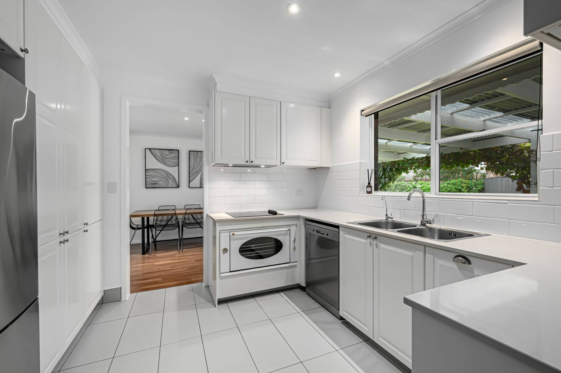 With solid c.1970’s footings, this re-inspired haven sees a free-flowing ground level beginning with the bay-windowed lounge helmed by a cosy combustion fireplace, and onto the spacious dining and light-filled kitchen. Inviting all the room for helping hands, as well as views into the outdoor entertaining and sunbathed backyard beyond, this provincial foodie’s zone is flush with stone bench tops and modern appliances ready to make cooking for loved ones an effortless affair.