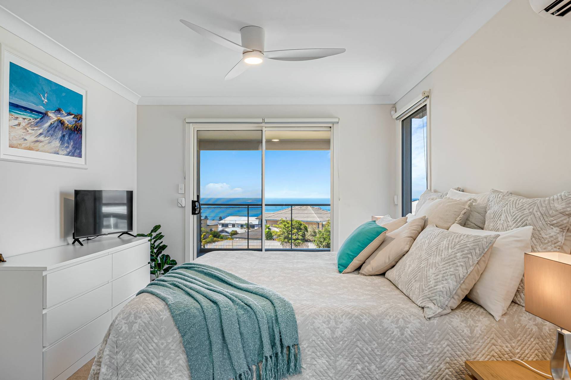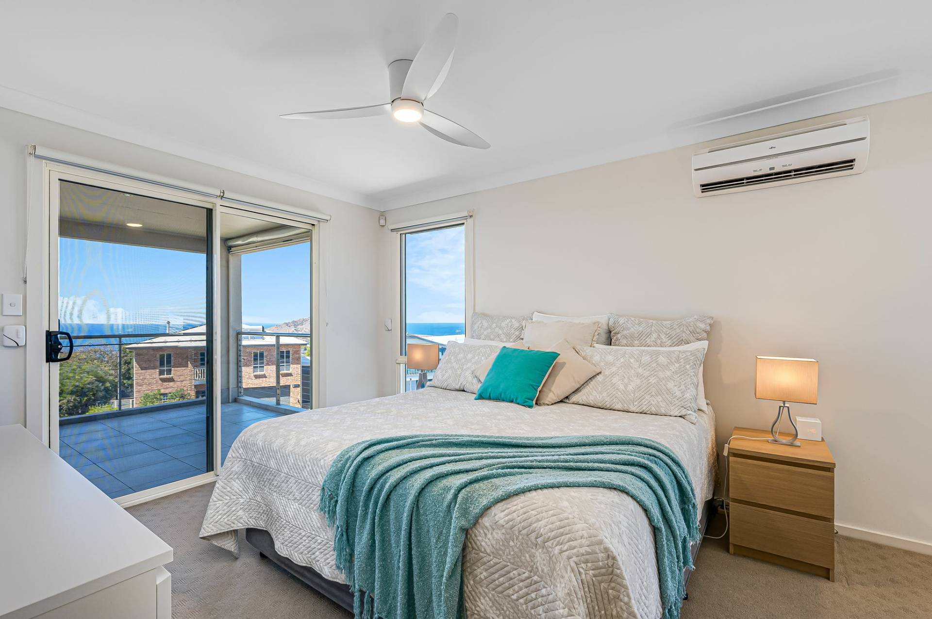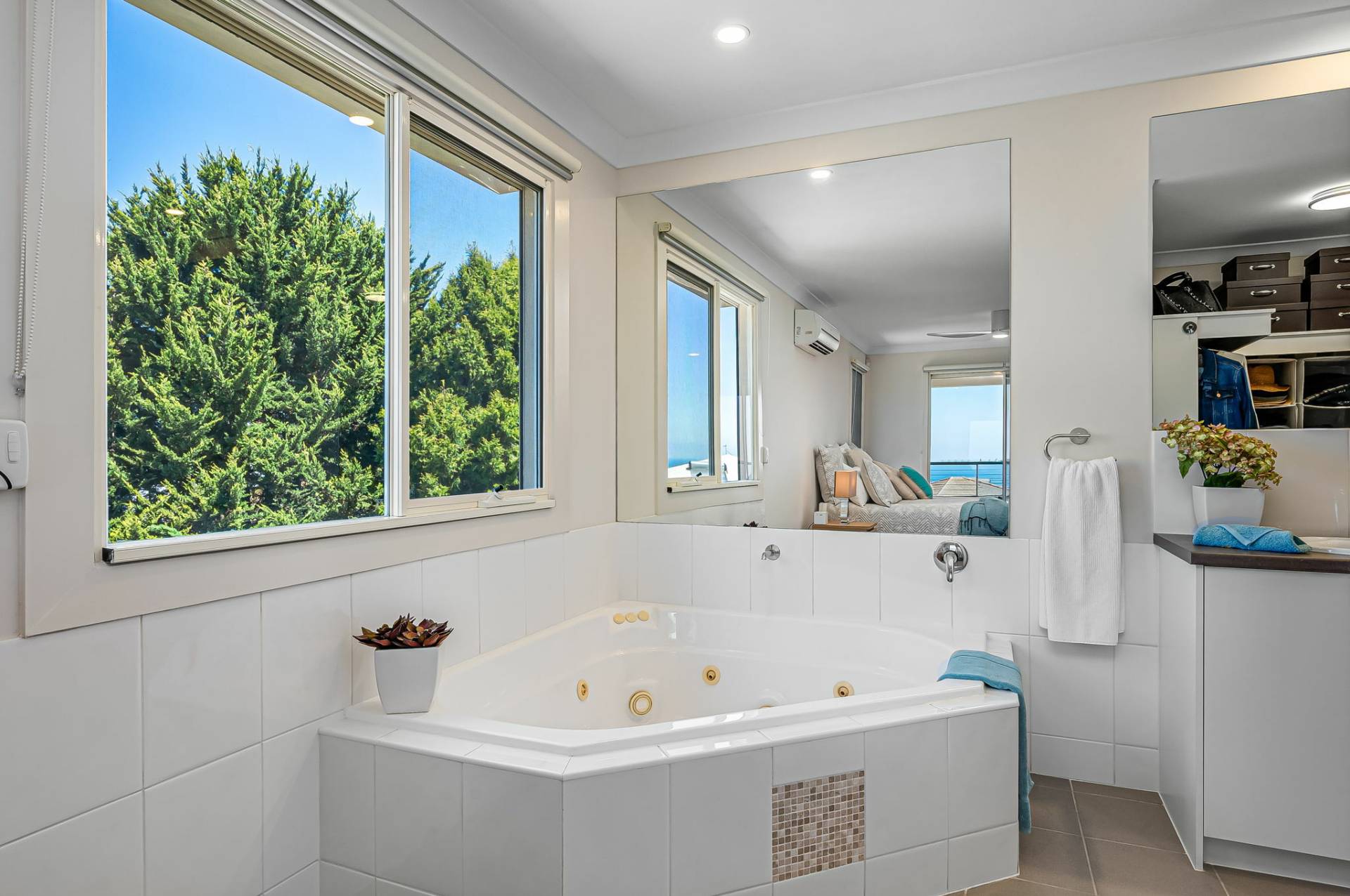− Generous master bedroom featuring direct balcony access and more stellar sea views, split-system AC, WIR, and dual-vanity ensuite with separate shower and relaxing spa bath