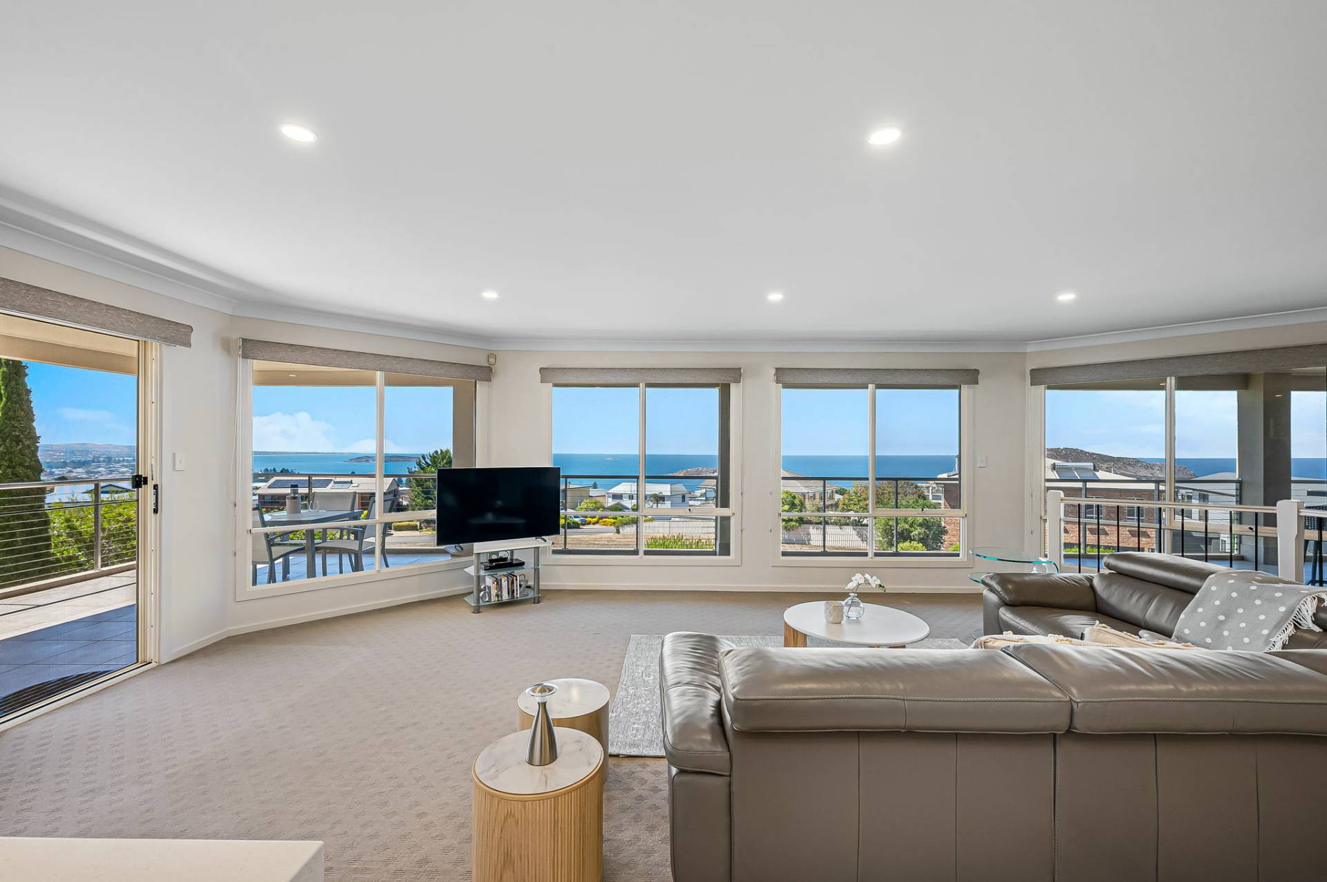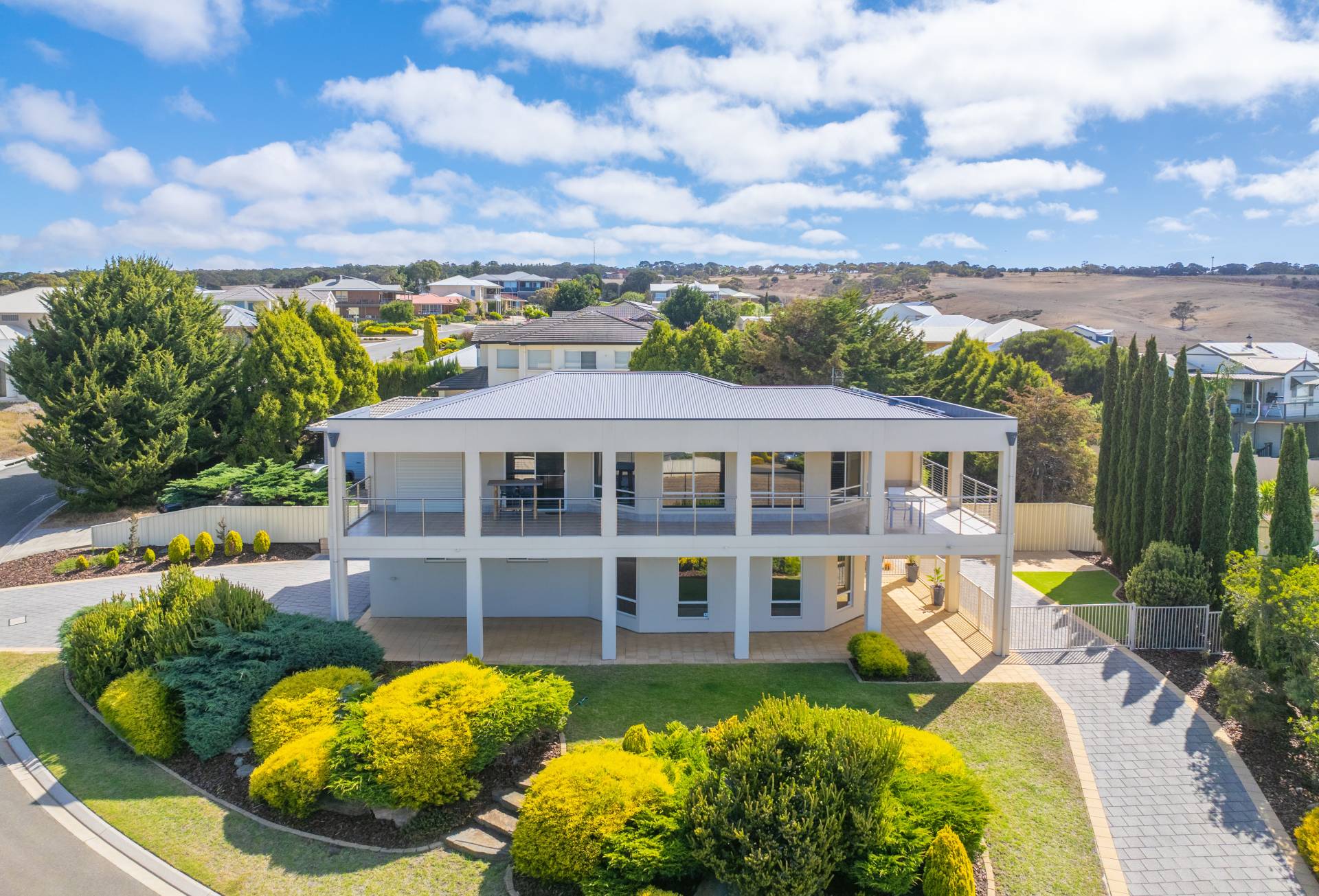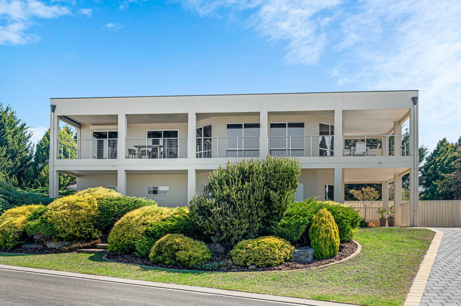 Capturing breathtaking ocean views from its elevated position in exclusive Encounter Bay, 4 Mayflower Court epitomises that South Coast holiday vibe that’s become so sought-after. A spacious two-storey haven spilling with natural light courtesy of a top floor banked by gallery windows and massive balcony embracing stunning 180-degree vistas – prepare to start memory-making trips for the weekend, the week, summer season or all year round with family and friends.