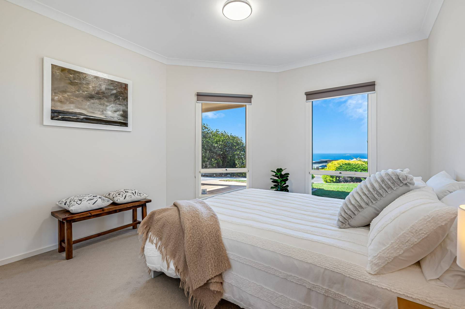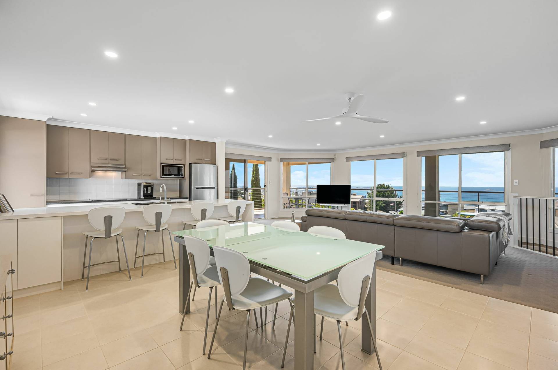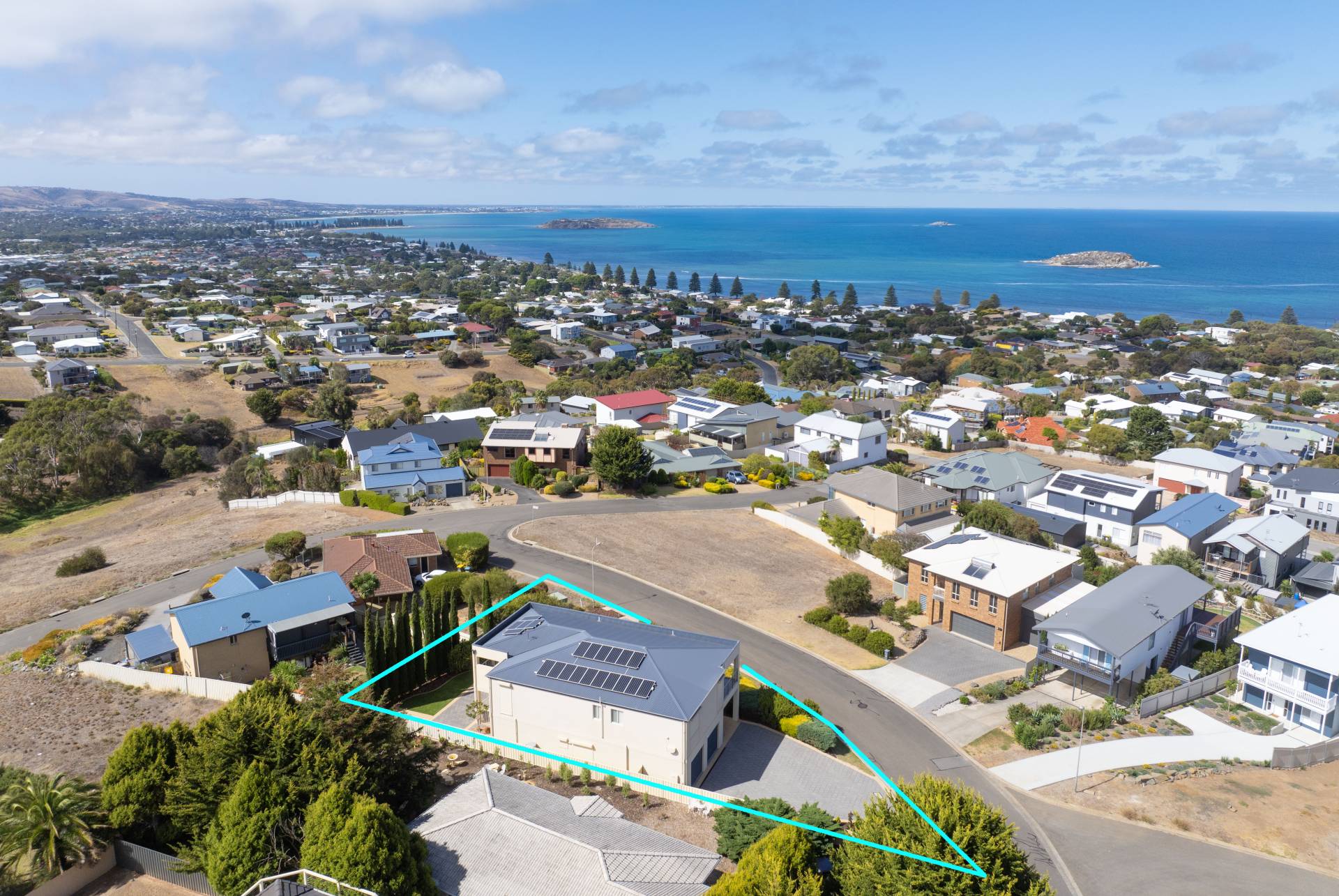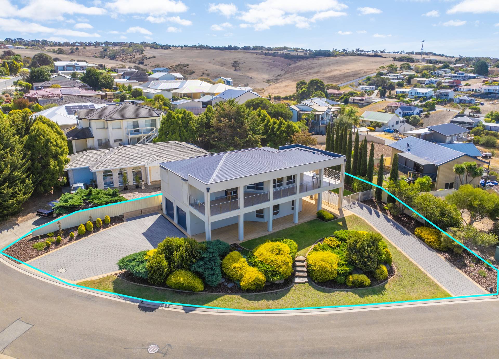 Capturing breathtaking ocean views from its elevated position in exclusive Encounter Bay, 4 Mayflower Court epitomises that South Coast holiday vibe that’s become so sought-after. A spacious two-storey haven spilling with natural light courtesy of a top floor banked by gallery windows and massive balcony embracing stunning 180-degree vistas – prepare to start memory-making trips for the weekend, the week, summer season or all year round with family and friends.
