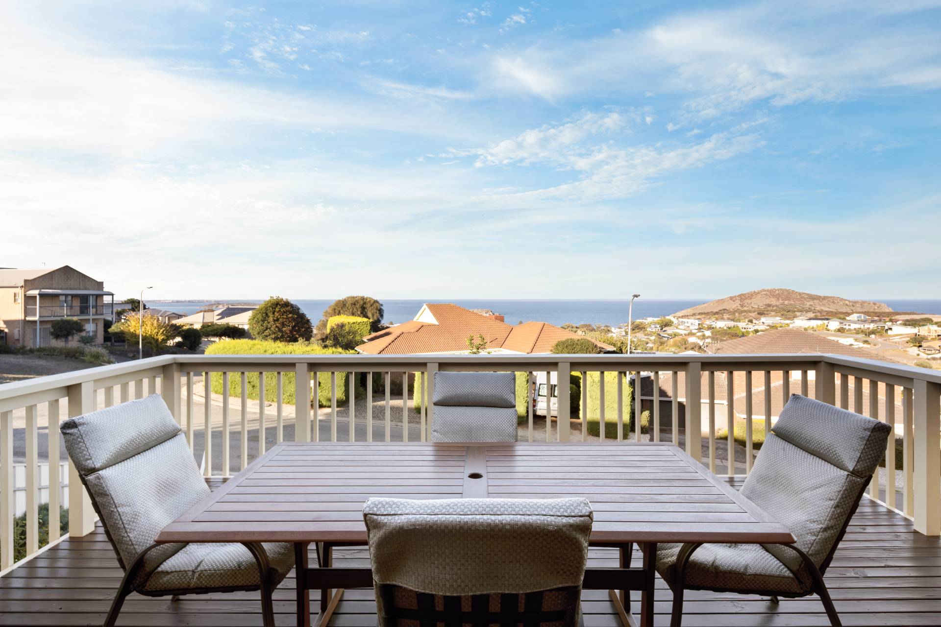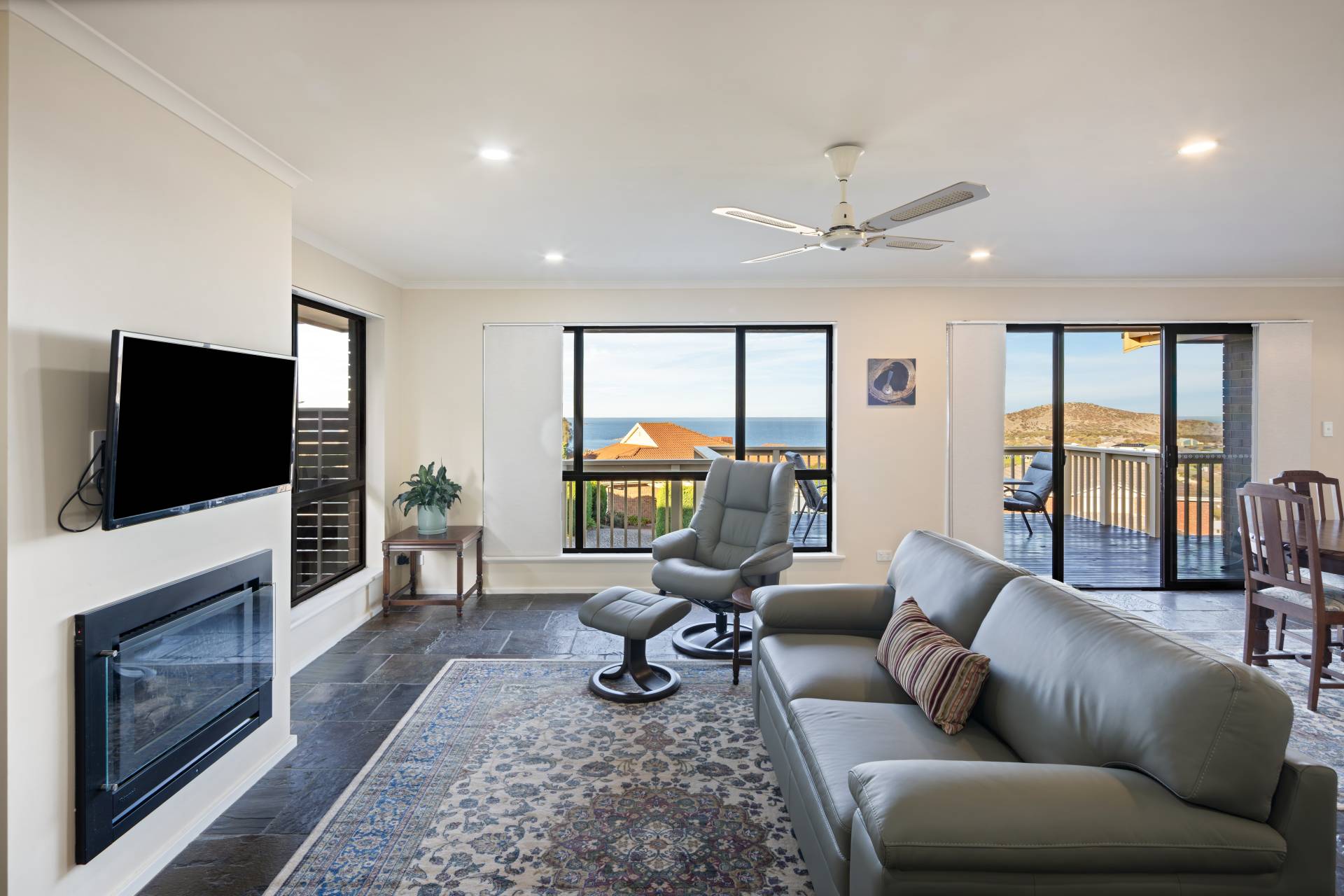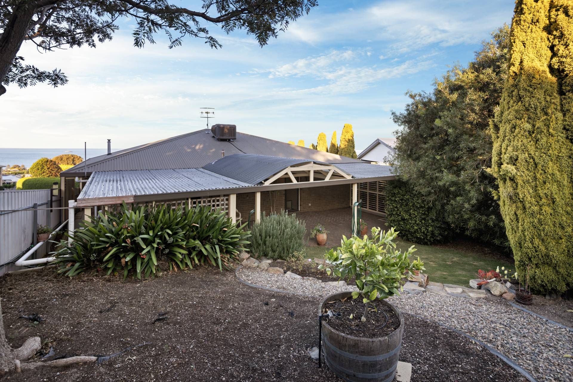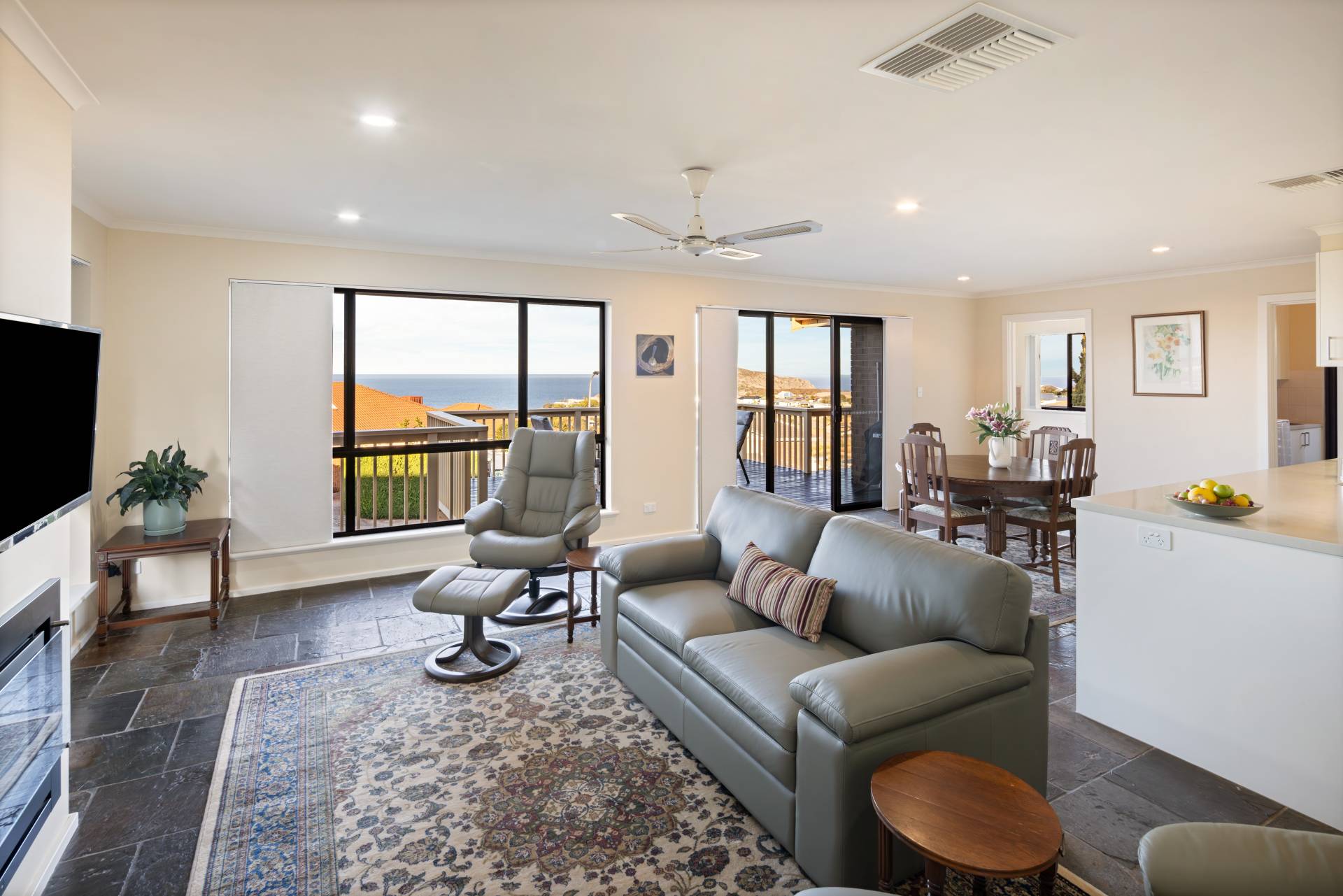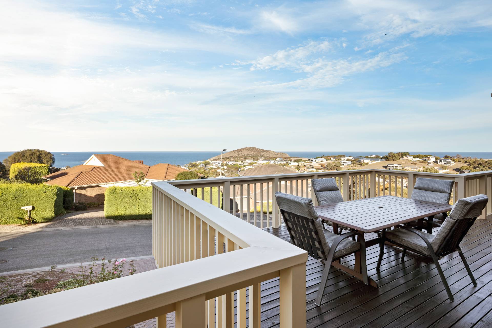 Embrace coastal living at its finest with this immaculately presented home in the heart of Encounter Bay. Positioned to take full advantage of elevated views of The Bluff and the sparkling Southern Ocean, this flexible four-bedroom (or 3 plus study) home offers the perfect blend of relaxed living, entertaining space, and practical features for families, retirees, hobbyists or tradespeople alike.