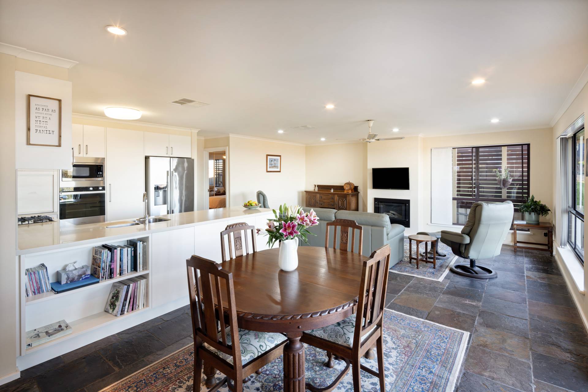 • Light-filled open-plan living and dining area featuring: