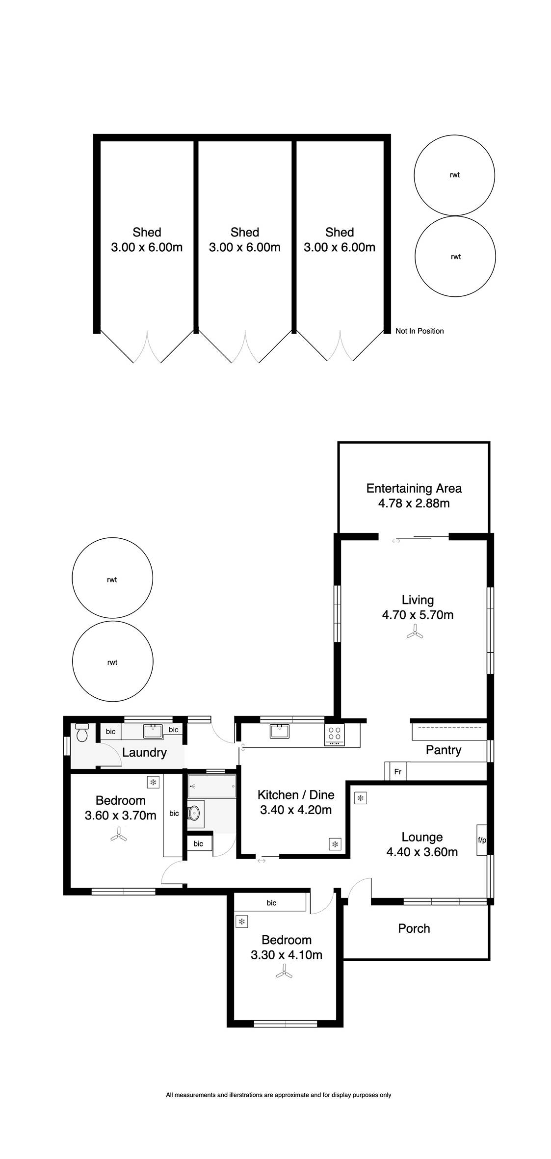 • Two comfortable bedrooms, both with ceiling fans and new built-in wardrobes