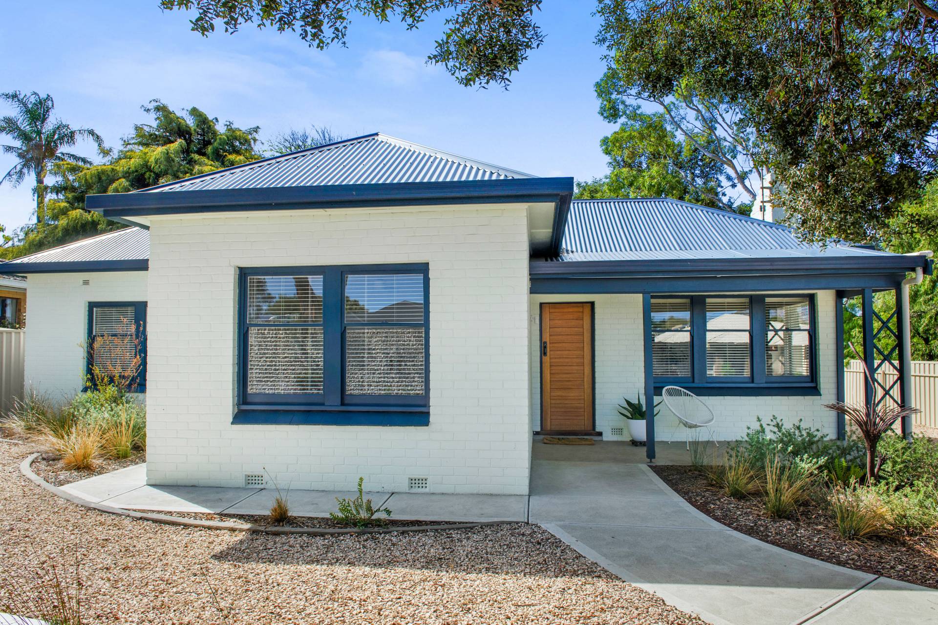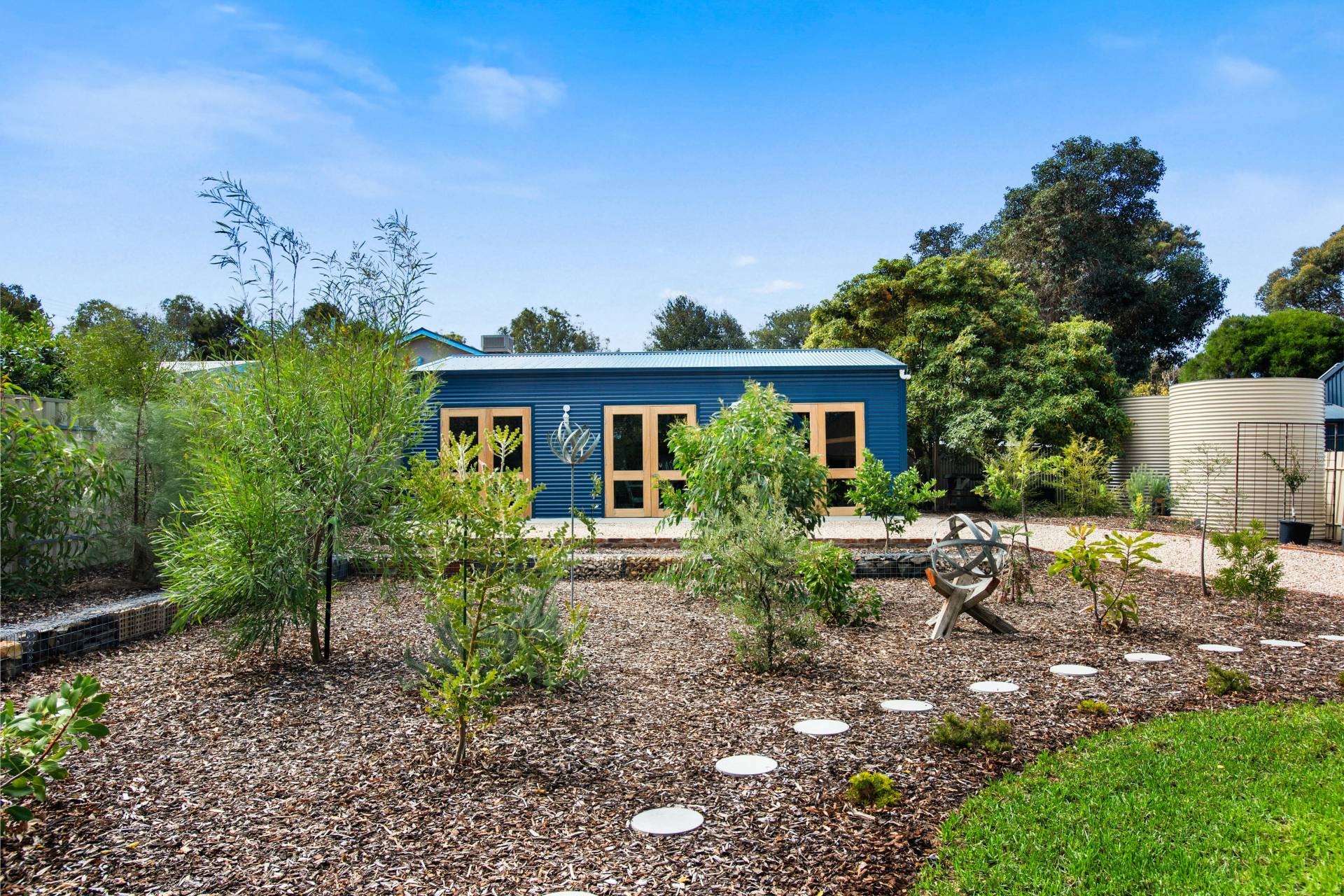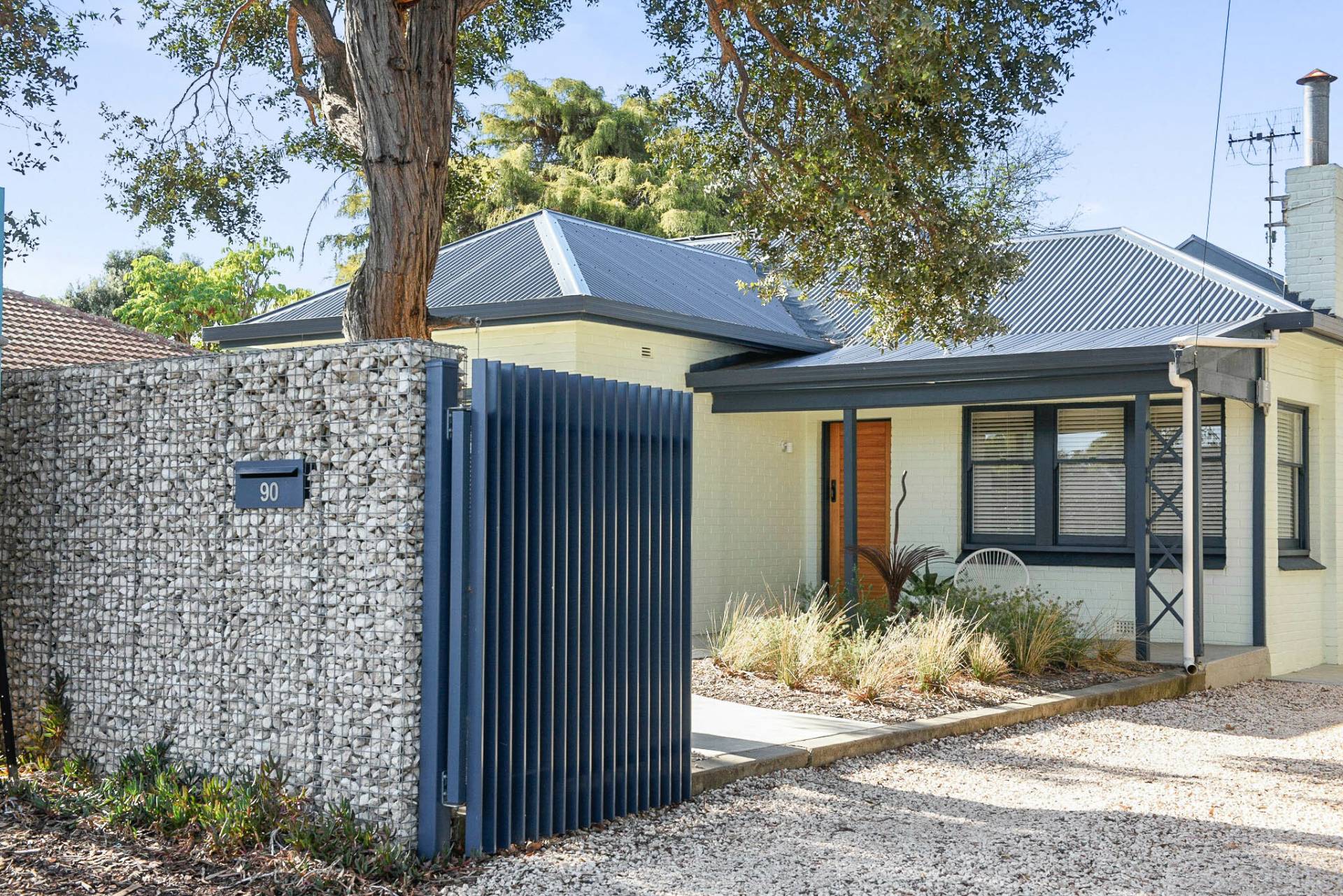 • Beautifully landscaped front and rear gardens, featuring a striking gabion wall, custom gates, citrus, stone fruit and fruit trees and three raised wicking beds perfect for homegrown produce